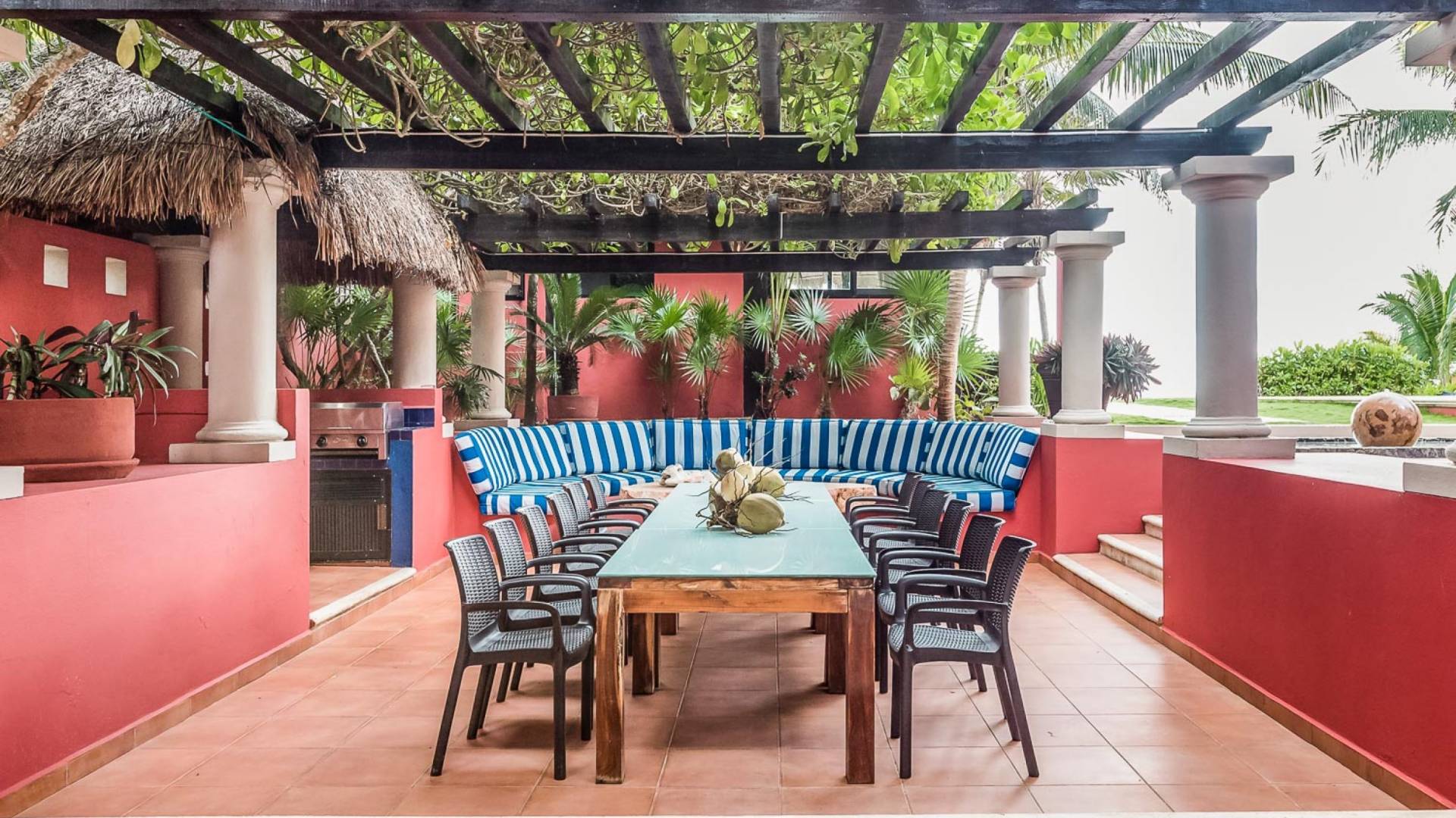 Die Hacienda verfügt über Terrassen und Unterhaltungsbereiche, in denen Gäste die Gesellschaft anderer genießen oder einen besonderen Bereich aufsuchen können, in dem Sie einen Moment der Abgeschiedenheit genießen können. Betreten Sie das kreisförmige Wohnzimmer im Freien, wo Sie Gäste und Familie auch an einem windigen Tag unterhalten können. Wir haben diesen Raum für ein entspanntes Leben mit einer Außenküche und bequemen Sitzgelegenheiten für viele Gäste gestaltet.