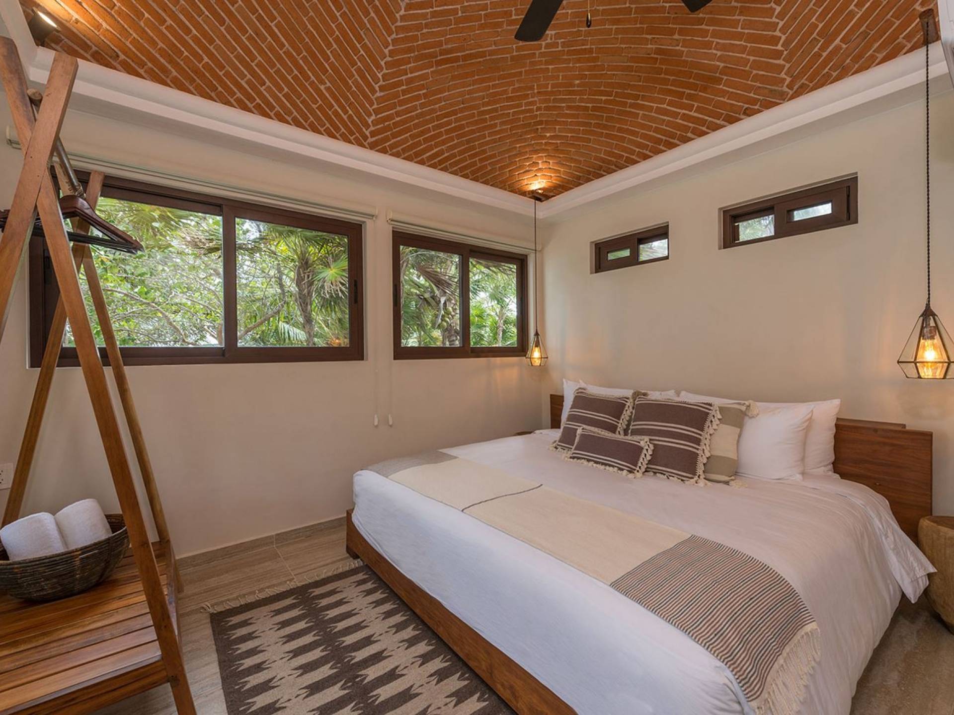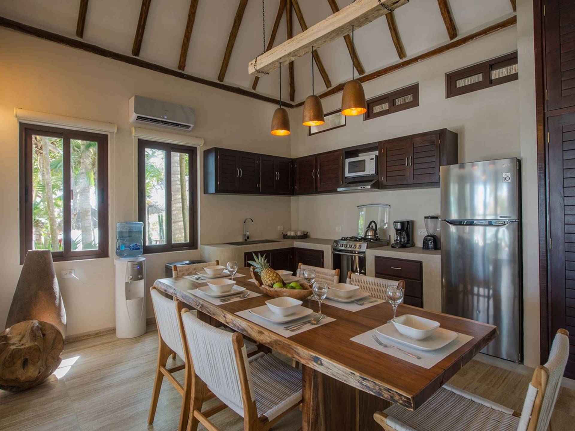 Es verfügt über zwei Schlafzimmer, zwei separate Badezimmer, eine Küche, einen Essbereich im Innen- und Außenbereich und einen Wohnbereich. Jedes Schlafzimmer befindet sich auf einer separaten Ebene, um Privatsphäre zu gewährleisten. Das erste Schlafzimmer befindet sich auf der ersten Ebene mit einem Kingsize-Bett und einem Loft mit zwei Doppelbetten. Das zweite Schlafzimmer befindet sich auf der zweiten Ebene mit einem Kingsize-Bett.