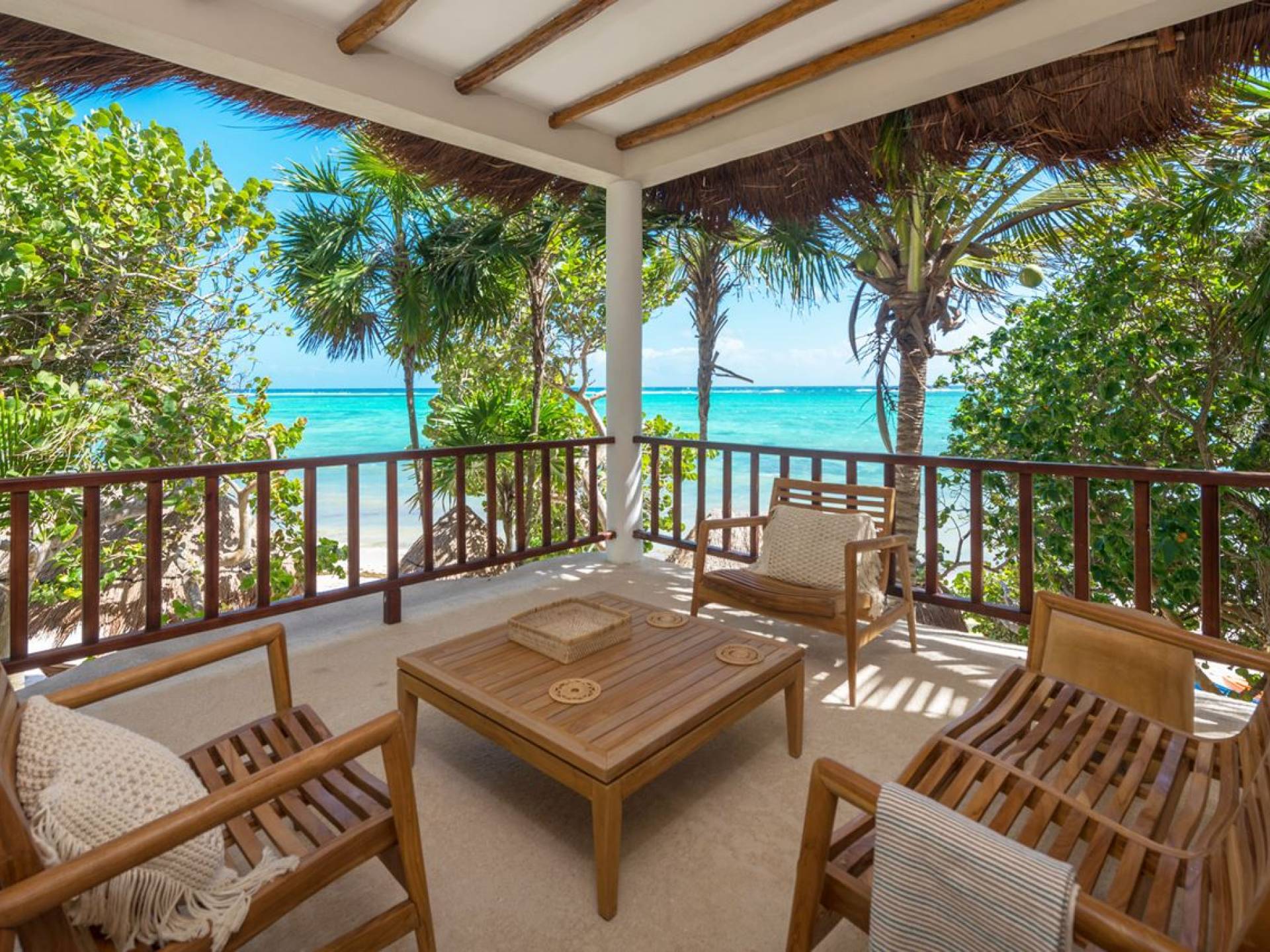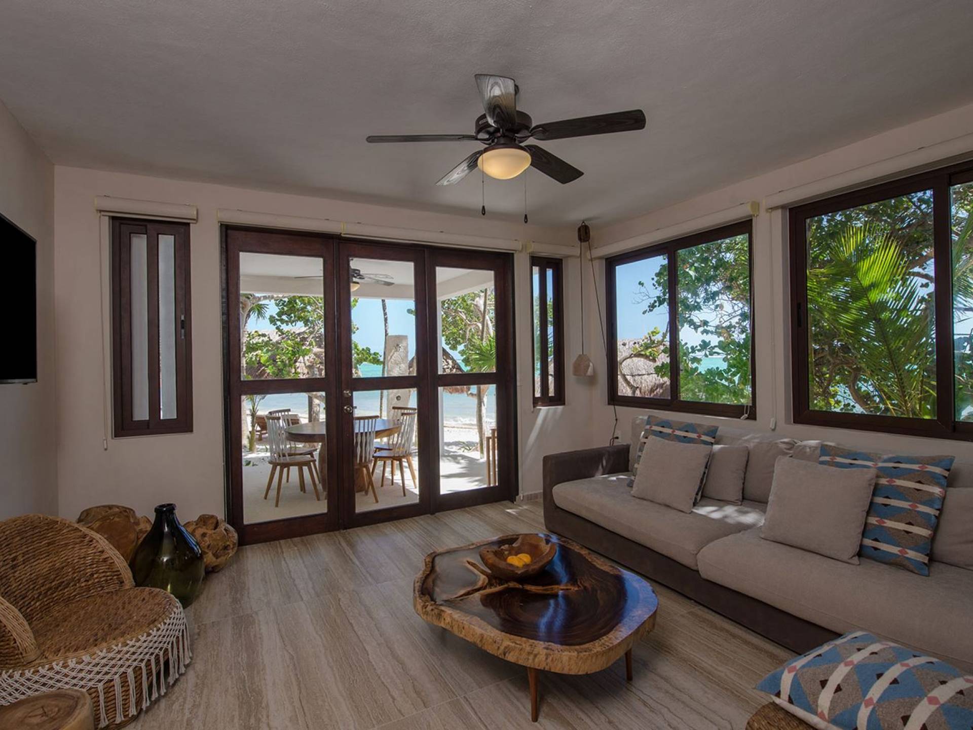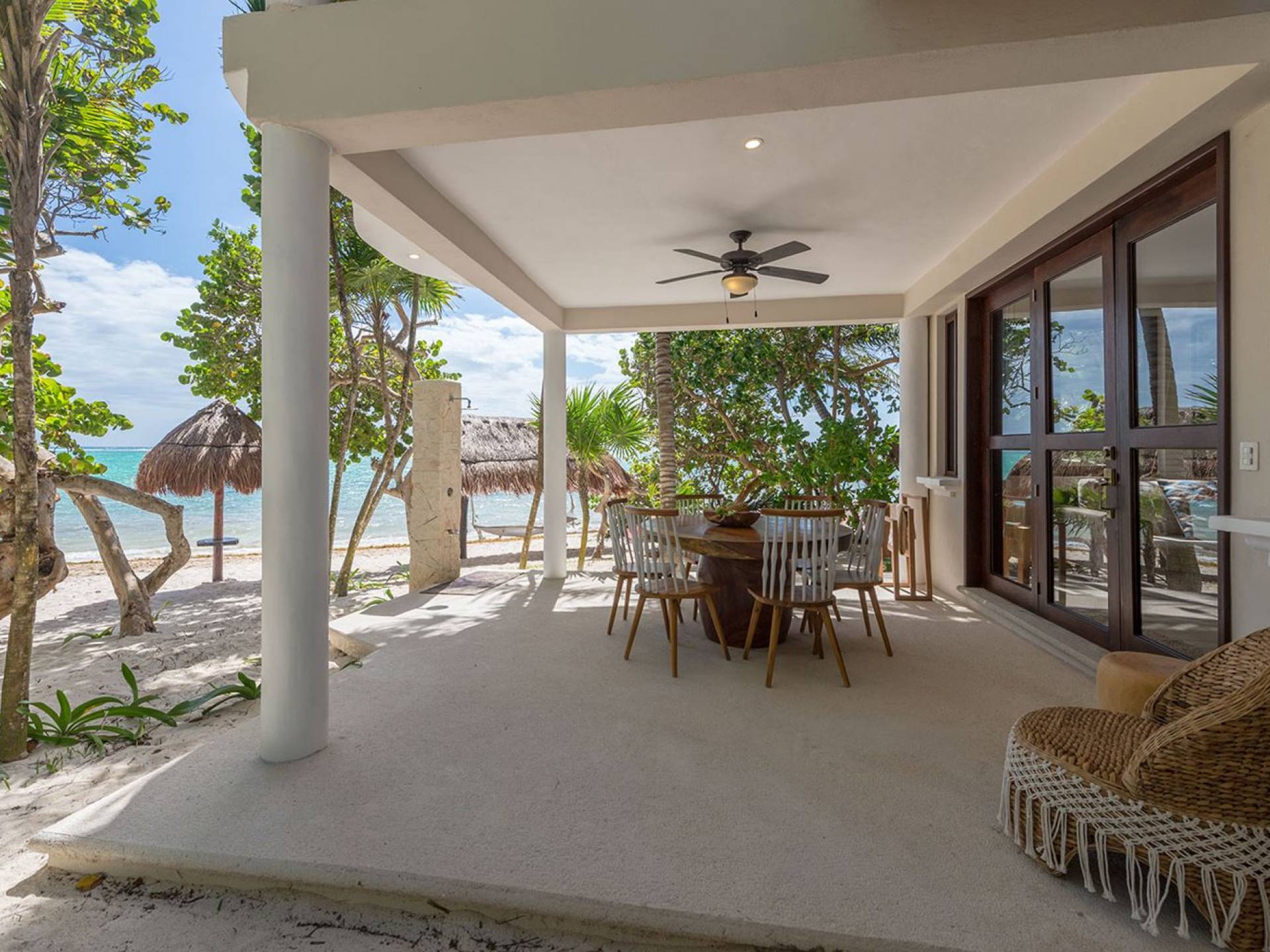 Corazon Uno Tulum ist eine Luxusvilla mit 2 Schlafzimmern und einem Gemeinschaftspool. Corazon Uno ist ein wunderschöner Bungalow mit zwei Schlafzimmern an den weißen Sandstränden der Soliman Bay, ideal für zwei Paare oder eine sechsköpfige Familie. Diese umweltfreundliche Unterkunft am Strand ist Teil eines Bungalows mit drei Unterkünften, der sich einen Pool, einen Grillbereich im Freien und einen eigenen schattigen Palapa mit Liegestühlen am Strand teilt.