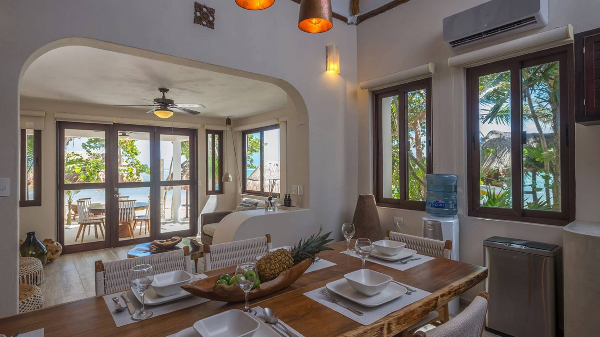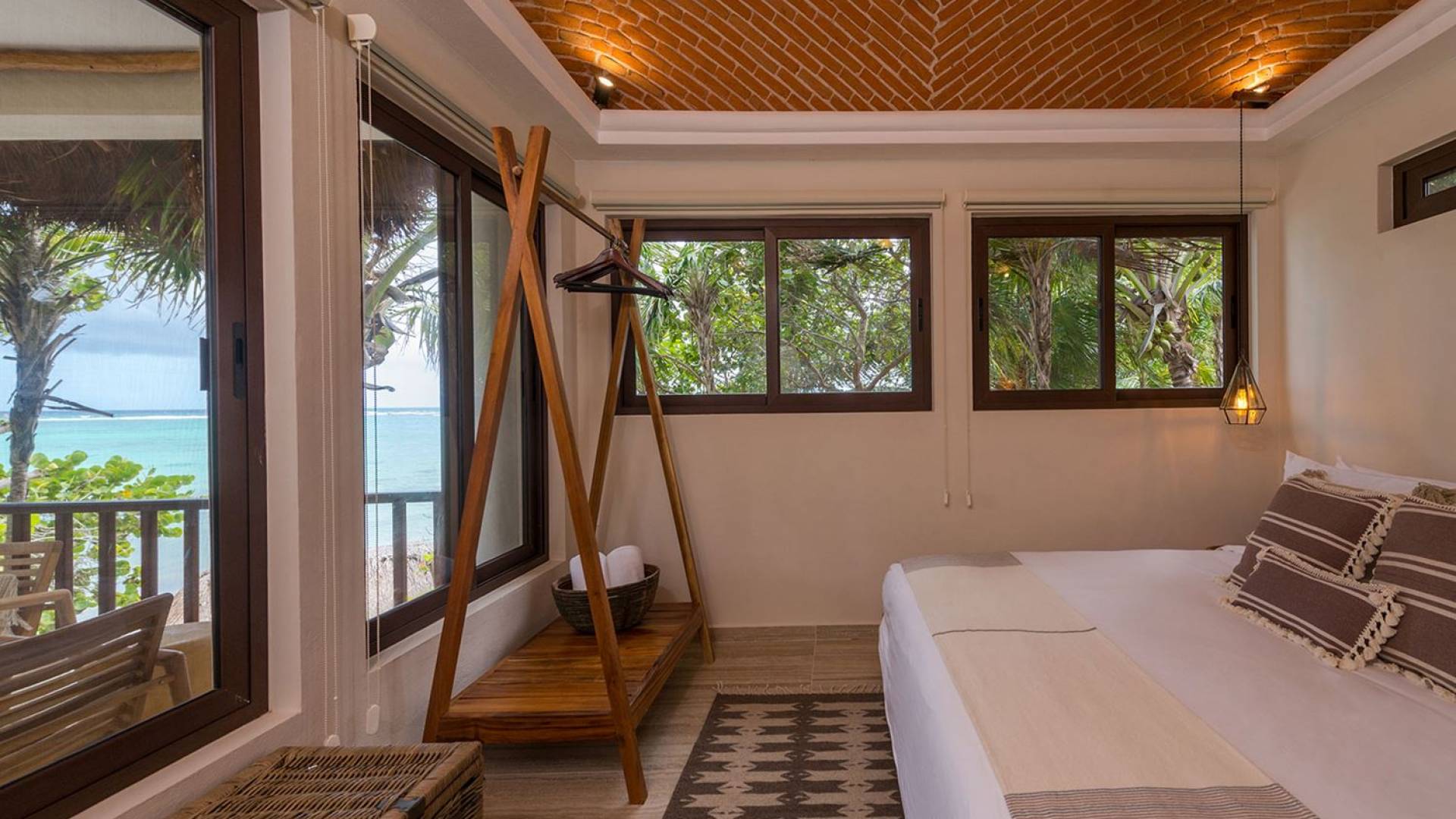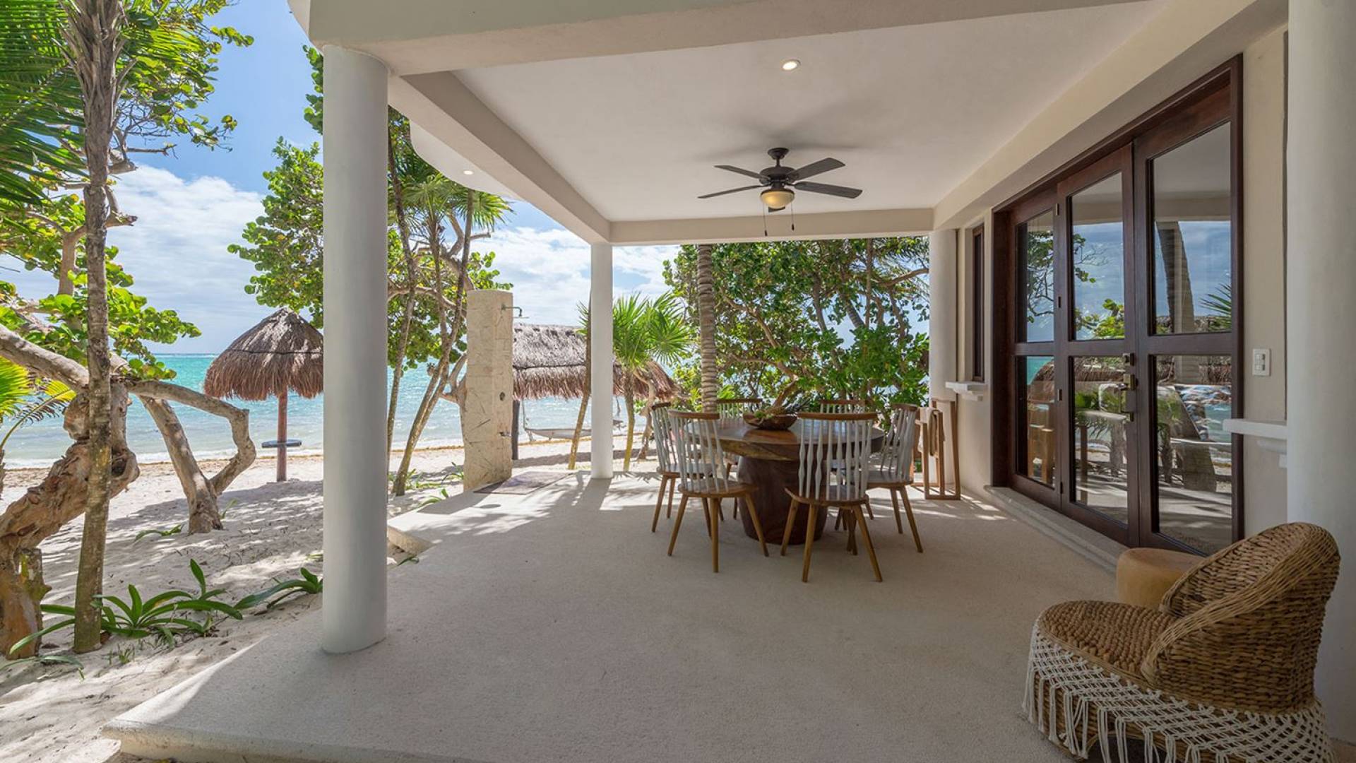 Corazon Uno Tulum ist eine Luxusvilla mit 2 Schlafzimmern und einem Gemeinschaftspool. Corazon Uno ist ein wunderschöner Bungalow mit zwei Schlafzimmern an den weißen Sandstränden der Soliman Bay, ideal für zwei Paare oder eine sechsköpfige Familie. Diese umweltfreundliche Unterkunft am Strand ist Teil eines Bungalows mit drei Unterkünften, der sich einen Pool, einen Grillbereich im Freien und einen eigenen schattigen Palapa mit Liegestühlen am Strand teilt.