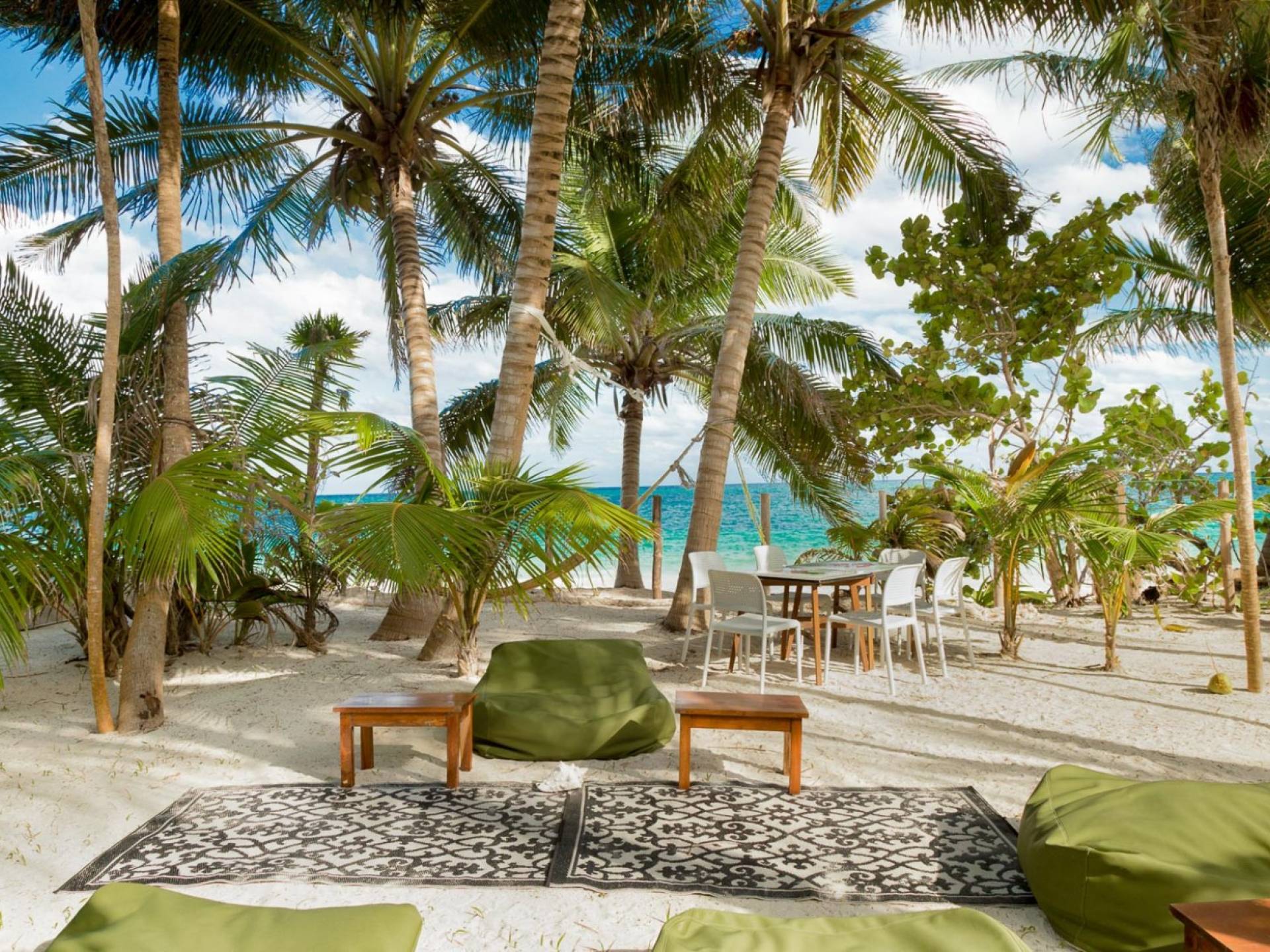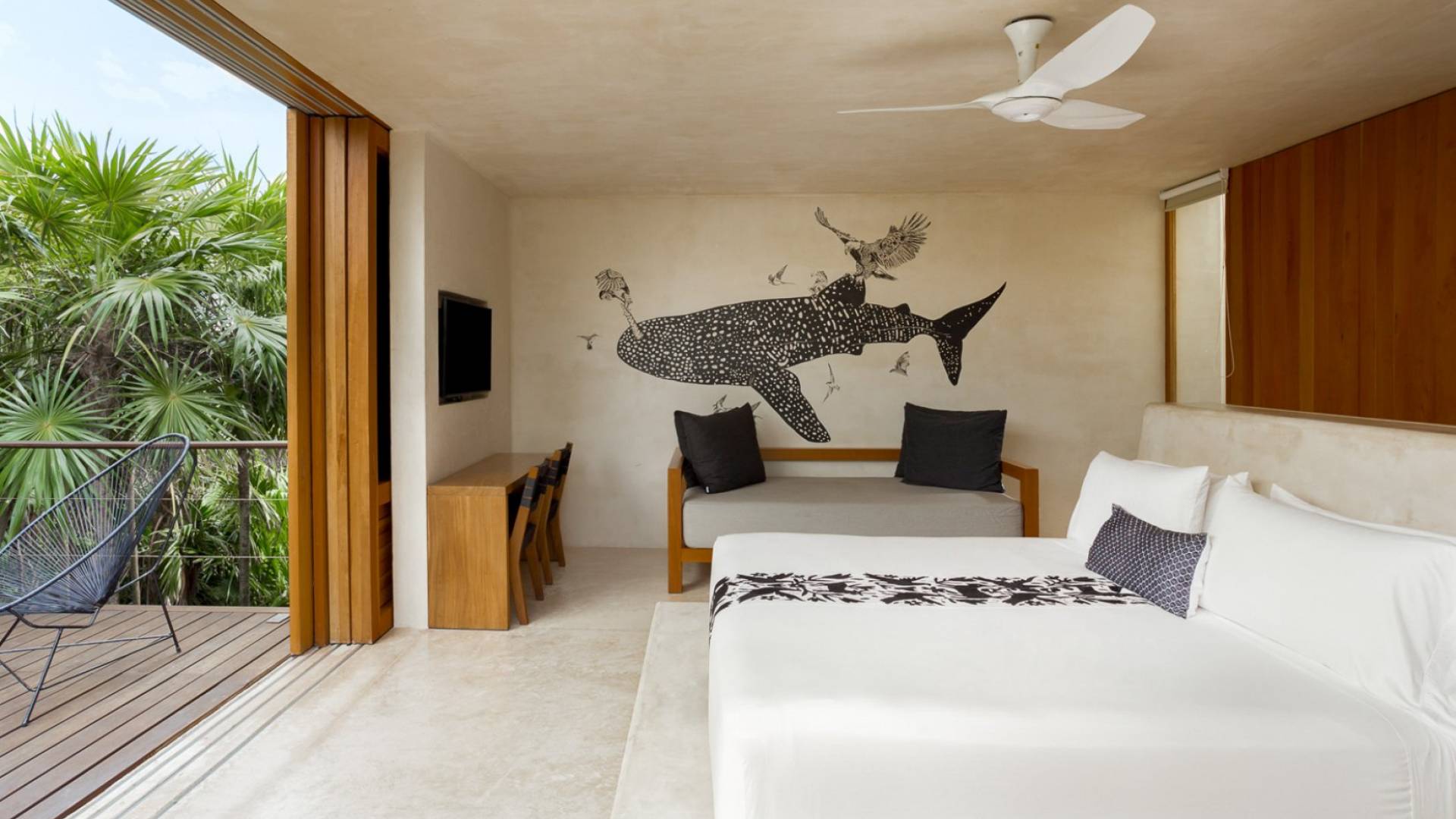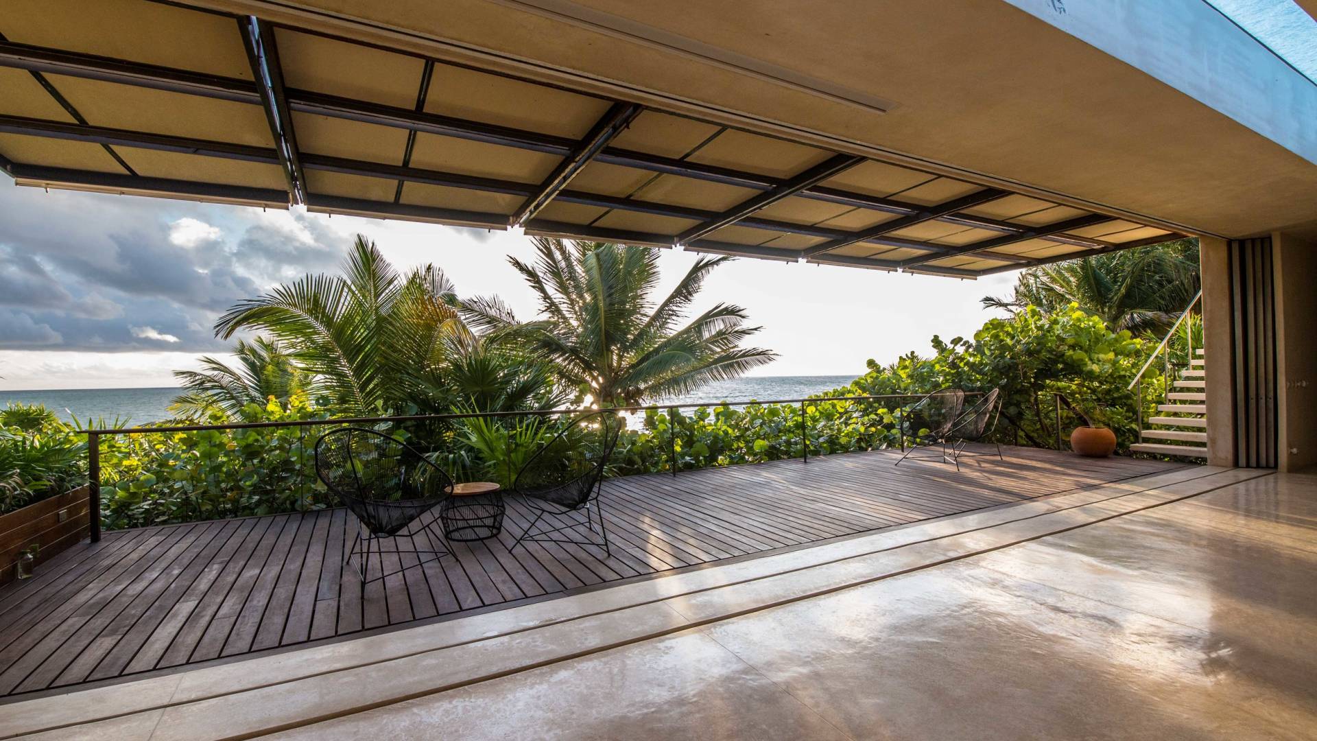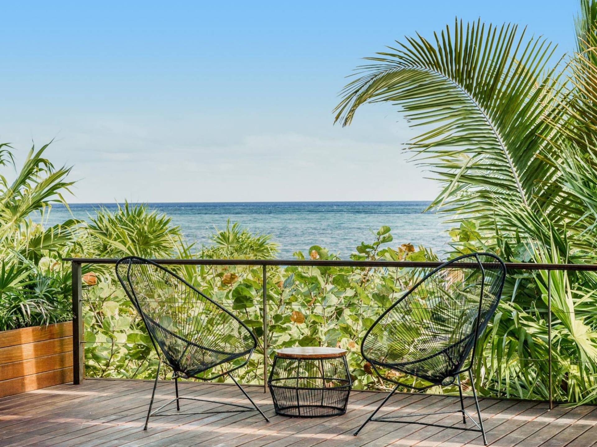 Viel Platz zum Spielen und Träumen. Direkt am Meer können Sie sich auf den Strandbetten mit einer Piña Colada aus den auf dem Anwesen angebauten Kokosnüssen entspannen und bräunen, am Riff schnorcheln oder mit dem Kajak hinauspaddeln. Oder treten Sie ein paar Meter vom Wasser entfernt in den gesprenkelten Schatten der Kokospalmen-Lounge, die mit stilvollen Liegestühlen und handgefertigten Hängematten aus dem nahe gelegenen Merida ausgestattet ist. Ihr Mittagessen kann unter den Kokospalmen serviert werden, während Sie sich zurücklehnen und den Fischadlern dabei zusehen, wie sie nach ihrer Beute tauchen. An einem anderen Tag können Sie Ihr Mittagessen auf dem Dach einnehmen, die 360°-Aussicht genießen, ein paar Runden im chlorfreien Pool drehen, auf den Sonnenliegen abhängen und eine Siesta machen. Das Dach ist ein idyllischer Ort für die Happy Hour, während Sie den Sonnenuntergang über der Lagune beobachten und die leichten Käfer in den Baumwipfeln tanzen.