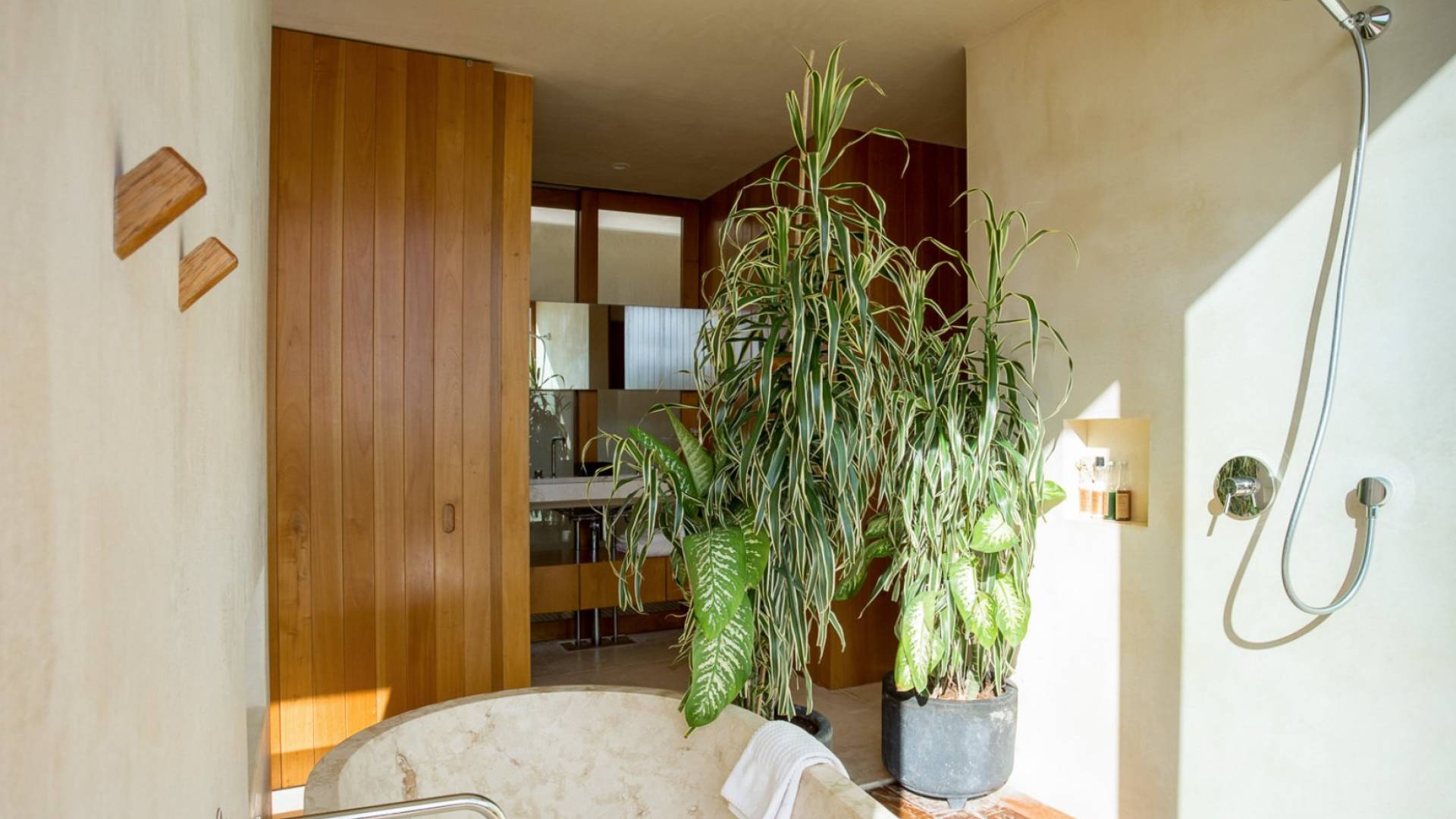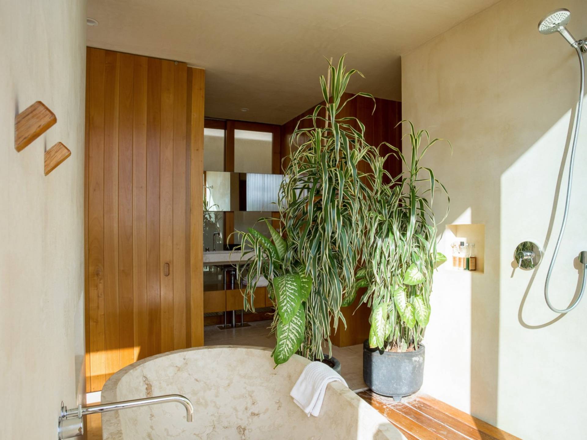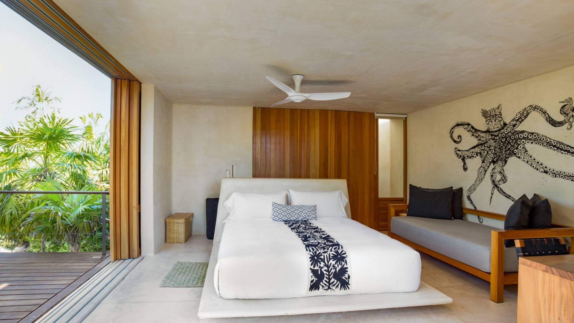 Wenn es an der Zeit ist, sich in einer der 4 Master-Suiten zu entspannen, möchten Sie vielleicht in der handgefertigten Steinwanne faulenzen, während Sie Champagner schlürfen, oder sich in Ihrer grünen Dusche erfrischen. Von Ihrem Kingsize-Bett aus können Sie HD-Satellitenfernsehen sehen, Ihre Klimaanlage und Ihren Deckenventilator regulieren oder die Verdunkelungsrollos hochziehen. Jede Suite verfügt über eine eigene weitläufige Terrasse mit Meerblick, auf der Sie sich ganz privat zurücklehnen können.
