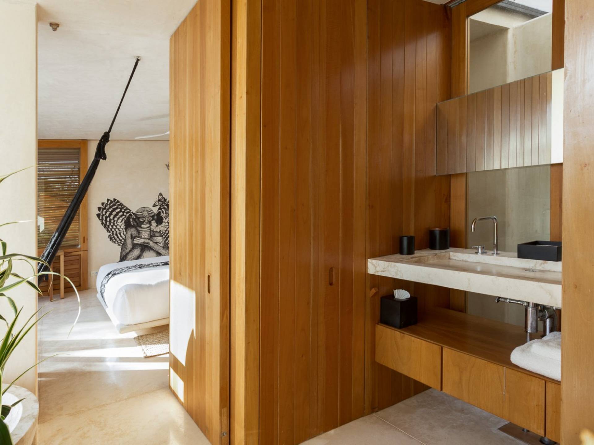 Villa Na'iik Tulum ist eine Luxusvilla mit 4 Schlafzimmern und einem privaten Pool. Villa Na'iik ist einfach umwerfend. In seiner Privatsphäre, Originalität, Liebe zum Detail und Qualität ist es der Inbegriff von Luxus. Und das Beste ist, dass Sie mitten im Dschungel erstklassigen Full-Service genießen. Ihr eigenes verstecktes Öko-Refugium ohne einen Nachbarn in Sichtweite. Ein grünes Anwesen, eingebettet zwischen dem Karibischen Meer und einer Maya-Lagune, wo Sie nach Herzenslust träumen und spielen können. Mit dem warmen Wind in Ihrem Haar und einem kühlen Getränk in der Hand werden Sie in der exklusiven Oase schwelgen, die wir Na'iik genannt haben, das Maya-Wort für Haus der Luft.