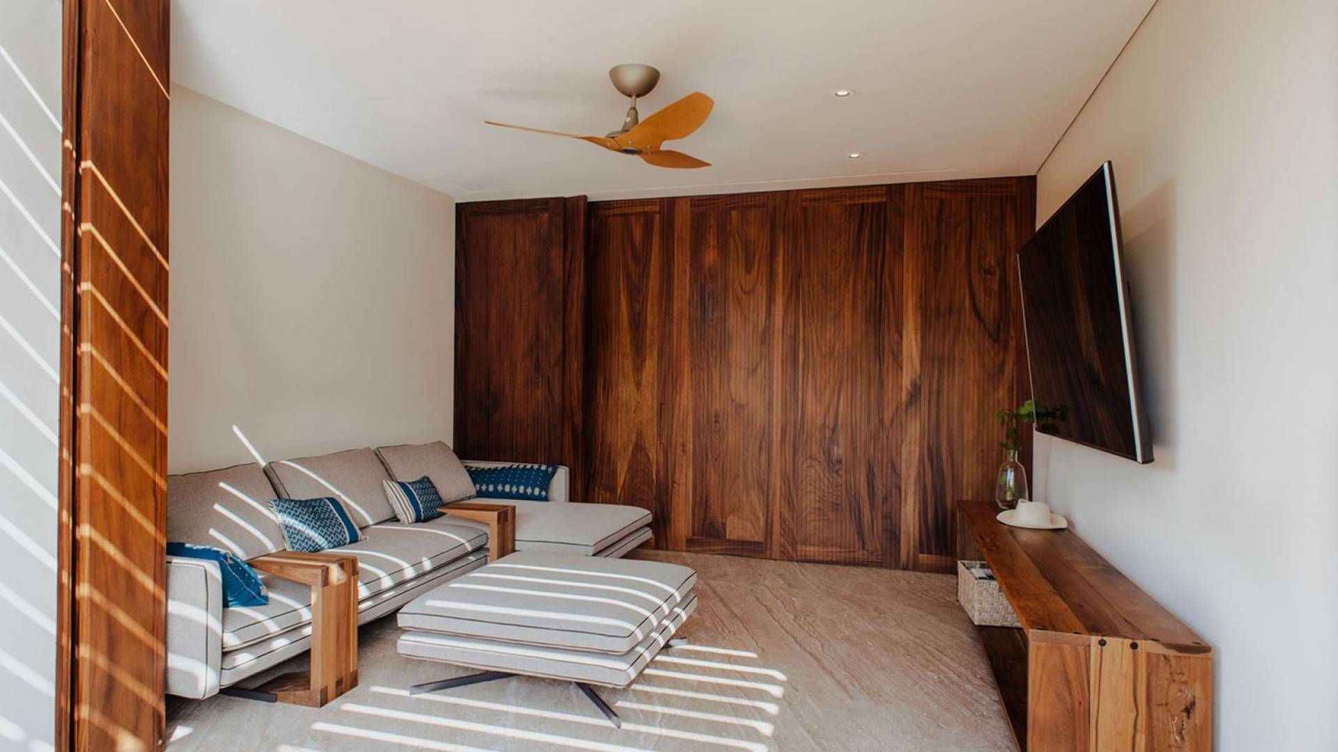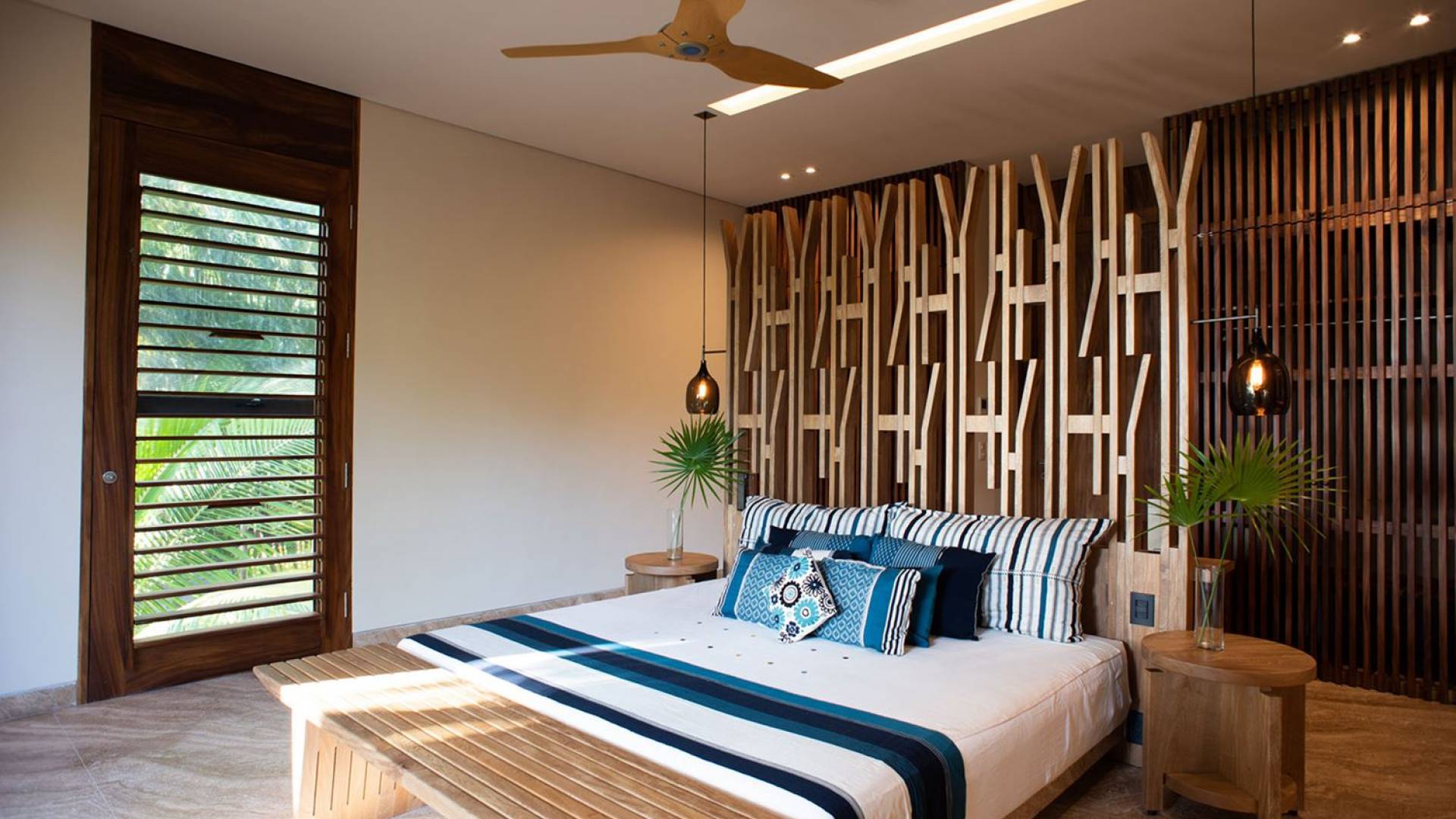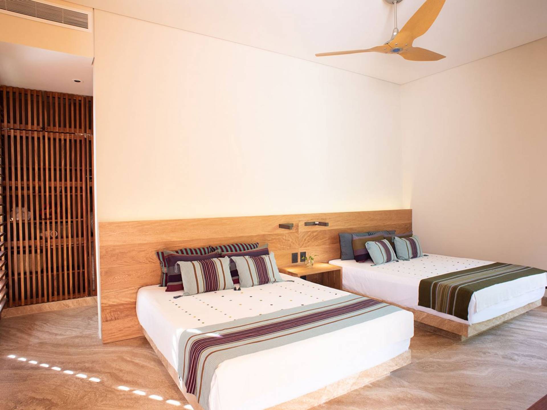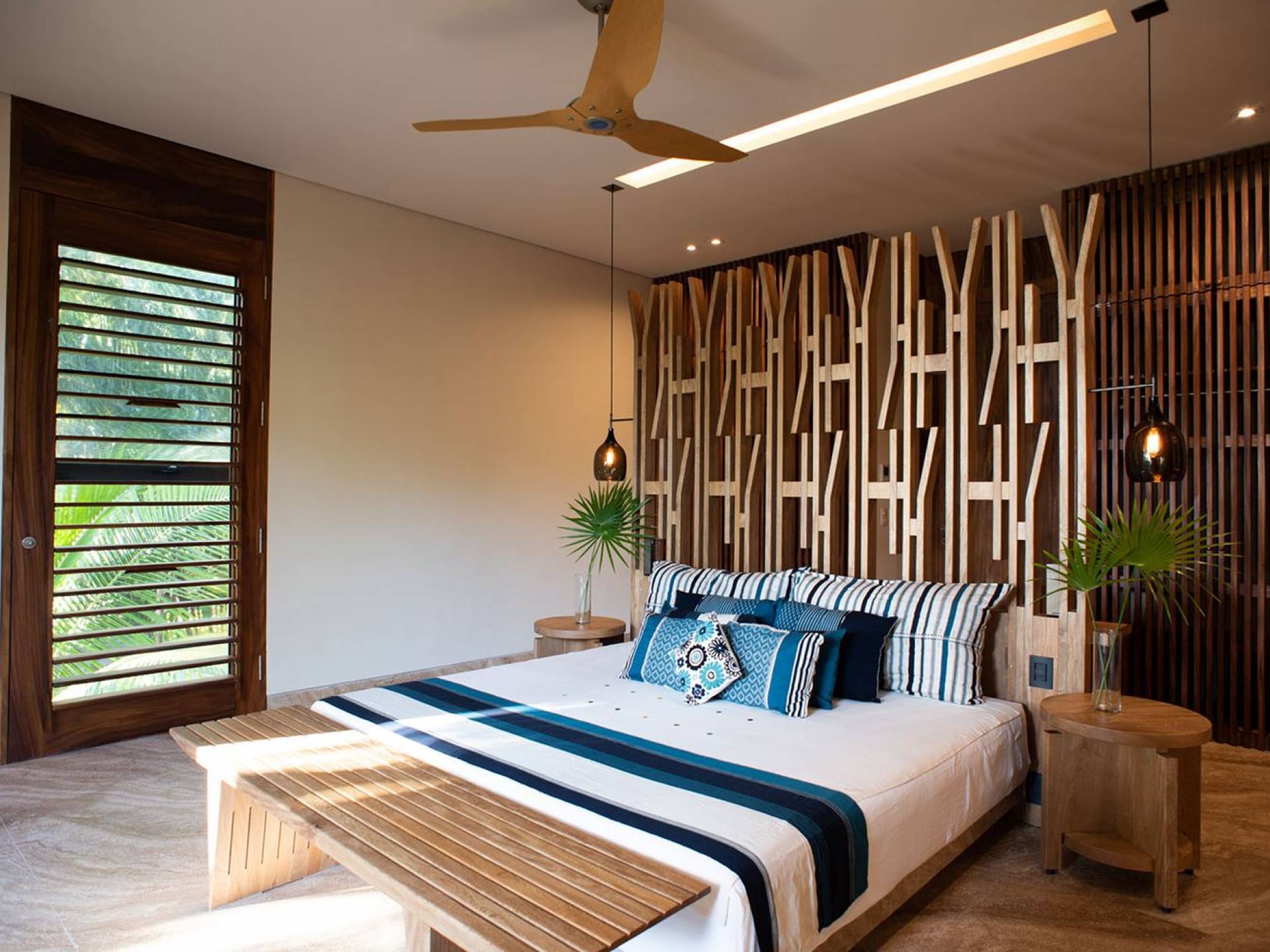 Das Dach wurde für opulentes Wohnen entworfen und verfügt über einen herrlichen 30-Fuß-Infinity-Salzwasserpool, einen Whirlpool für 8 Personen, eine Lounge mit Kamin, einen Bereich mit Sternenbeobachtung und sogar einen großen schattigen Tisch für Cocktails und Abendessen „über allem“. Uh K'aay wurde für ein harmonisches Leben mit der Natur geschaffen und verfügt über einziehbare Wände, offene Korridore und mehrere Terrassen, die ein nahtloses Wohnen im Innen- und Außenbereich ermöglichen. Diese luxuriöse Villa mit 4 Schlafzimmern wurde sorgfältig geplant, um mit der Meeresbrise, dem Himmel und dem Schatten zusammenzuarbeiten, um eine frische Atmosphäre mit einem sich ständig ändernden Spiel von Farben und Licht aufrechtzuerhalten. Das Innendesign ist inspiriert: clean und schlicht mit Holz, Weiß und Blau. Die Möbel, das Dekor und die Kunst wurden alle von mexikanischen Handwerkern geschaffen, die das lokale Erbe wunderbar in dieses erstaunliche Haus integrieren.