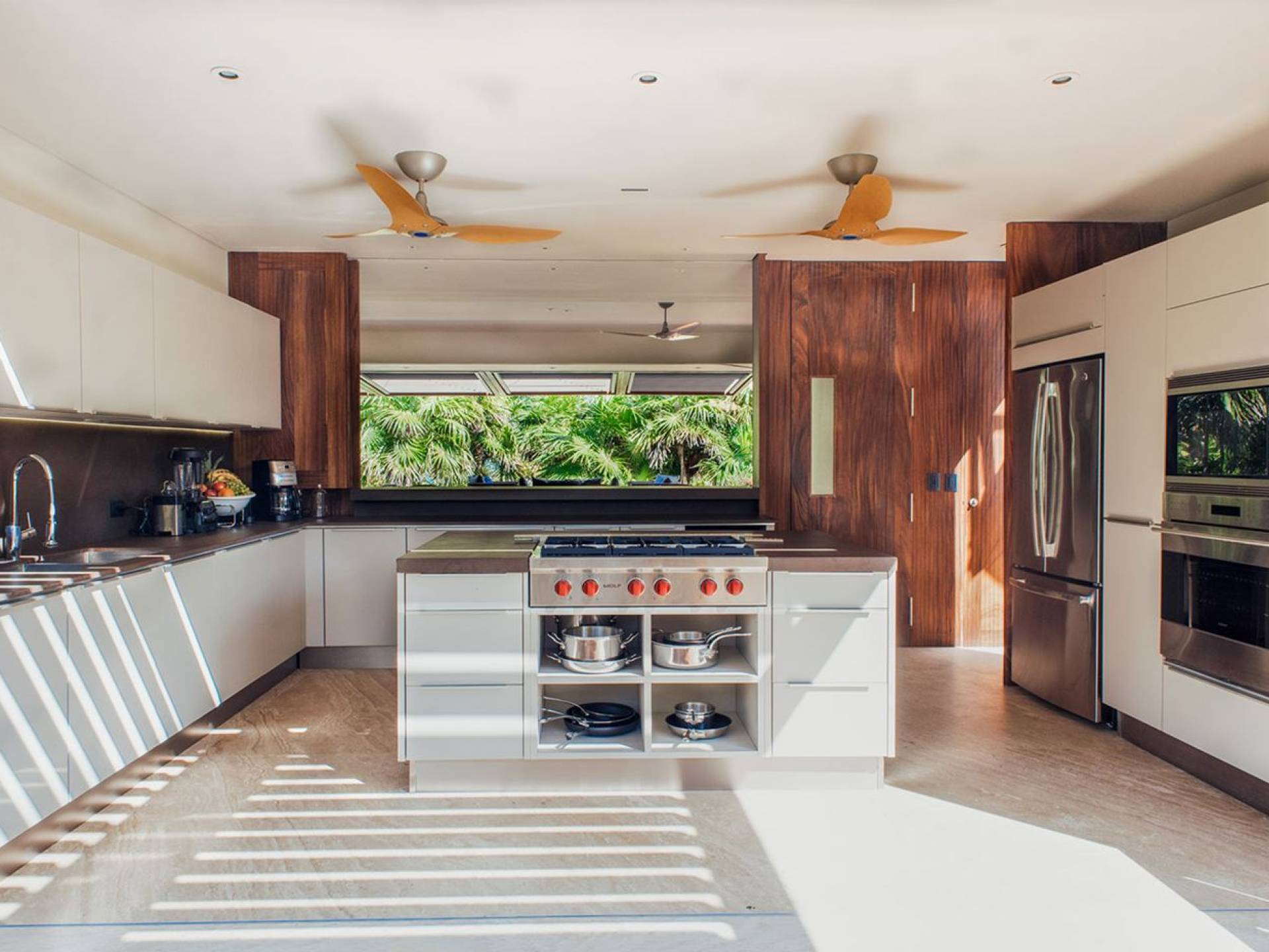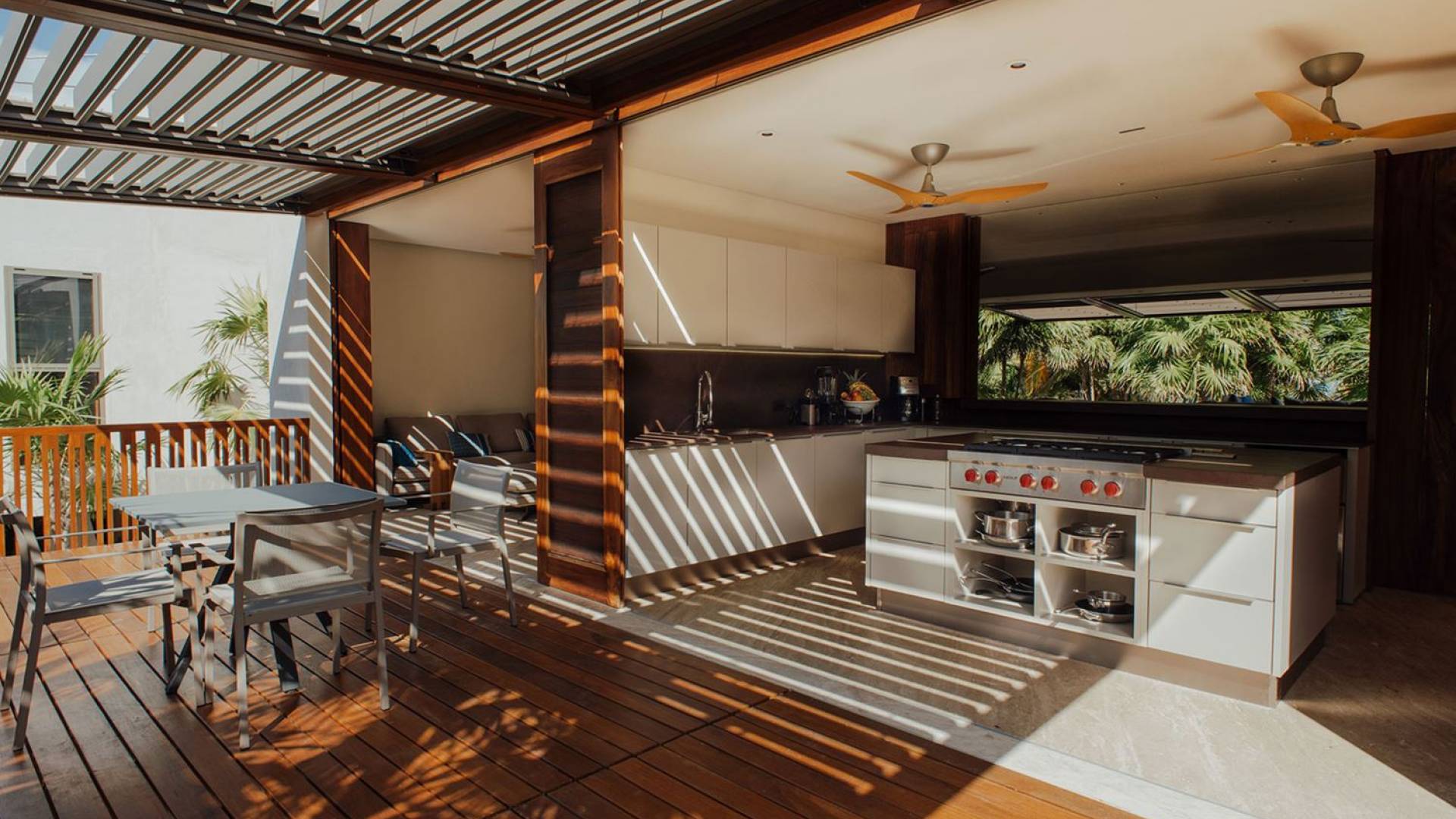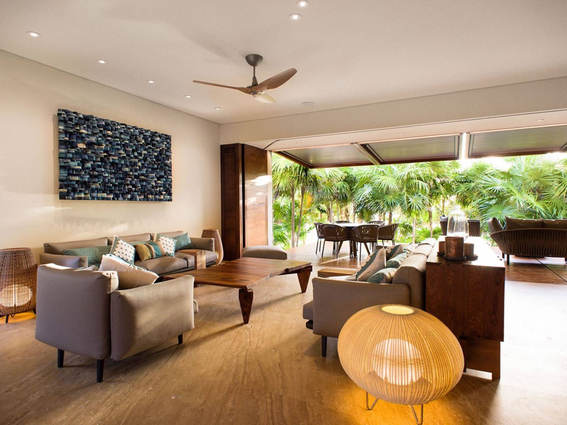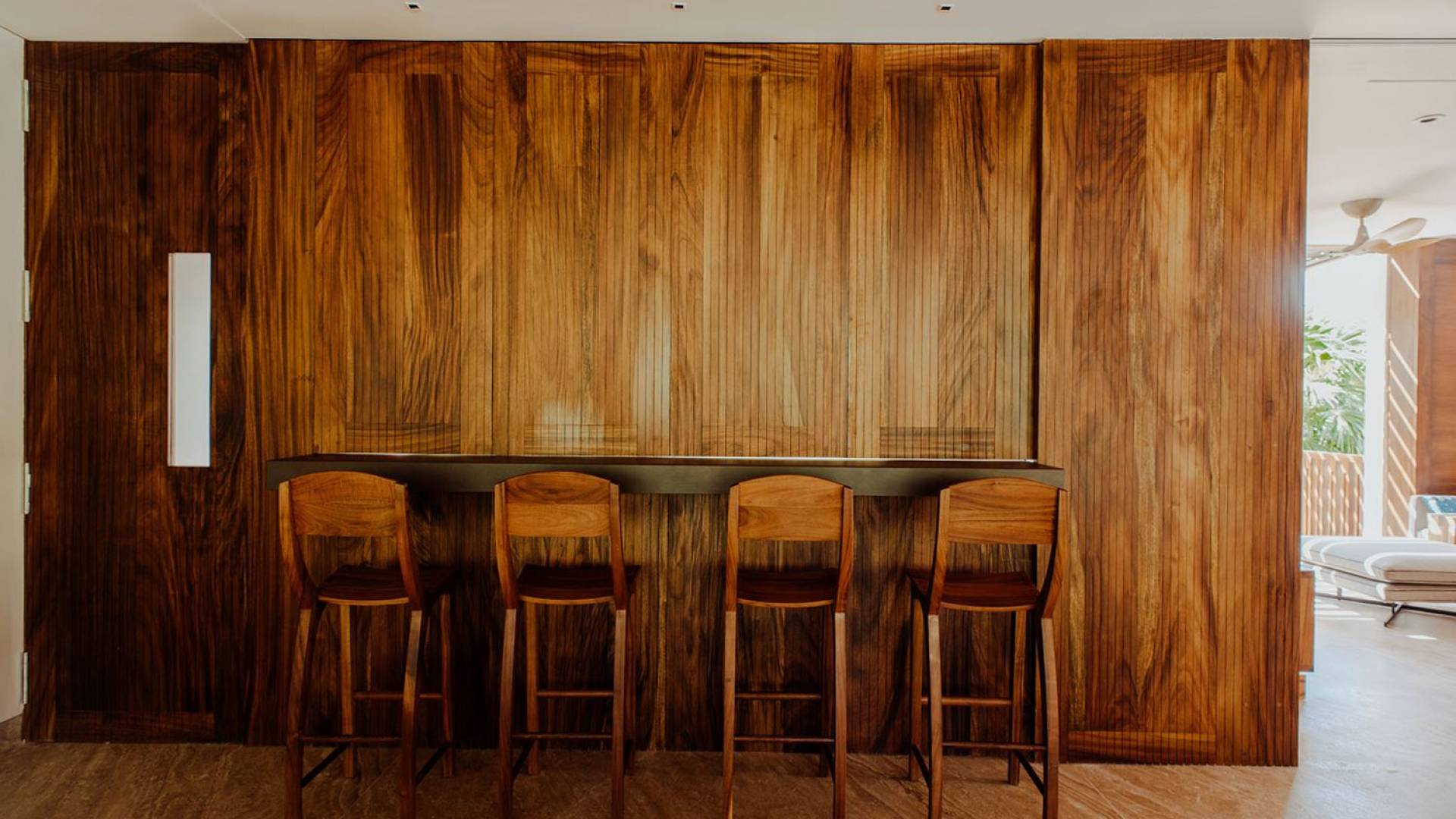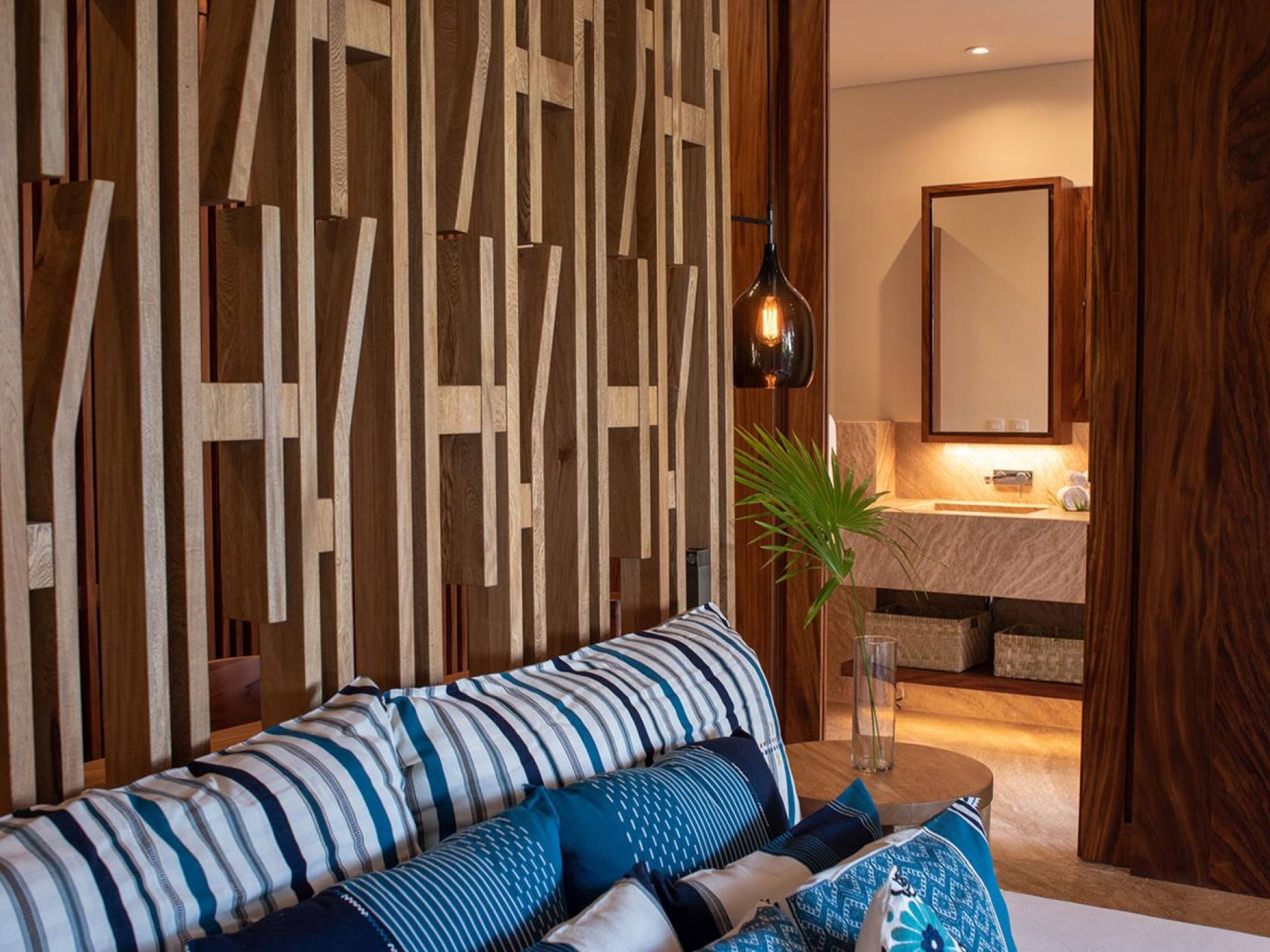 Das Dach wurde für opulentes Wohnen entworfen und verfügt über einen herrlichen 30-Fuß-Infinity-Salzwasserpool, einen Whirlpool für 8 Personen, eine Lounge mit Kamin, einen Bereich mit Sternenbeobachtung und sogar einen großen schattigen Tisch für Cocktails und Abendessen „über allem“. Uh K'aay wurde für ein harmonisches Leben mit der Natur geschaffen und verfügt über einziehbare Wände, offene Korridore und mehrere Terrassen, die ein nahtloses Wohnen im Innen- und Außenbereich ermöglichen. Diese luxuriöse Villa mit 4 Schlafzimmern wurde sorgfältig geplant, um mit der Meeresbrise, dem Himmel und dem Schatten zusammenzuarbeiten, um eine frische Atmosphäre mit einem sich ständig ändernden Spiel von Farben und Licht aufrechtzuerhalten. Das Innendesign ist inspiriert: clean und schlicht mit Holz, Weiß und Blau. Die Möbel, das Dekor und die Kunst wurden alle von mexikanischen Handwerkern geschaffen, die das lokale Erbe wunderbar in dieses erstaunliche Haus integrieren.