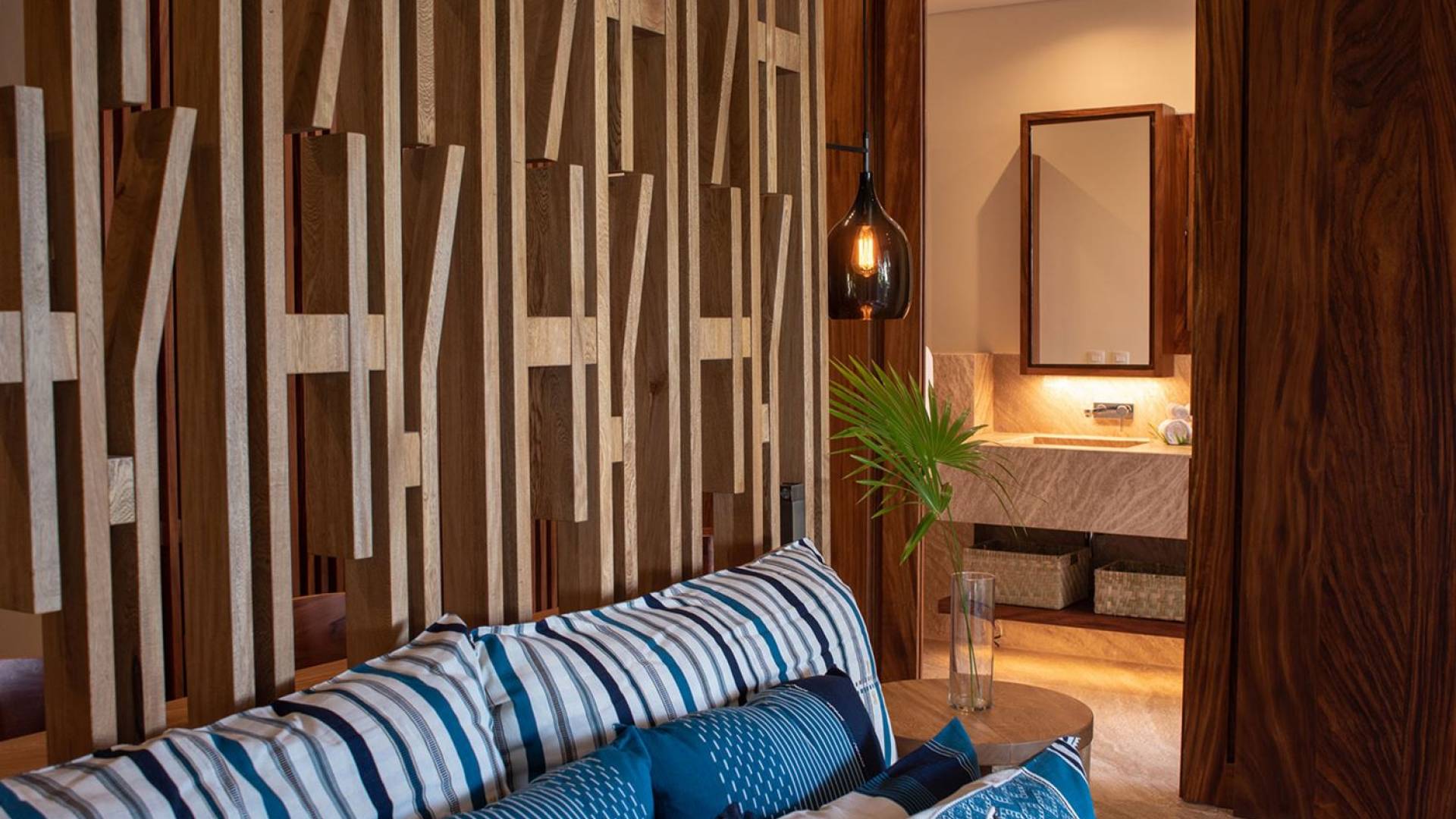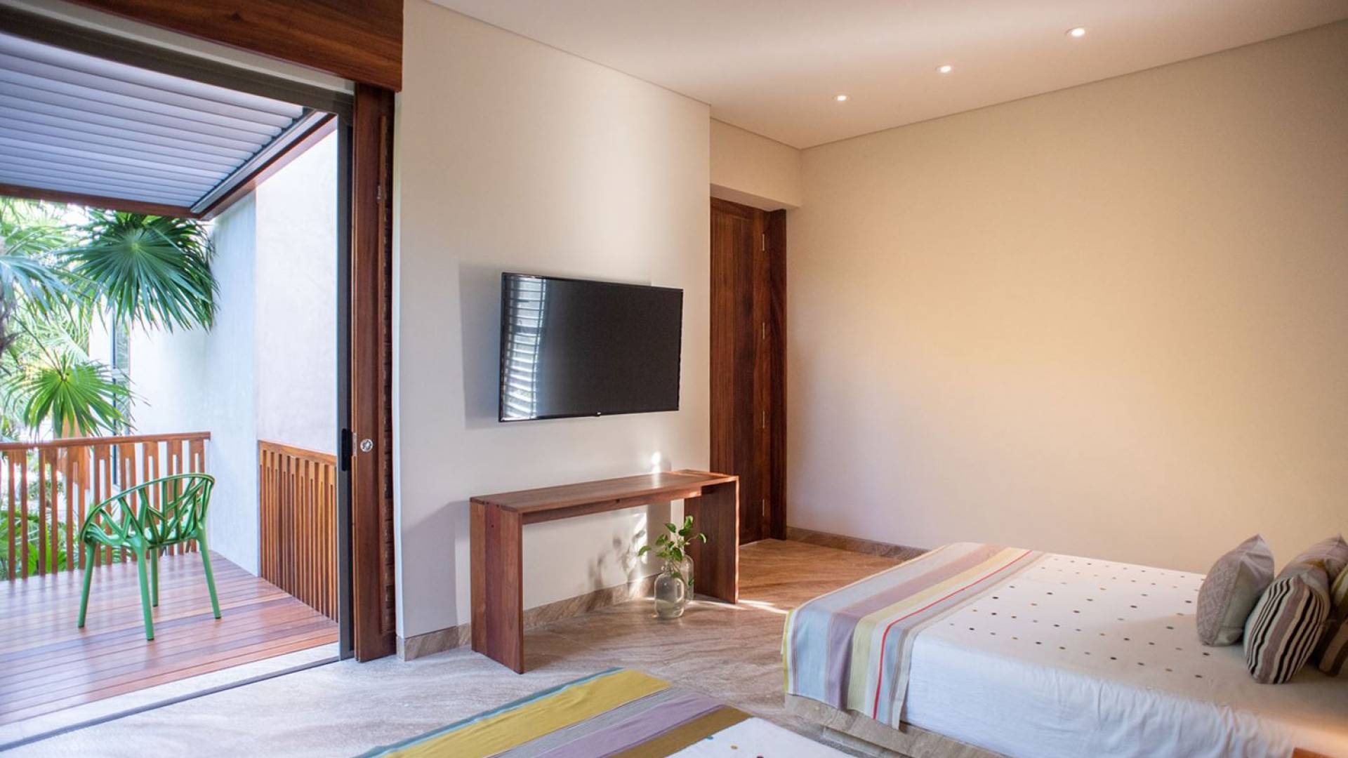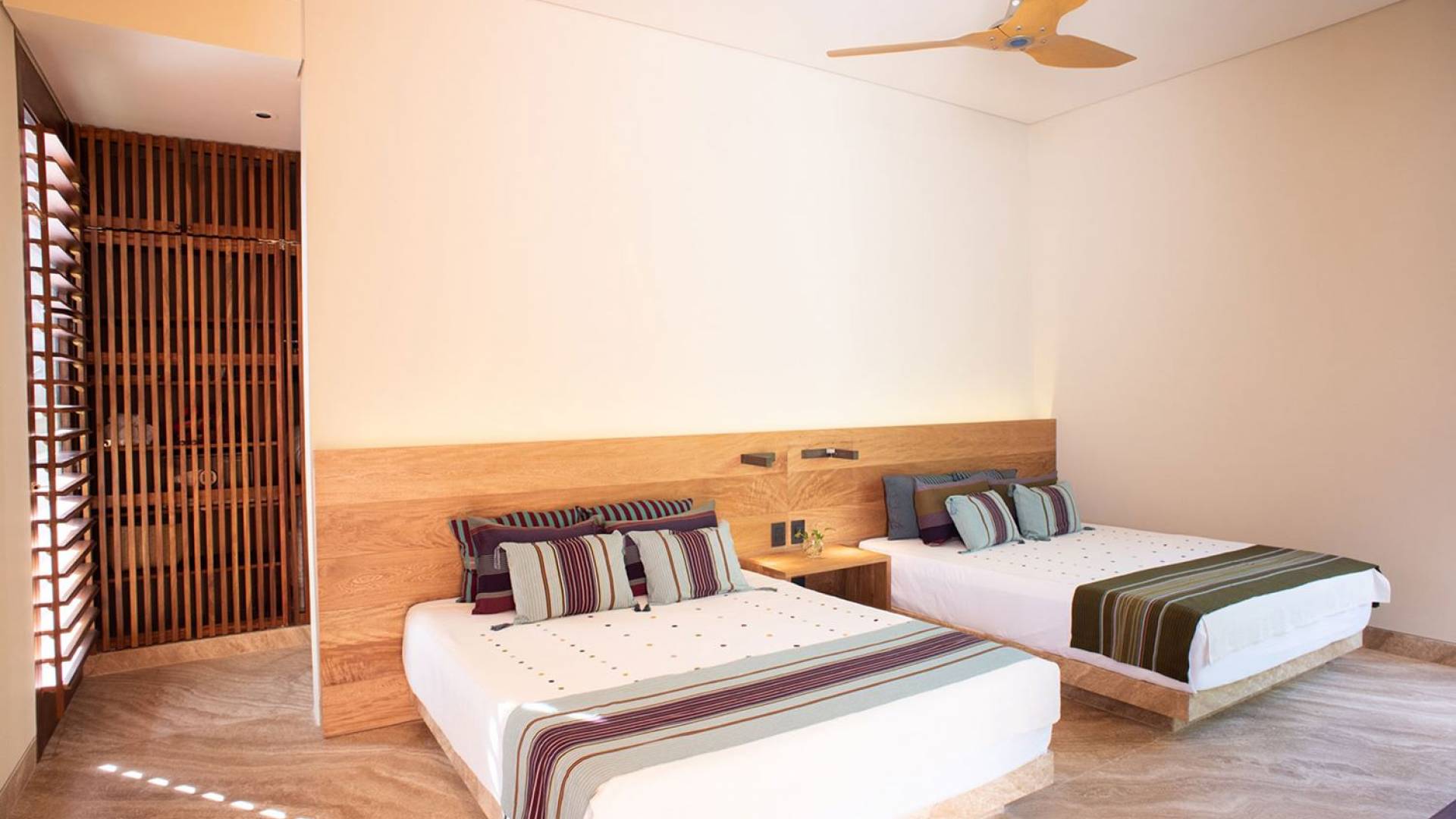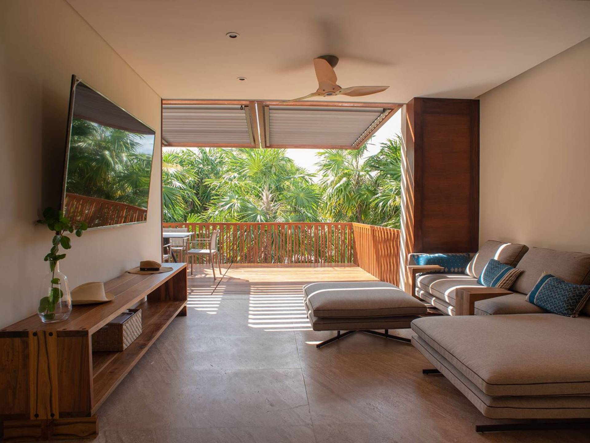 Das Dach wurde für opulentes Wohnen entworfen und verfügt über einen herrlichen 30-Fuß-Infinity-Salzwasserpool, einen Whirlpool für 8 Personen, eine Lounge mit Kamin, einen Bereich mit Sternenbeobachtung und sogar einen großen schattigen Tisch für Cocktails und Abendessen „über allem“. Uh K'aay wurde für ein harmonisches Leben mit der Natur geschaffen und verfügt über einziehbare Wände, offene Korridore und mehrere Terrassen, die ein nahtloses Wohnen im Innen- und Außenbereich ermöglichen. Diese luxuriöse Villa mit 4 Schlafzimmern wurde sorgfältig geplant, um mit der Meeresbrise, dem Himmel und dem Schatten zusammenzuarbeiten, um eine frische Atmosphäre mit einem sich ständig ändernden Spiel von Farben und Licht aufrechtzuerhalten. Das Innendesign ist inspiriert: clean und schlicht mit Holz, Weiß und Blau. Die Möbel, das Dekor und die Kunst wurden alle von mexikanischen Handwerkern geschaffen, die das lokale Erbe wunderbar in dieses erstaunliche Haus integrieren.