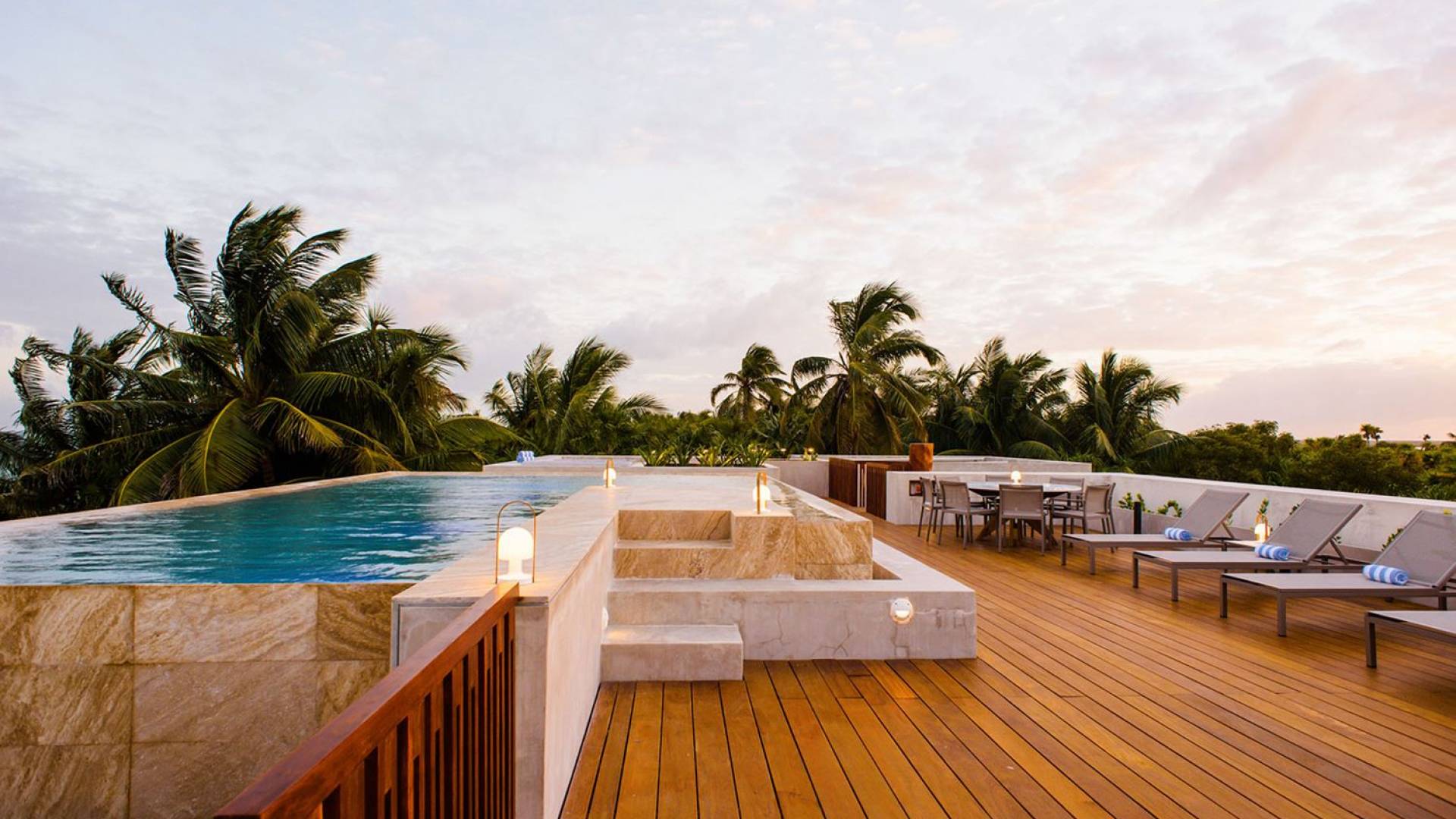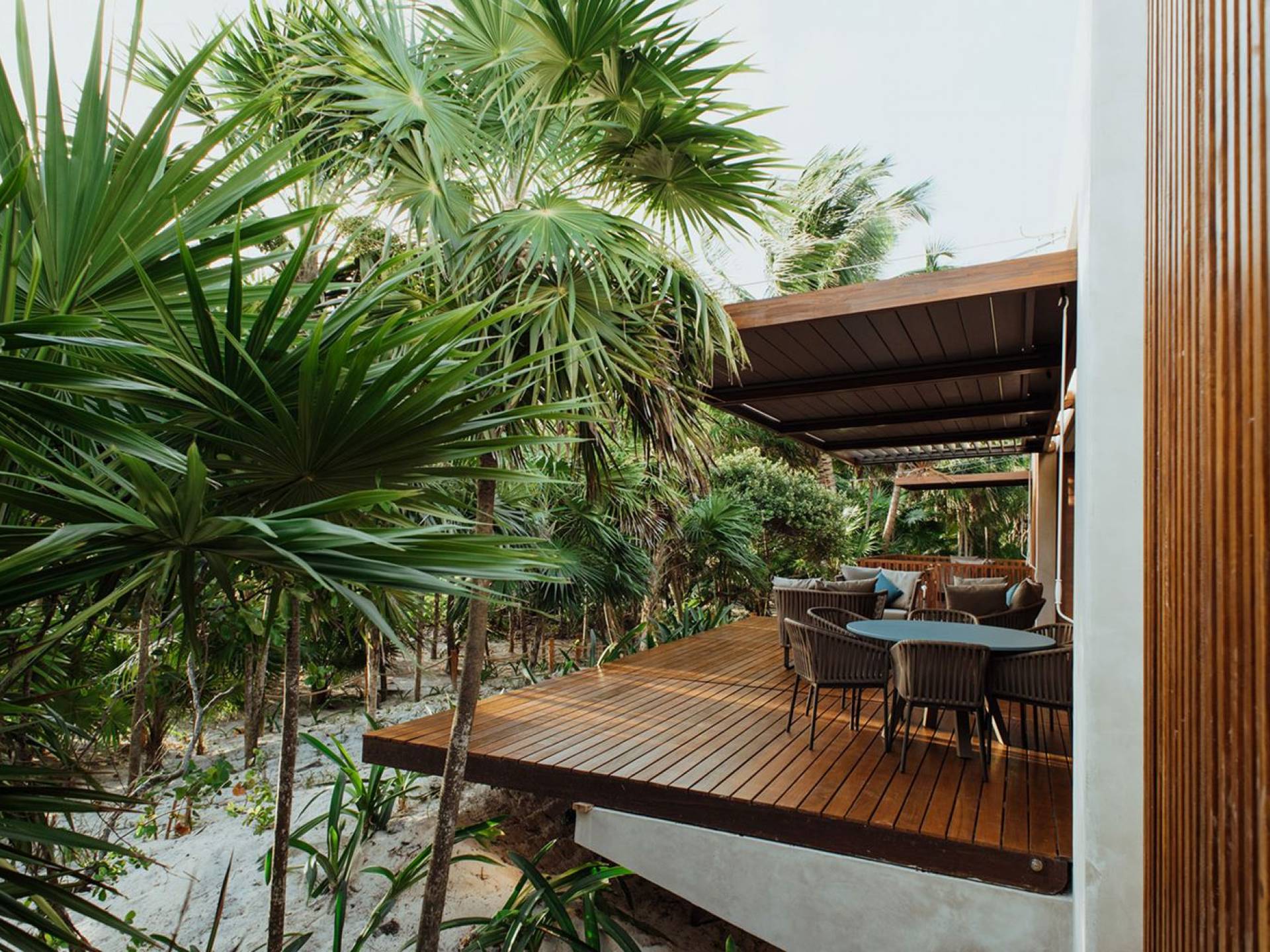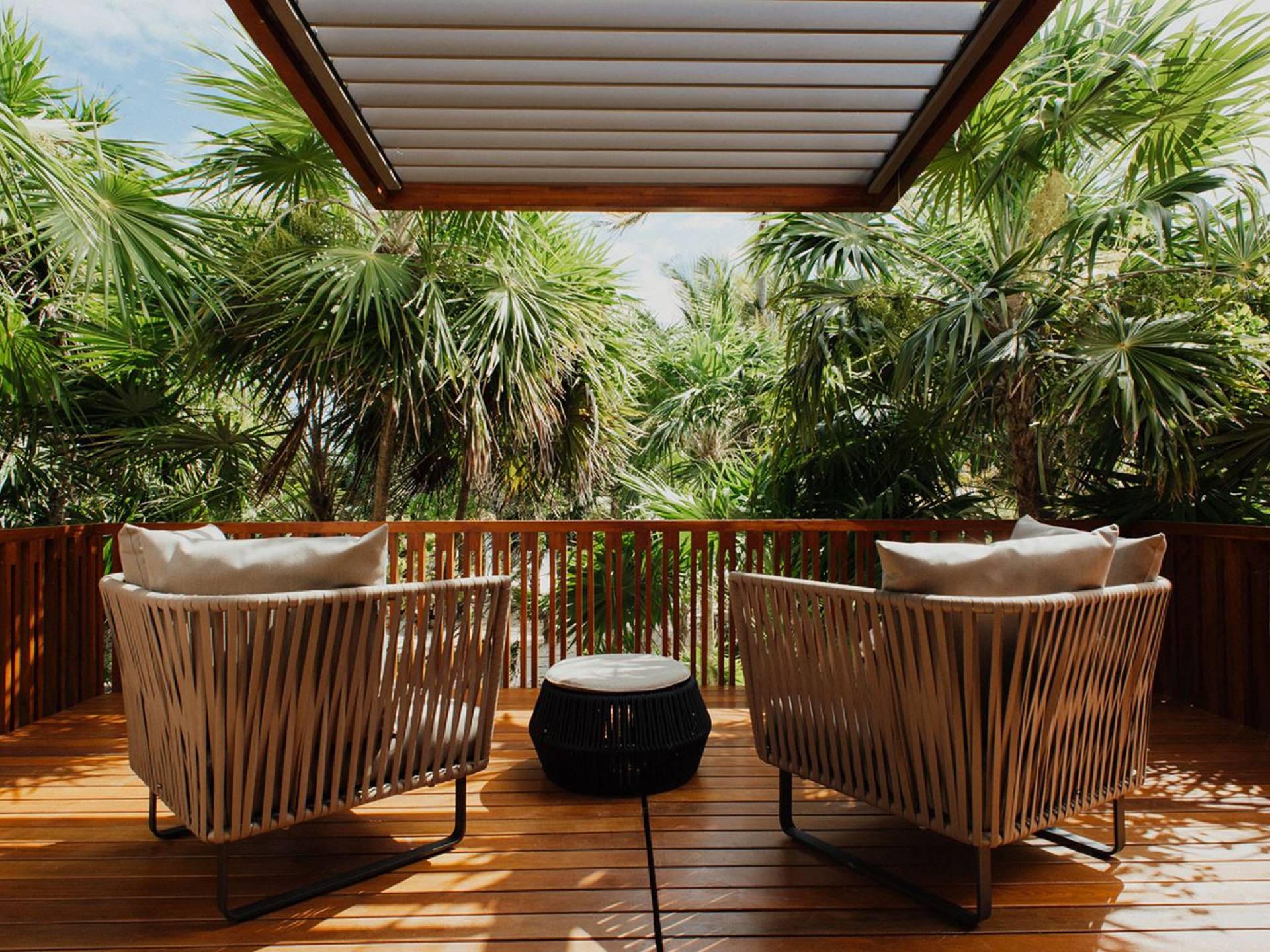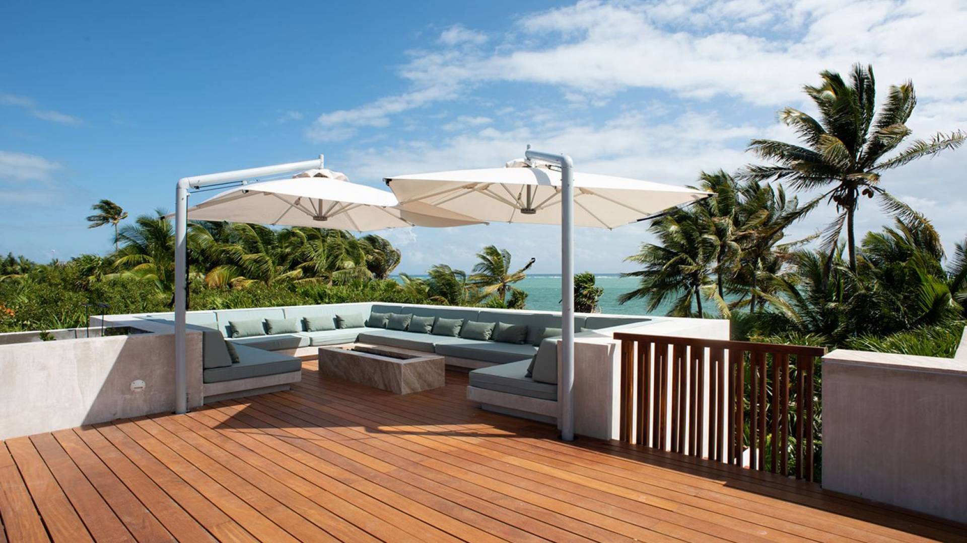 Uh K'aay bietet spektakuläre Ausblicke aus jedem Blickwinkel, aber nichts ist atemberaubender als das Panorama vom Dach. Wählen Sie Ihre Aussicht: das türkis schimmernde Wasser der Karibik; das üppige, lebendige Grün des Dschungels; das schlammige Blau der Mangrovenlagune oder sogar die hellen Sterne am ebenholzfarbenen Nachthimmel.
