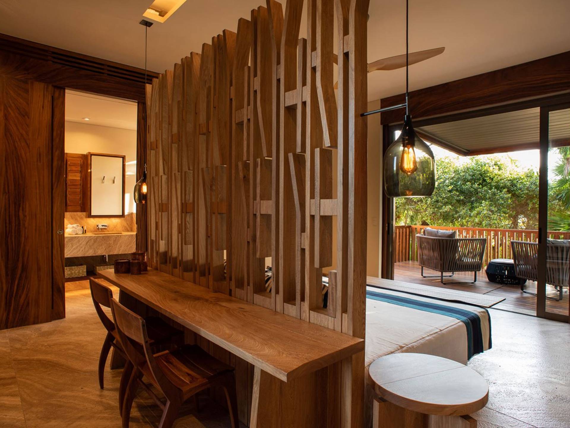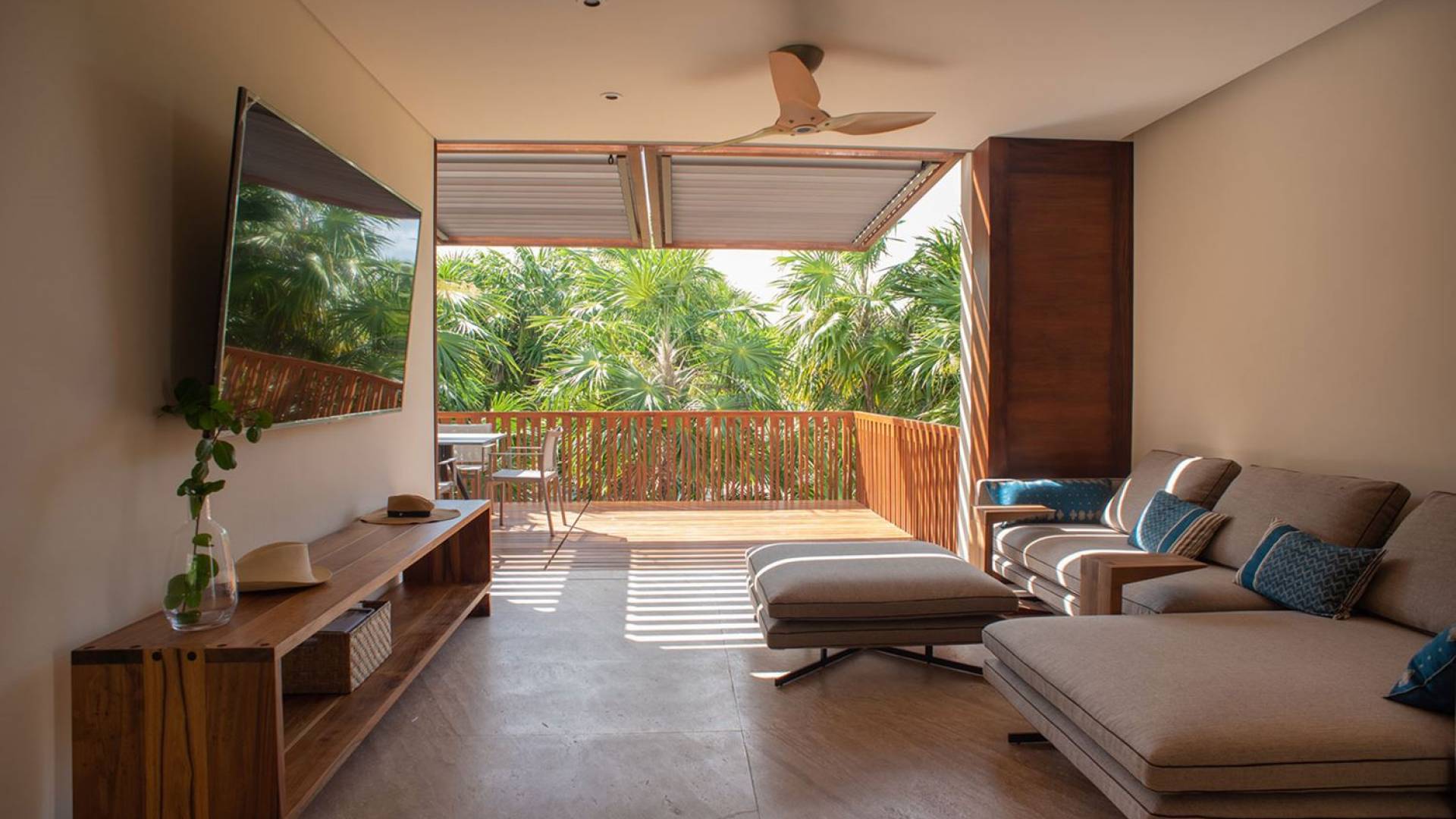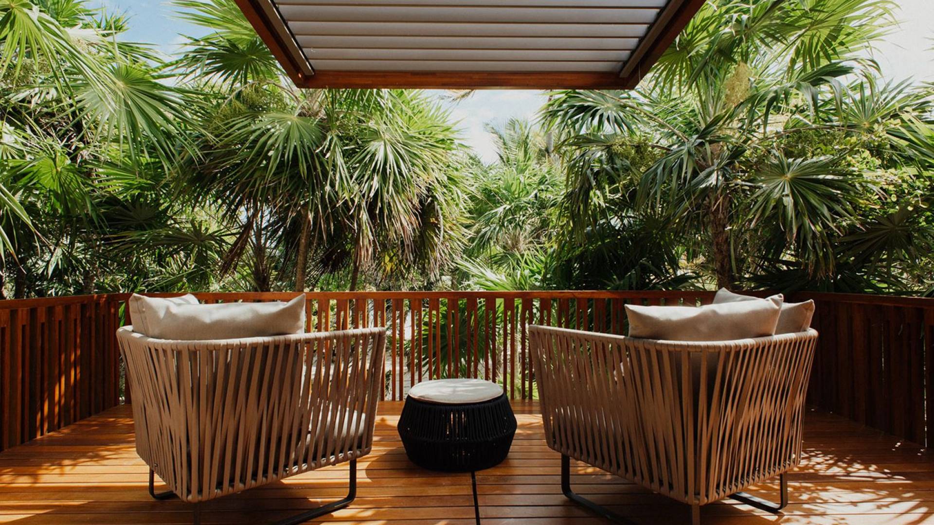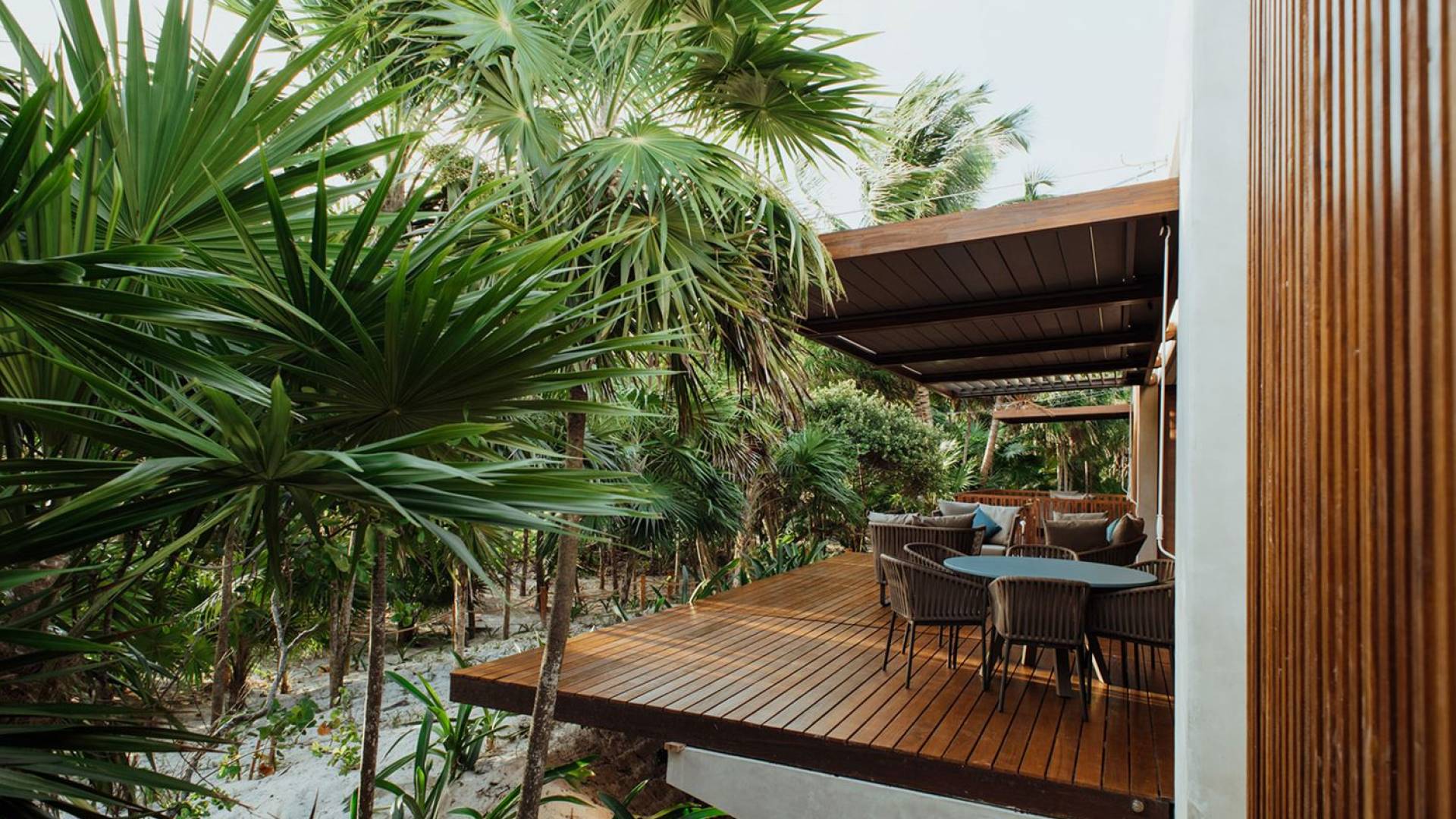 Uh K'aay bietet spektakuläre Ausblicke aus jedem Blickwinkel, aber nichts ist atemberaubender als das Panorama vom Dach. Wählen Sie Ihre Aussicht: das türkis schimmernde Wasser der Karibik; das üppige, lebendige Grün des Dschungels; das schlammige Blau der Mangrovenlagune oder sogar die hellen Sterne am ebenholzfarbenen Nachthimmel.