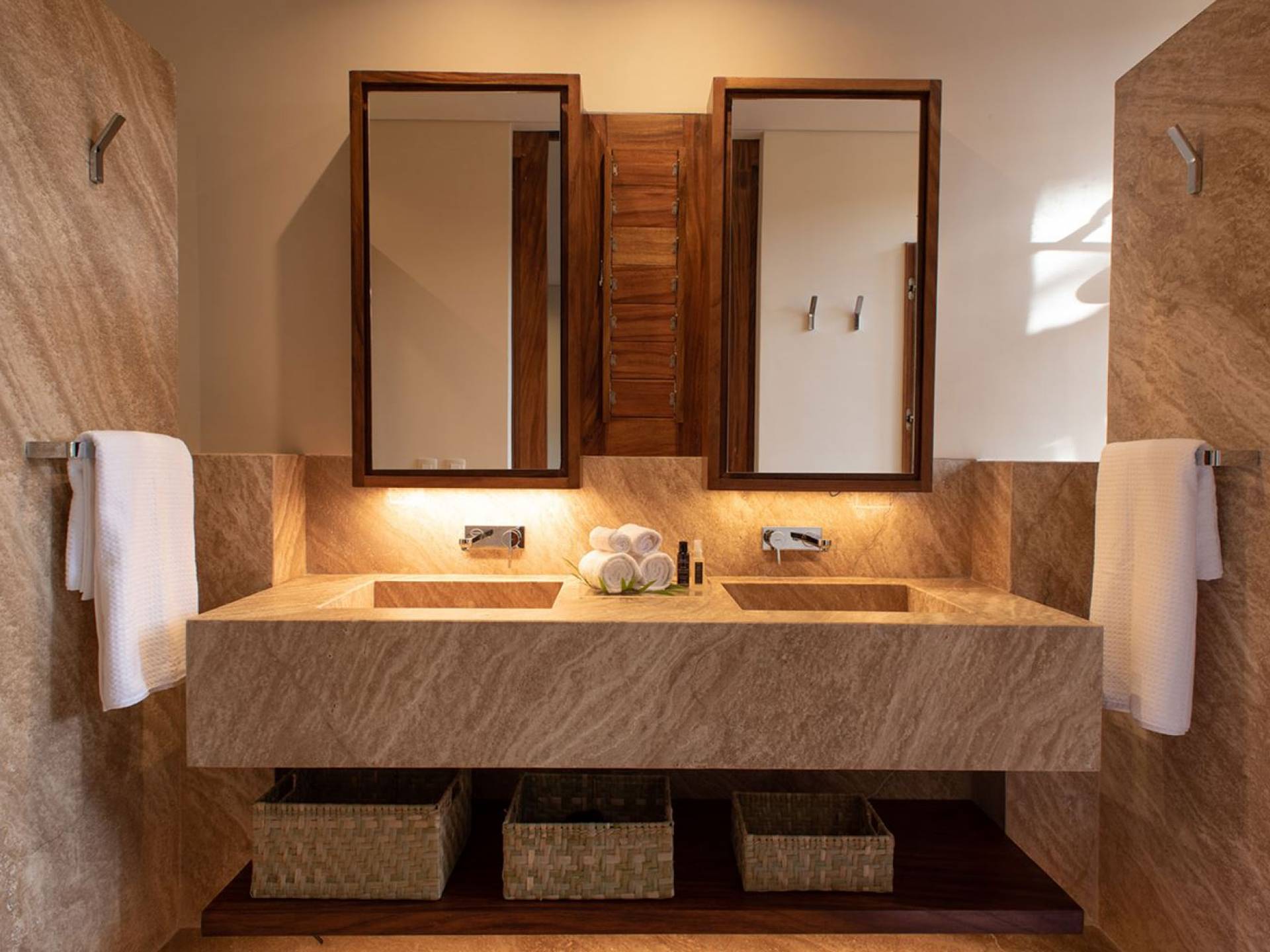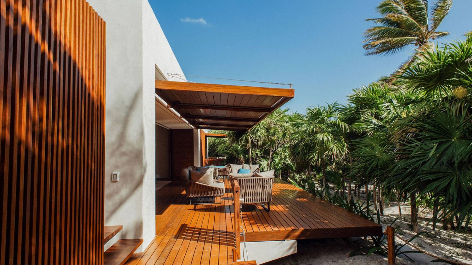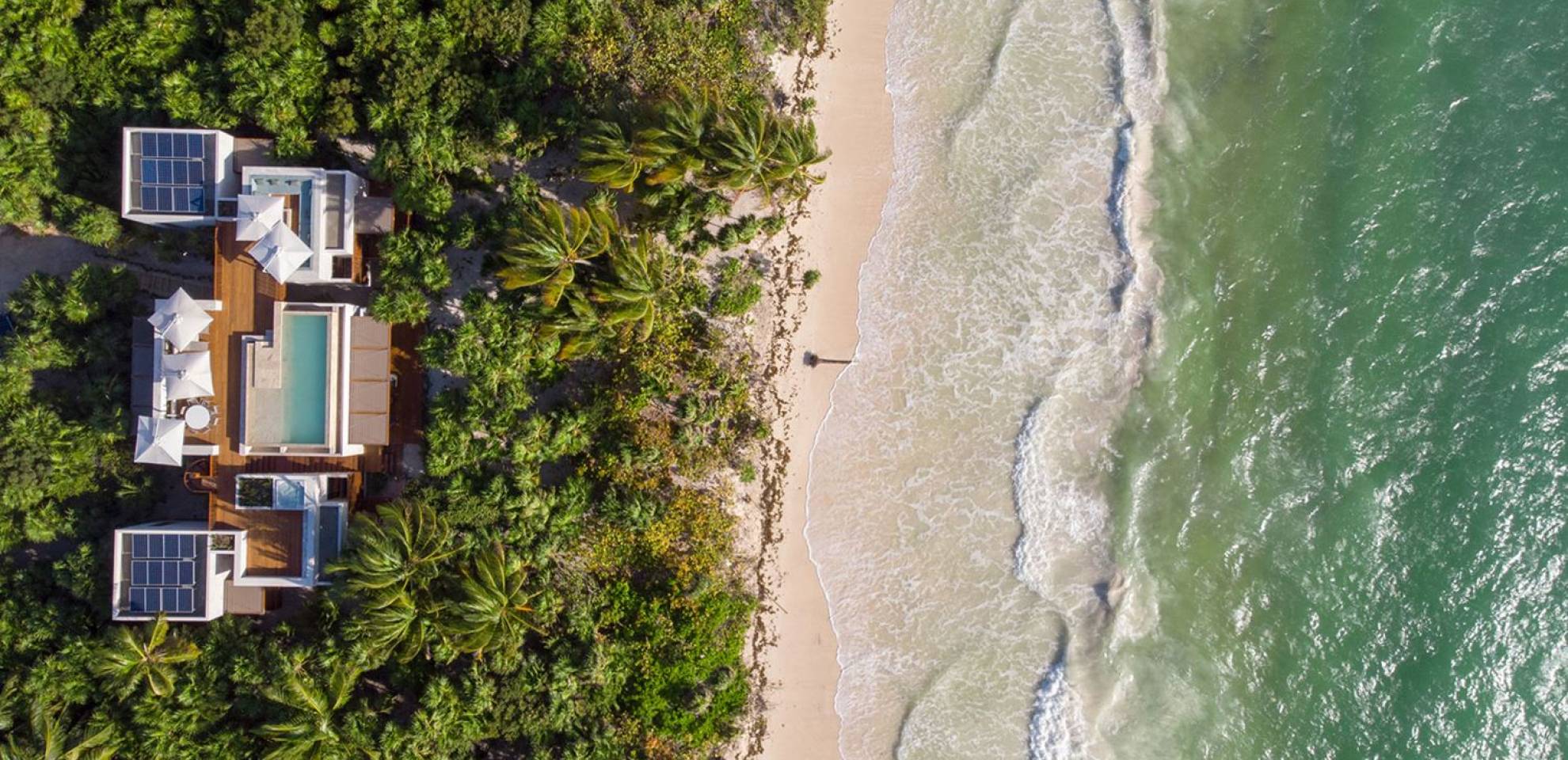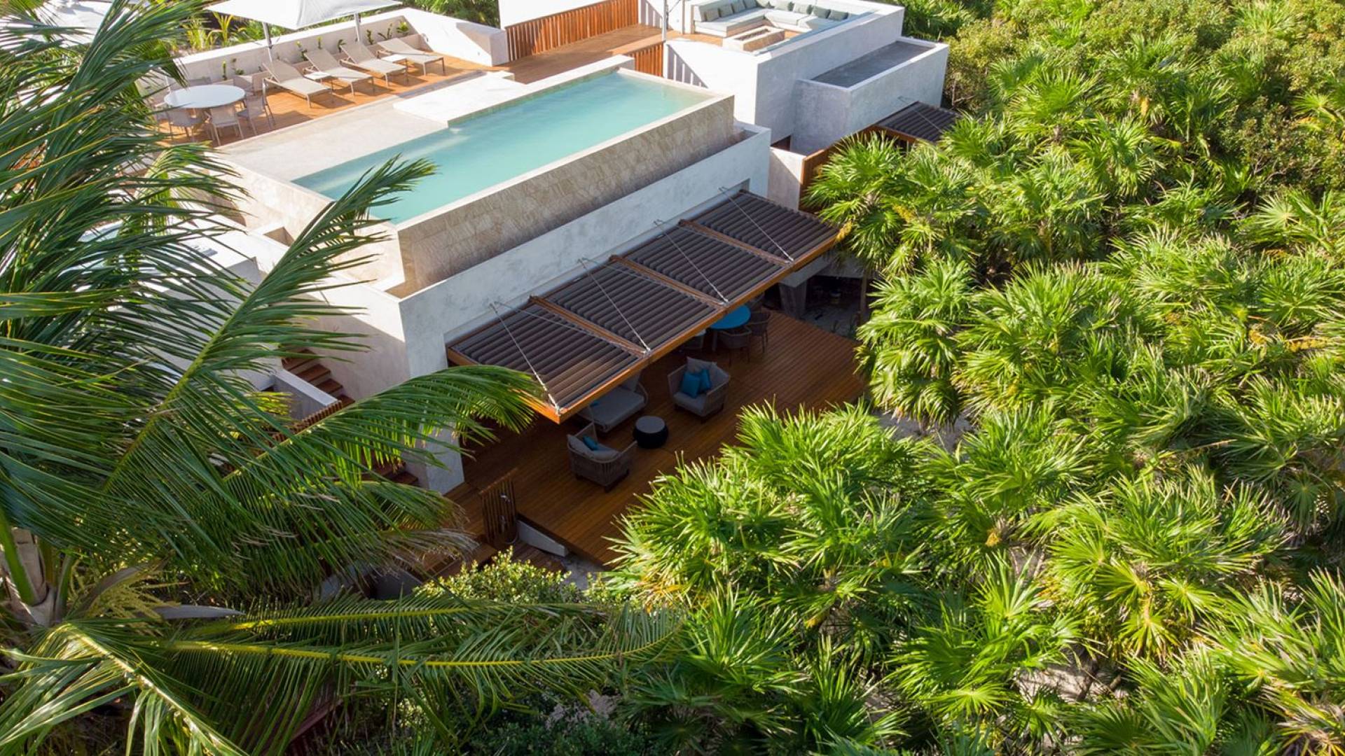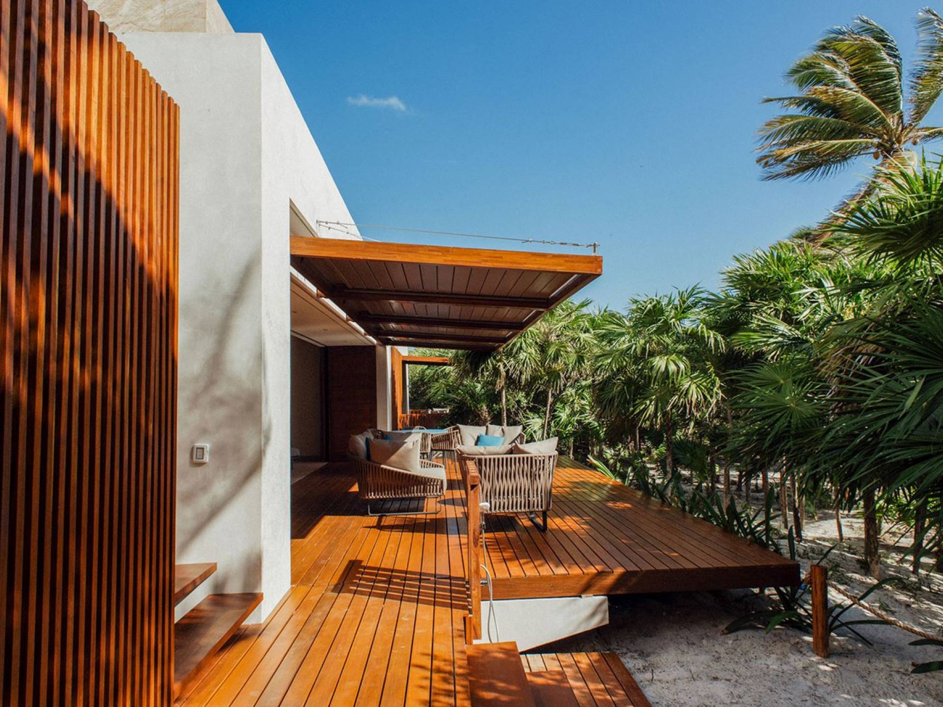 Villa Uh K'aay Tulum ist eine Luxusvilla mit 4 Schlafzimmern und einem privaten Pool. Ruhe. Luxus. Gelassenheit. Diese Qualitäten verbinden sich sinnlich in Uh K’aay, dem „Haus des singenden Mondes“, an den weißen, feinsandigen Stränden im Biosphärenreservat Sian Ka’an, einem UNESCO-Juwel in der Nähe von Tulum. Uh K’aay liegt in einem unberührten, grünen Dschungel mit einem Privatstrand, dem Meer vor der Tür und keinen Nachbarn und ist eine abgeschiedene Oase in einer Umgebung von seltener natürlicher Schönheit.