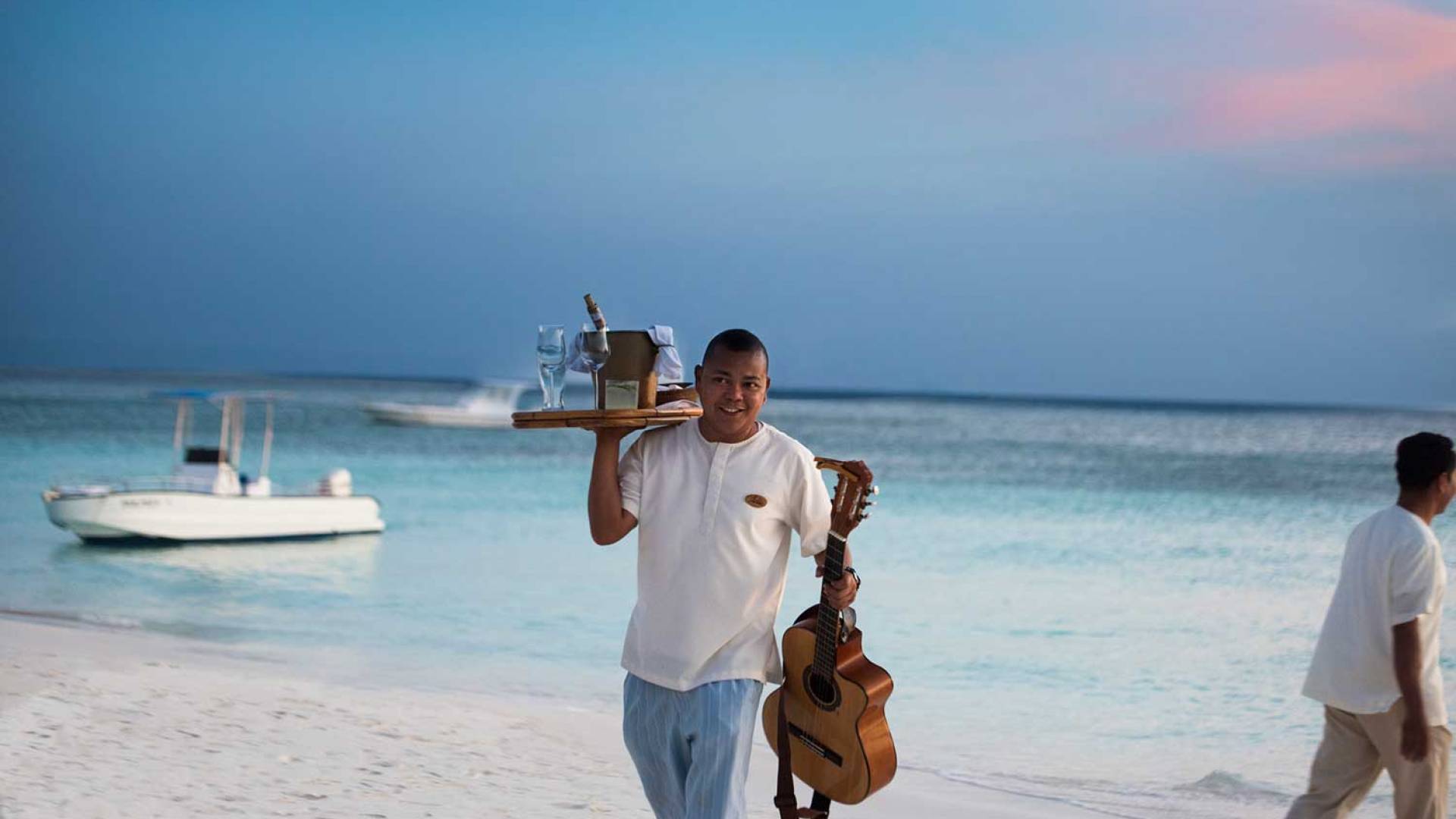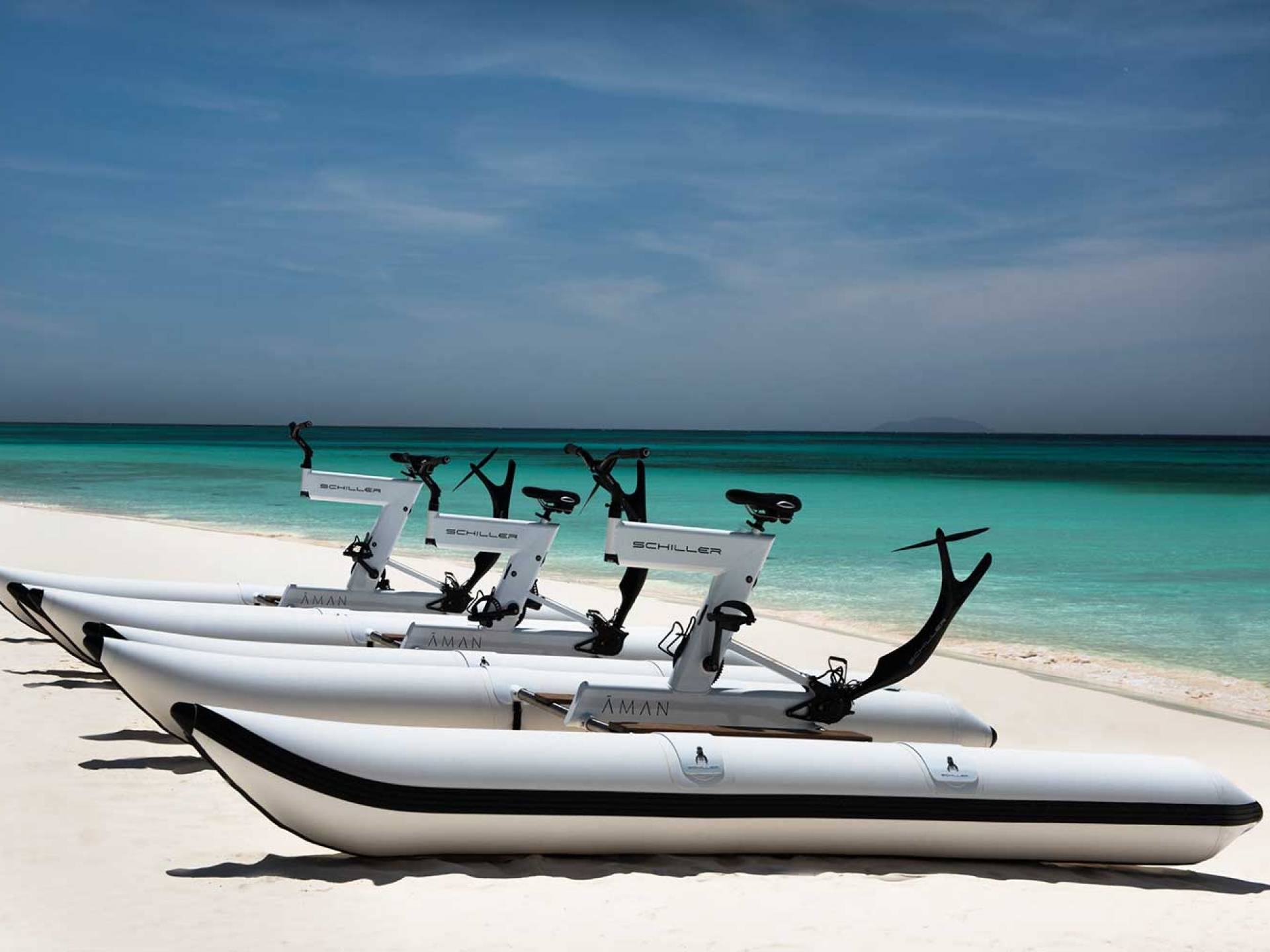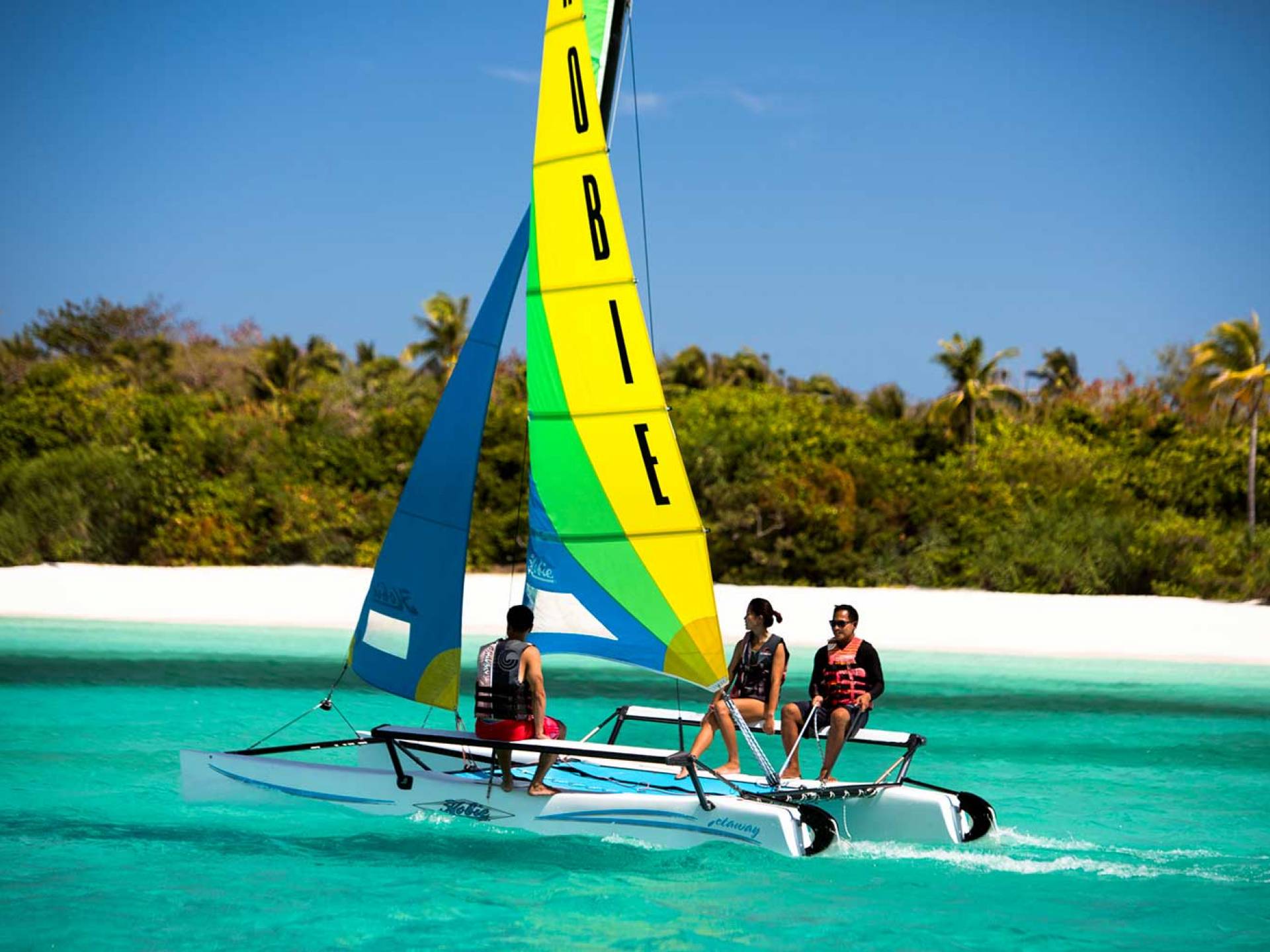 Der Sand in der Nähe des Beach Clubs ist mit Sonnenschirmen und Liegestühlen gesäumt. Alle Mahlzeiten werden im Open-Air-Pavillon und auf dem Deck serviert. In den Sea Sports and Windsurf Huts ist eine Reihe von Wasserfahrzeugen und Windsurfausrüstung für alle Könnerstufen sowie Kajaks und Angelausrüstung erhältlich. Klares Wasser sorgt für hervorragende Sicht und Tauch- und Schnorchelguides können Taucher aller Fähigkeiten bedienen, auch komplette Anfänger.