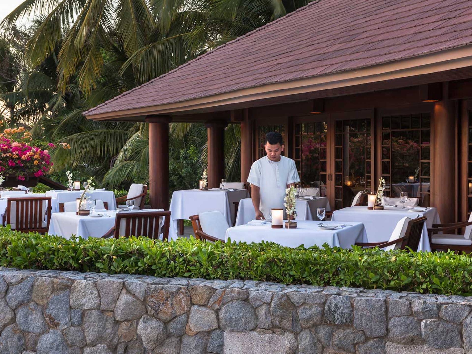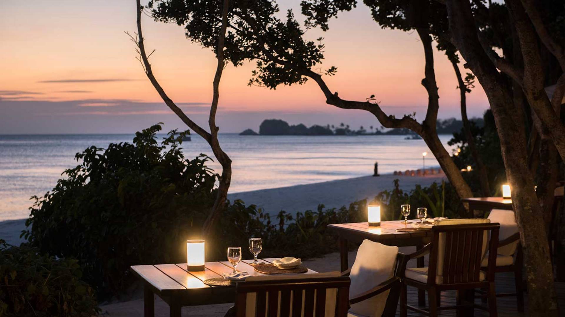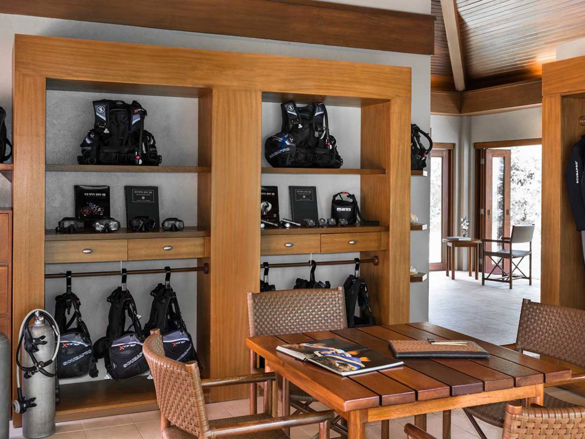 Der Sand in der Nähe des Beach Clubs ist mit Sonnenschirmen und Liegestühlen gesäumt. Alle Mahlzeiten werden im Open-Air-Pavillon und auf dem Deck serviert. In den Sea Sports and Windsurf Huts ist eine Reihe von Wasserfahrzeugen und Windsurfausrüstung für alle Könnerstufen sowie Kajaks und Angelausrüstung erhältlich. Klares Wasser sorgt für hervorragende Sicht und Tauch- und Schnorchelguides können Taucher aller Fähigkeiten bedienen, auch komplette Anfänger.
