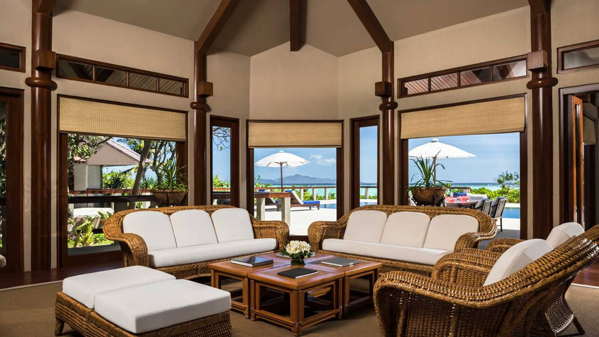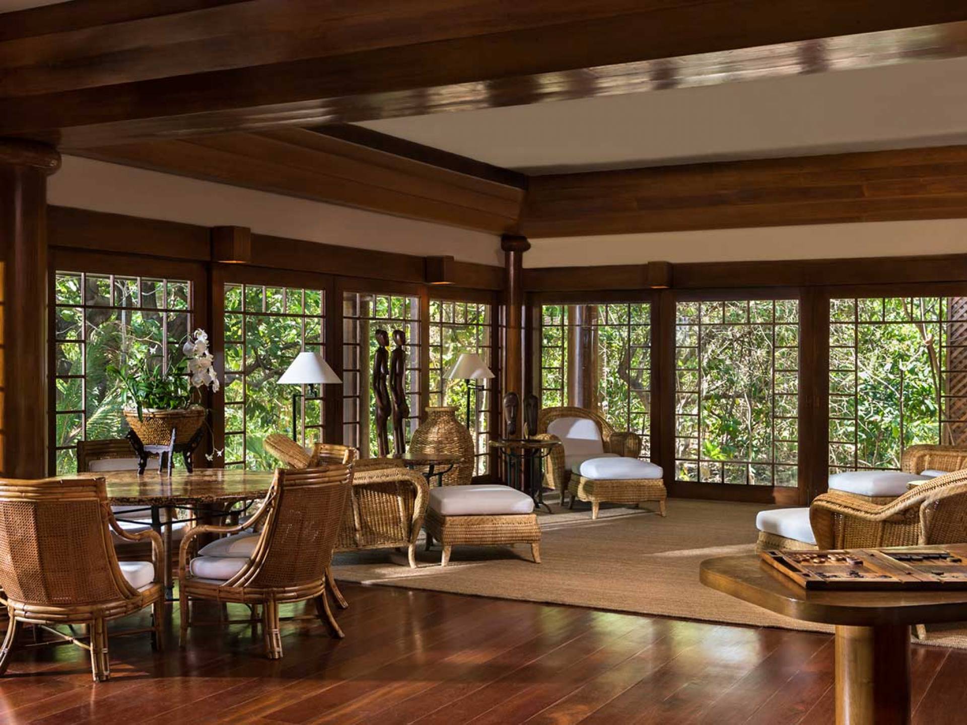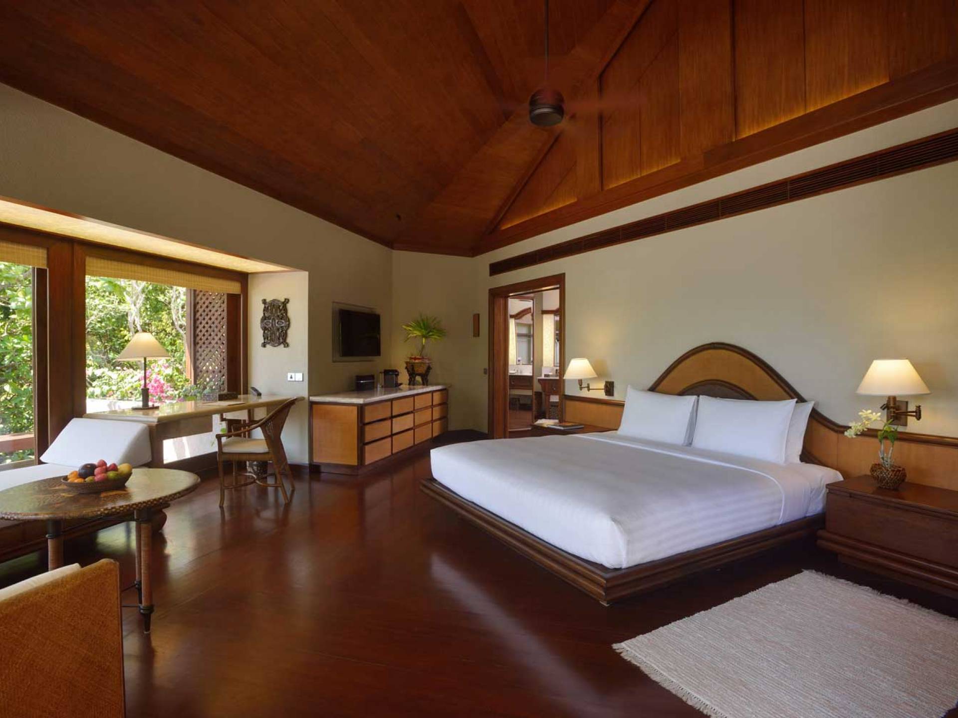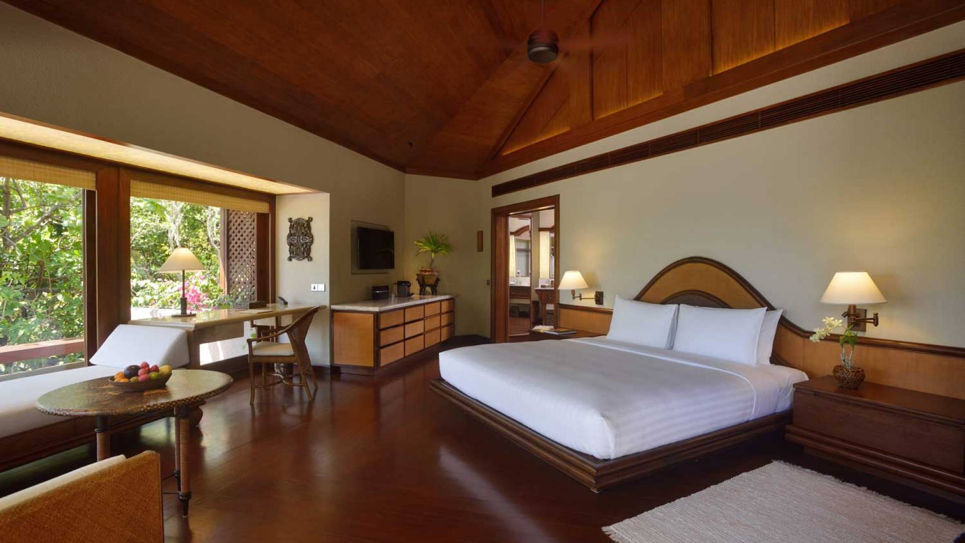Die Villen mit 2 Schlafzimmern von Amanpulo mit Blick auf das leuchtend türkisfarbene Wasser der Küste verfügen über einen großen zentralen Pool und eine klimatisierte Wohnfläche von 215 m².