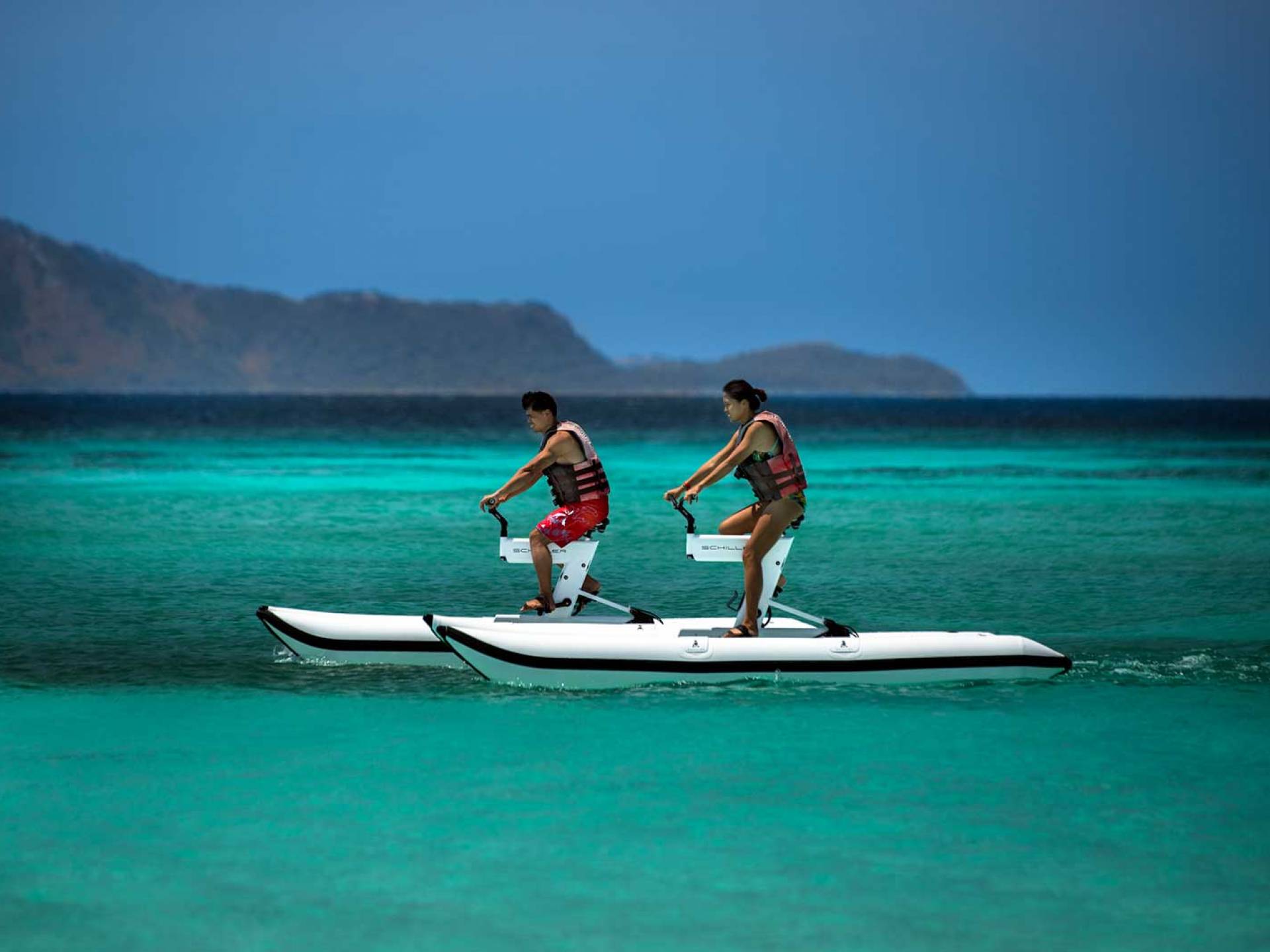 Ob Segeln oder Tauchen, Windsurfen oder einfach nur im Wasser herumtollen, Amanpulo bietet eine Fülle von Wasseraktivitäten an den Stränden rund um die Pamalican-Insel, die sowohl Anfängern als auch Experten gleichermaßen zur Verfügung stehen. An Land werden Tennisplätze und Fahrräder durch Naturwanderungen ergänzt, bei denen die üppigen einheimischen Pflanzen sowie die Dutzende von Vogelarten, die saisonale Häuser auf der Insel bilden, und die Nistplätze der Grünen Meeresschildkröten und Karettschildkröten beobachtet werden. Nachts hilft ein astronomisches Brechungsteleskop, den Sternen nahe zu kommen