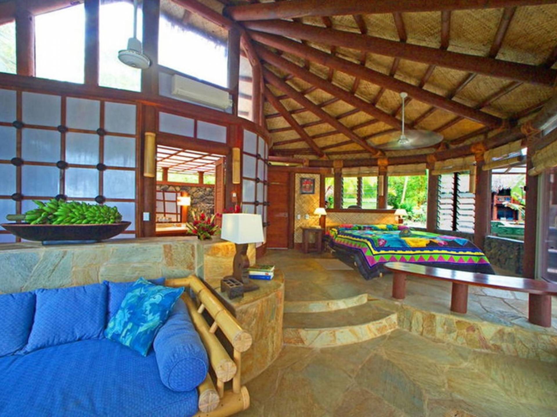 Wenn Sie auf der Suche nach Luxus sind, dann sind die Royal Beach Villas at Coconuts Ihnen sicher. Dies sind die geräumigsten Villen-Suiten in ganz Samoa - wenn nicht sogar im gesamten Südpazifik! Dieser Komplex aus drei Villen besteht aus zwei einstöckigen Villen (Villa Pule und Villa Ali'i), die eine riesige, zweistöckige zentrale Villa (Villa Matai) flankieren. Alle drei Villen sind architektonisch einzigartig mit Außenwänden des Wohnzimmers und der Schlafzimmer, die vollständig aus großen Holzpfählen und Glas bestehen. Das Split-Level-Design zeigt wirklich die freiliegenden Balkendecken und die 180-Grad-Ansichten. Schöne Quarzit-Steinfliesen und fein gearbeitete Lavagesteinswände runden das Design ab.