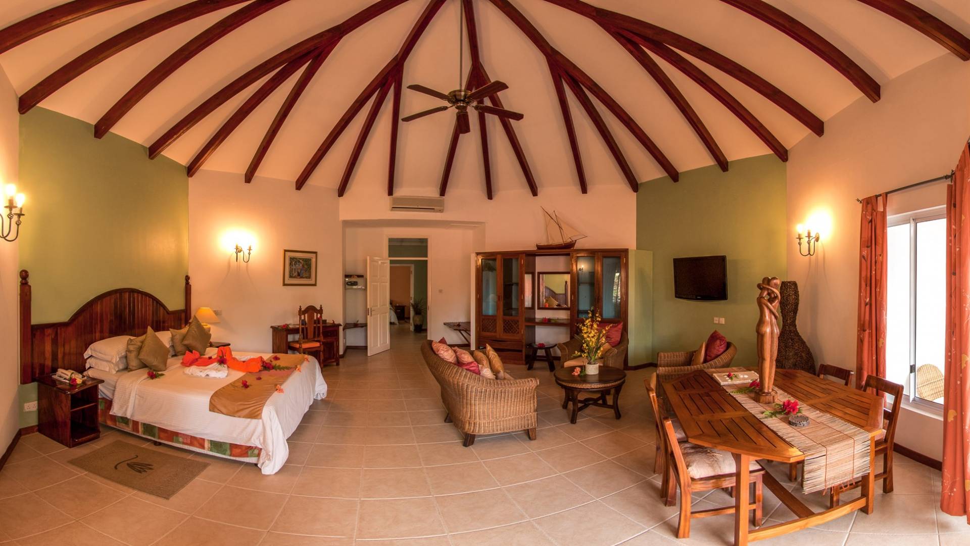 Die Familiensuite im Le Duc De Praslin Seychellen ist Ihr eigenes Zuhause in der Ferne. Ein großes Hauptschlafzimmer und ein separates Schlafzimmer machen es ideal für Familien mit älteren Kindern sowie eine Gruppe enger Freunde. Es ist geschmackvoll eingerichtet und verfügt über ein großes Badezimmer mit zwei separaten Toiletten und eine große Terrasse mit Blick auf unseren schönen Swimmingpool.