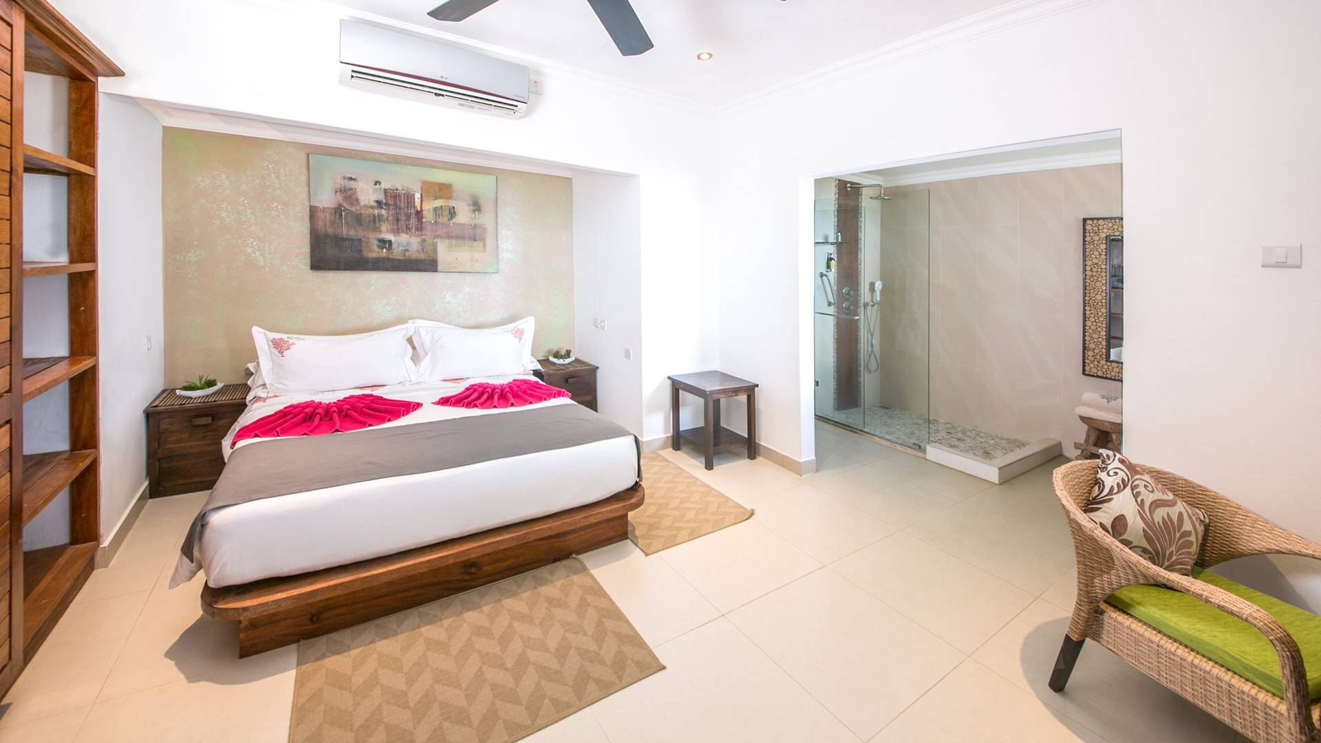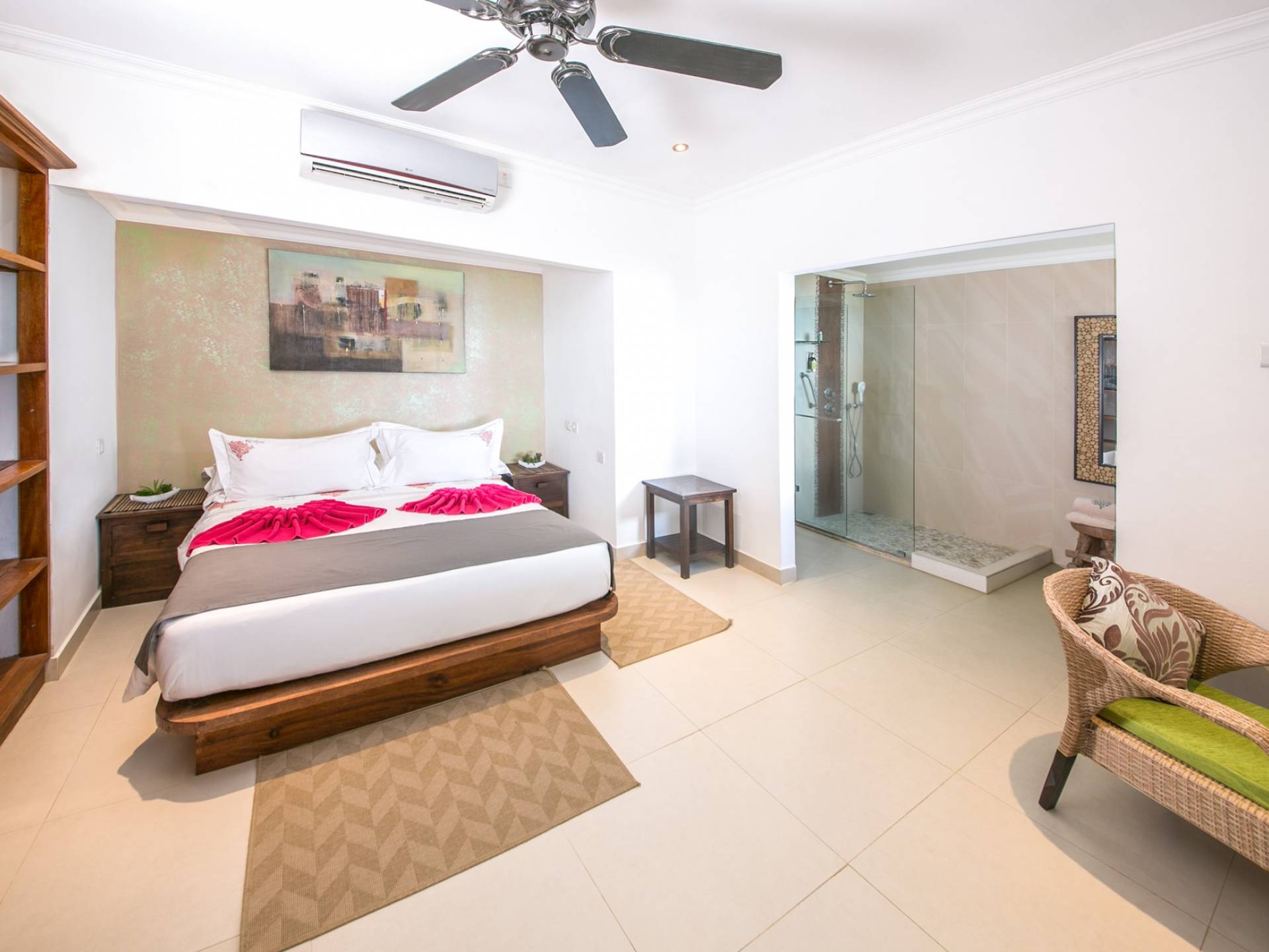 Mit einer Lage, die nicht von dieser Welt ist, kombiniert mit erstklassigen Einrichtungen und Annehmlichkeiten, ist es kein Wunder, dass Le Duc de Praslin und insbesondere Villa 270 Seychelles oft als eine der besten Unterkünfte angesehen wird! Es liegt an Praslins herausragendem Strand Cote D’Or auf den Seychellen. Villa 180 Seychelles (300 m2) bietet 3 Schlafzimmer mit eigenem Bad, eine voll ausgestattete Küche und eine große Außenterrasse mit spektakulärem Meerblick, Zimmersafe, IDD-Telefon, Satellitenfernsehen in der Lounge und 3 Schlafzimmer, kostenloses WLAN, Magna Tauchbecken und Terrassendielen. Die Villa ist modern eingerichtet und bietet Platz für bis zu 6 Personen. Die Küche, das Esszimmer und das Wohnzimmer befinden sich im Erdgeschoss mit überdachter Terrasse, während im Obergeschoss drei Schlafzimmer und eine kleine Sitzecke untergebracht sind.