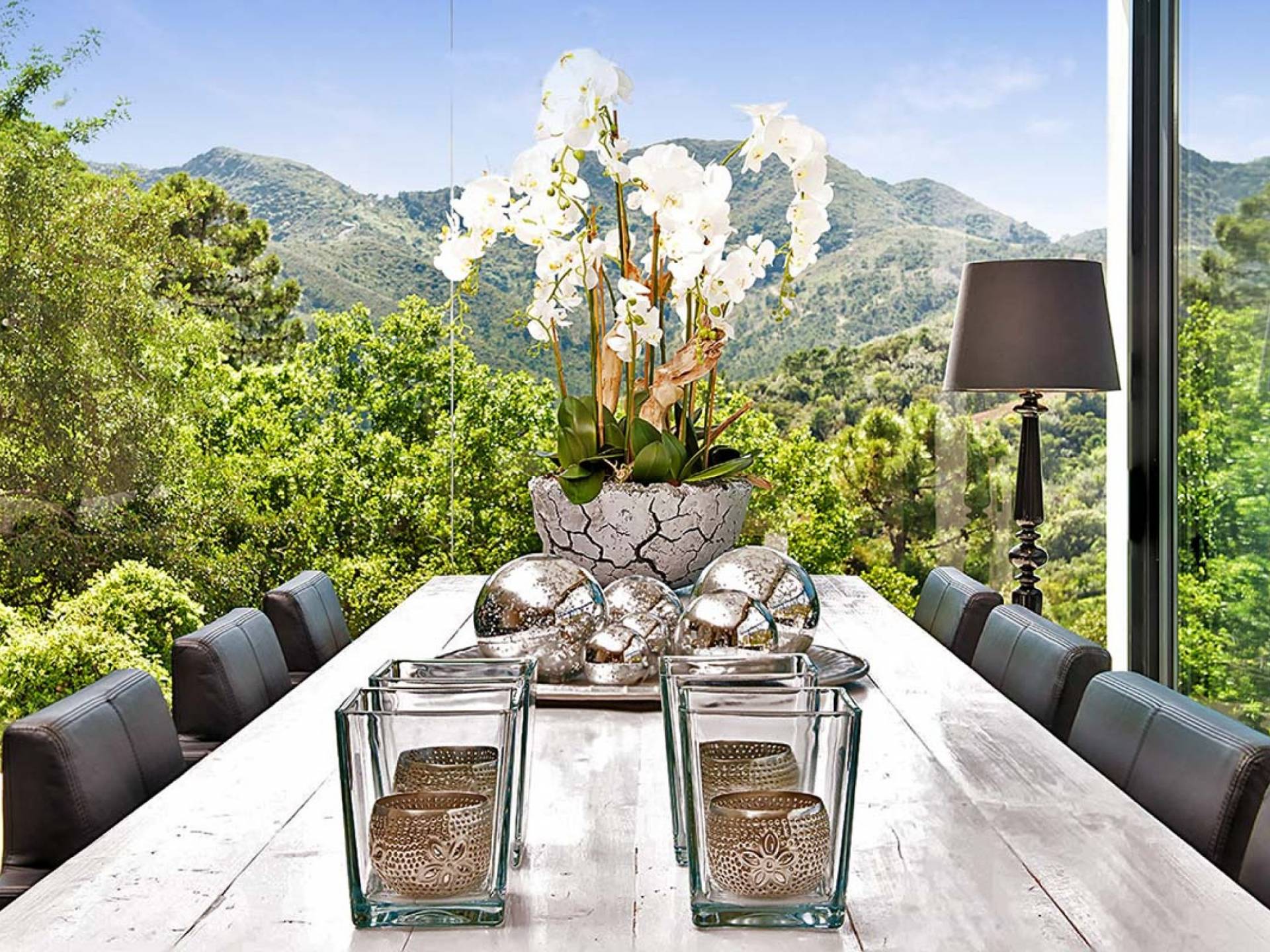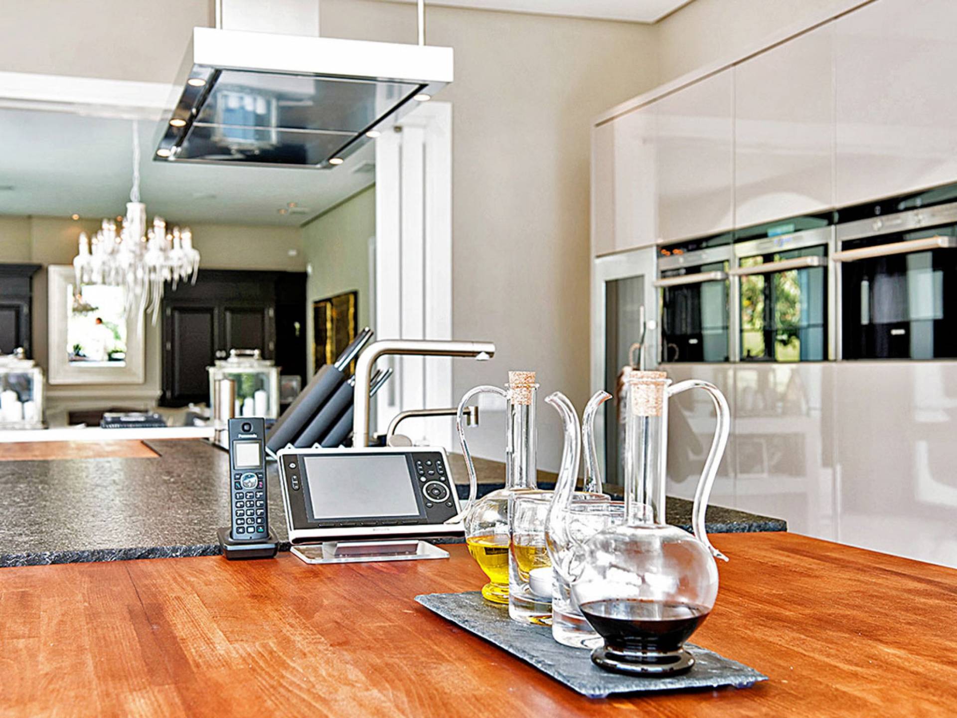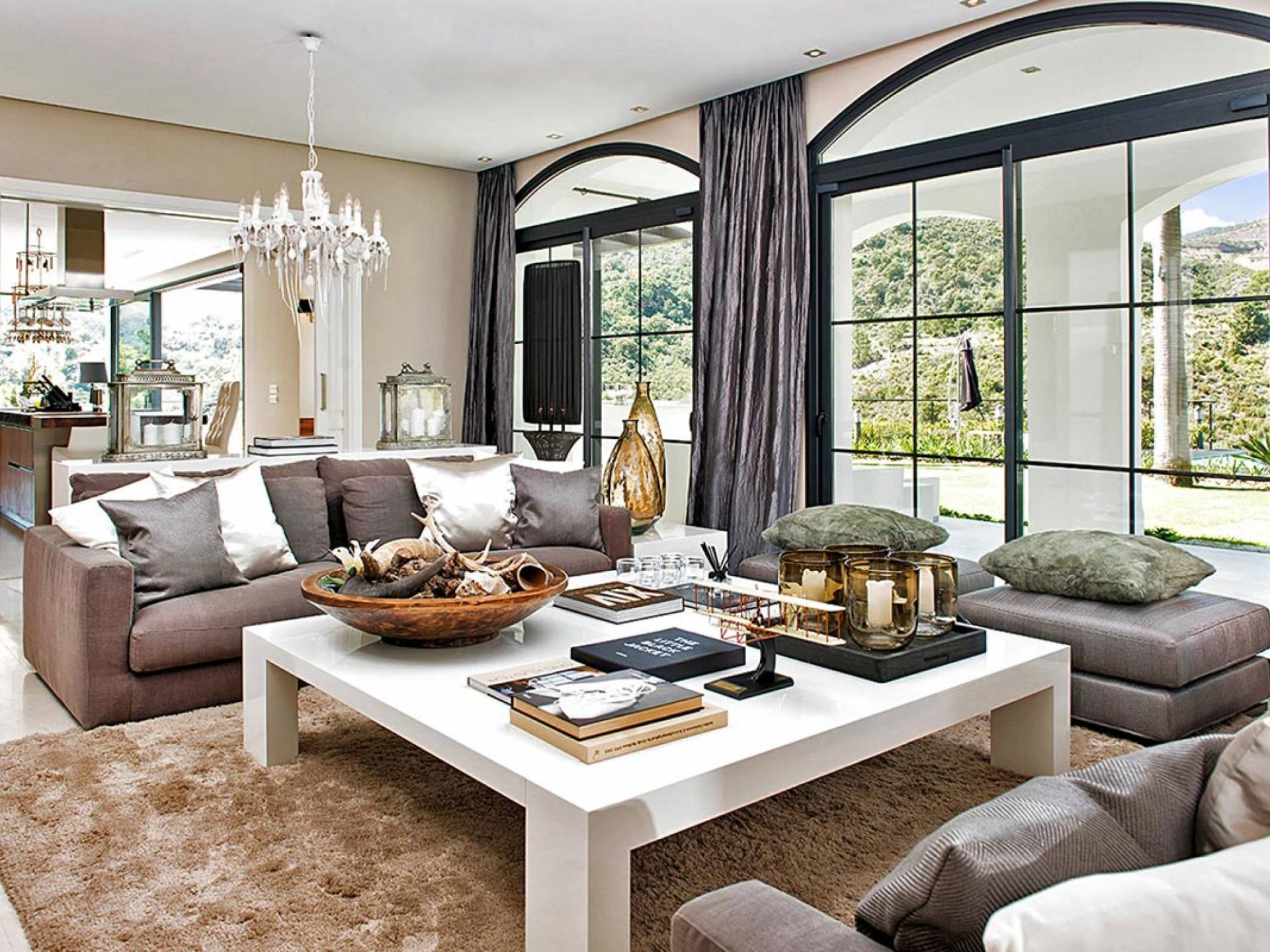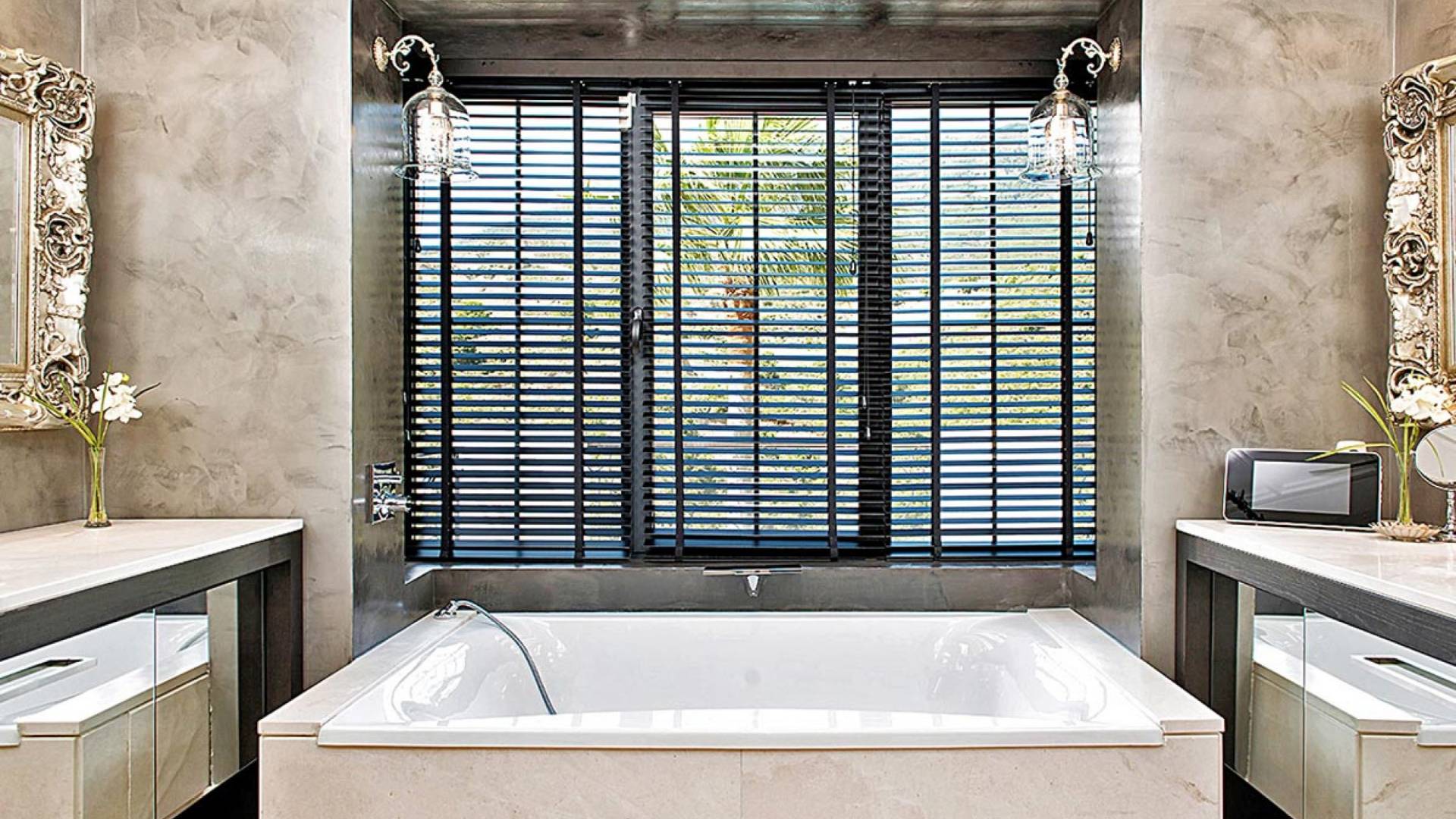 Der Fokus liegt überall auf dezentem Luxus mit hohen Decken, umlaufenden raumhohen Glasfenstern, Marmorbädern und hochwertigen Möbeln. Der Hauptwohnbereich ist der perfekte Ort für Gäste, um sich zu entspannen, Kontakte zu knüpfen, zu unterhalten oder zu speisen, und bietet eine herrliche Aussicht auf die Gärten und den Poolbereich. Eine große und voll ausgestattete moderne Küche öffnet sich direkt zum Essbereich im Freien und durch den Garten.