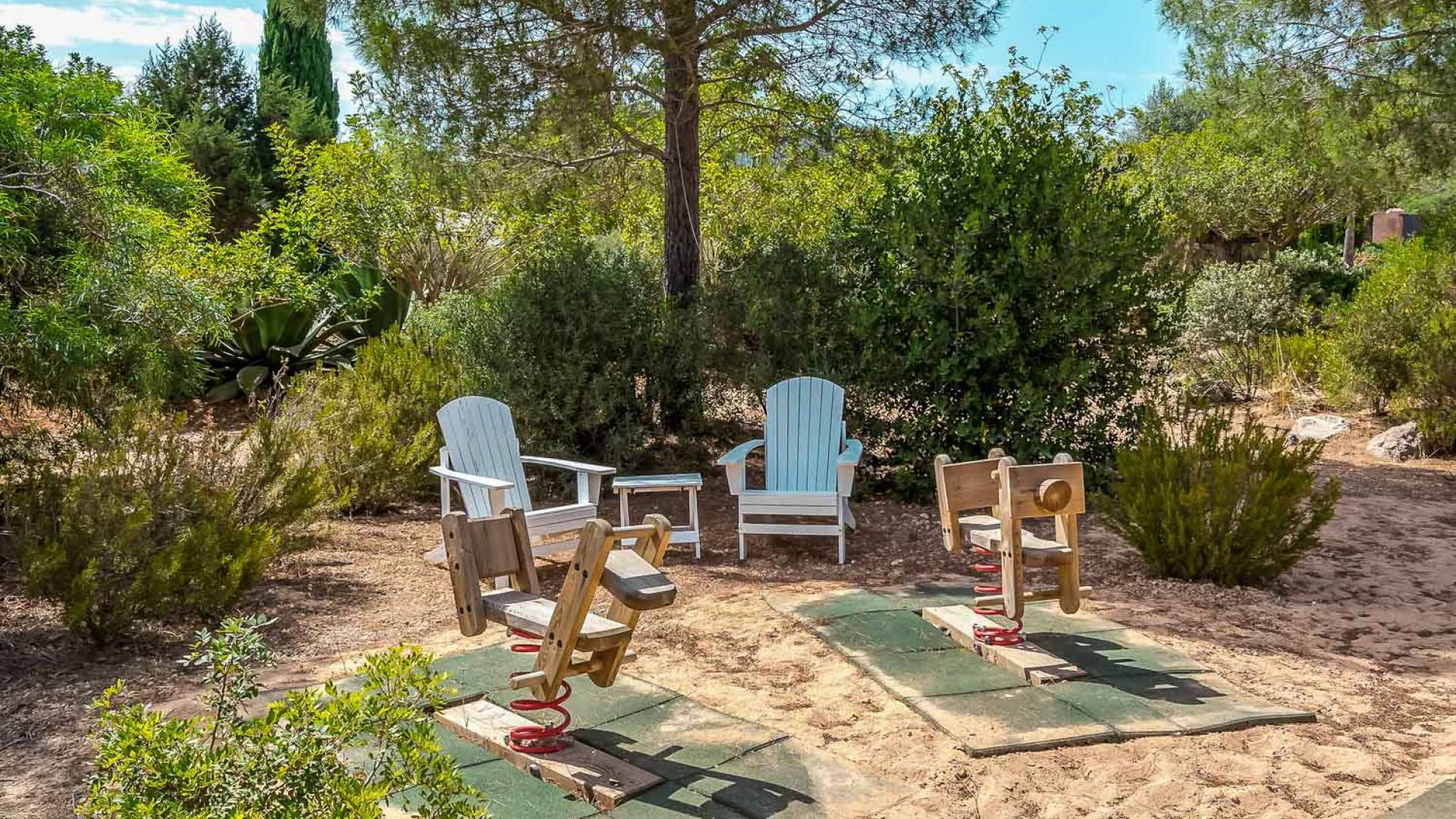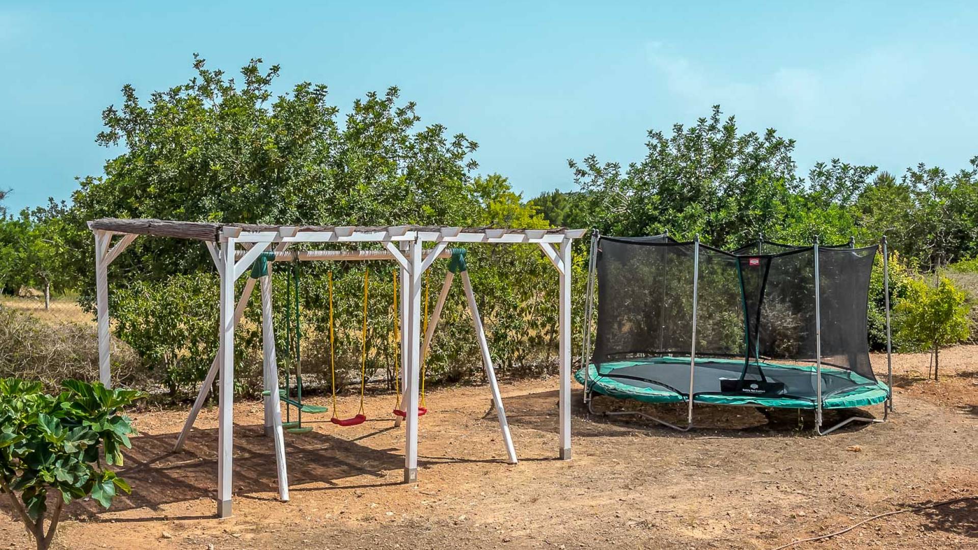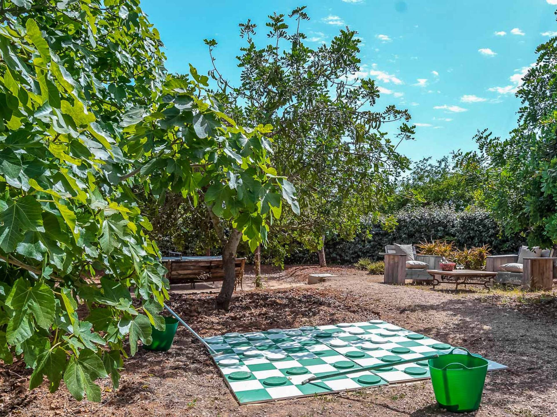 Die Can Felipe Villa Ibiza ist 600 m² groß und liegt auf einem 10.000 m² großen, wunderschön angelegten Grundstück mit Obstbäumen wie Aprikosen, Pfirsichen, Feigen, Mandeln, Granada-Obst und einem kleinen Gemüsegarten. Es gibt einen großen Kinderspielplatz mit 2 Holzspielhäusern, Schaukeln, Rodeln, Piraten- und Drachenspielzone, Herumhüpfecken, Trampolin, Tischtennis, Boccia und übergroßen Außenspielsteinen, die ganze Familie kann zusammen Spaß haben.