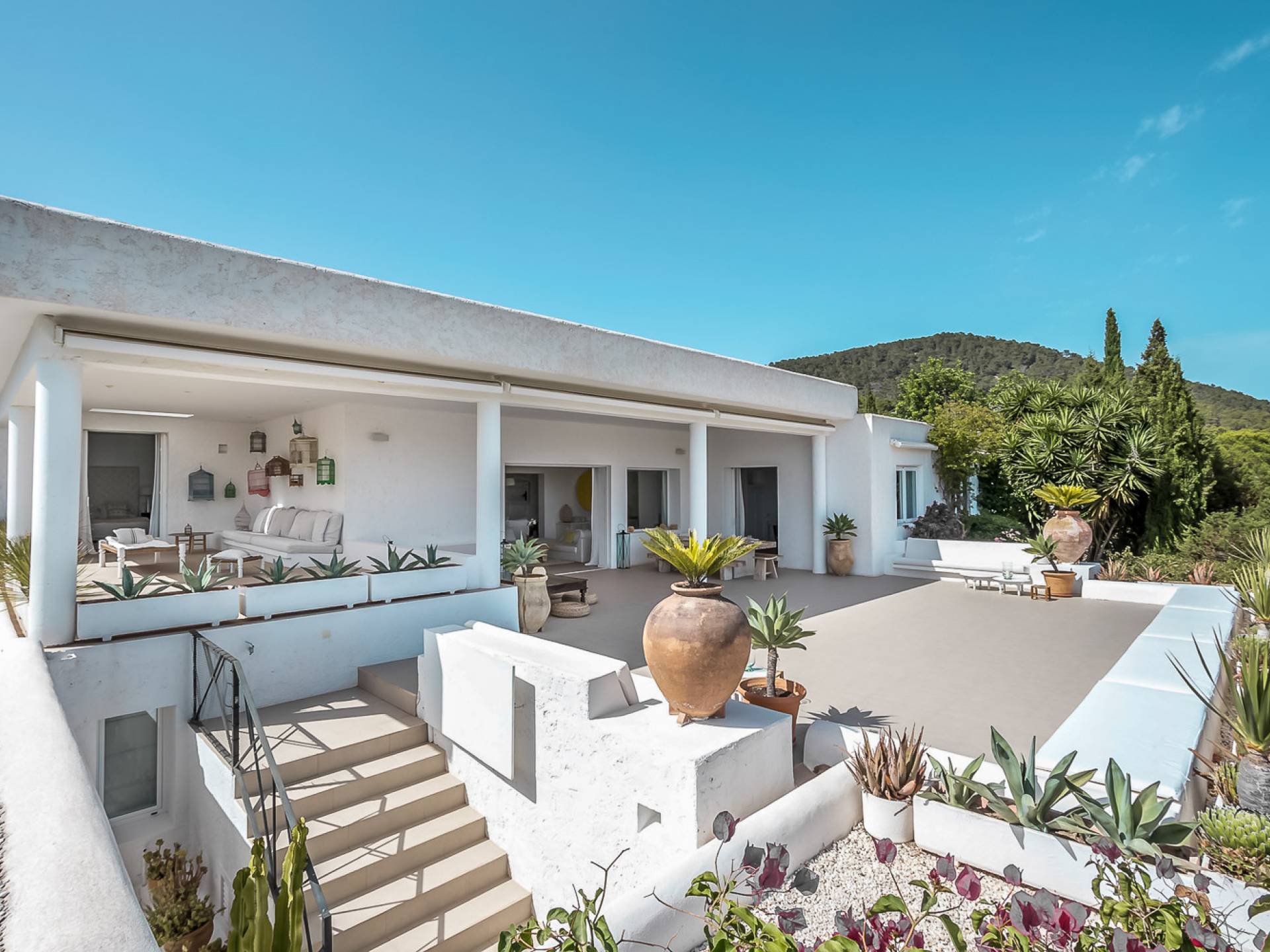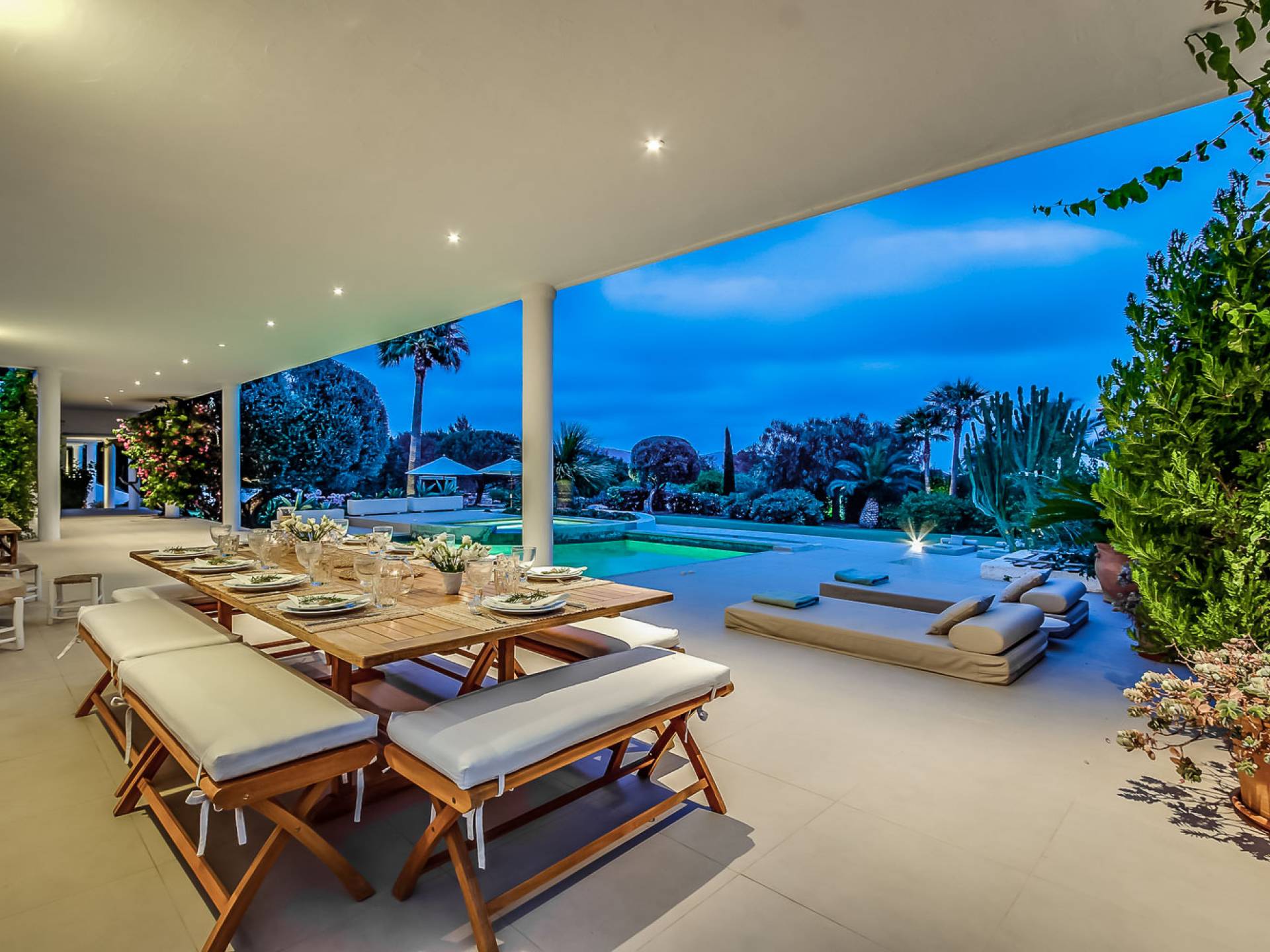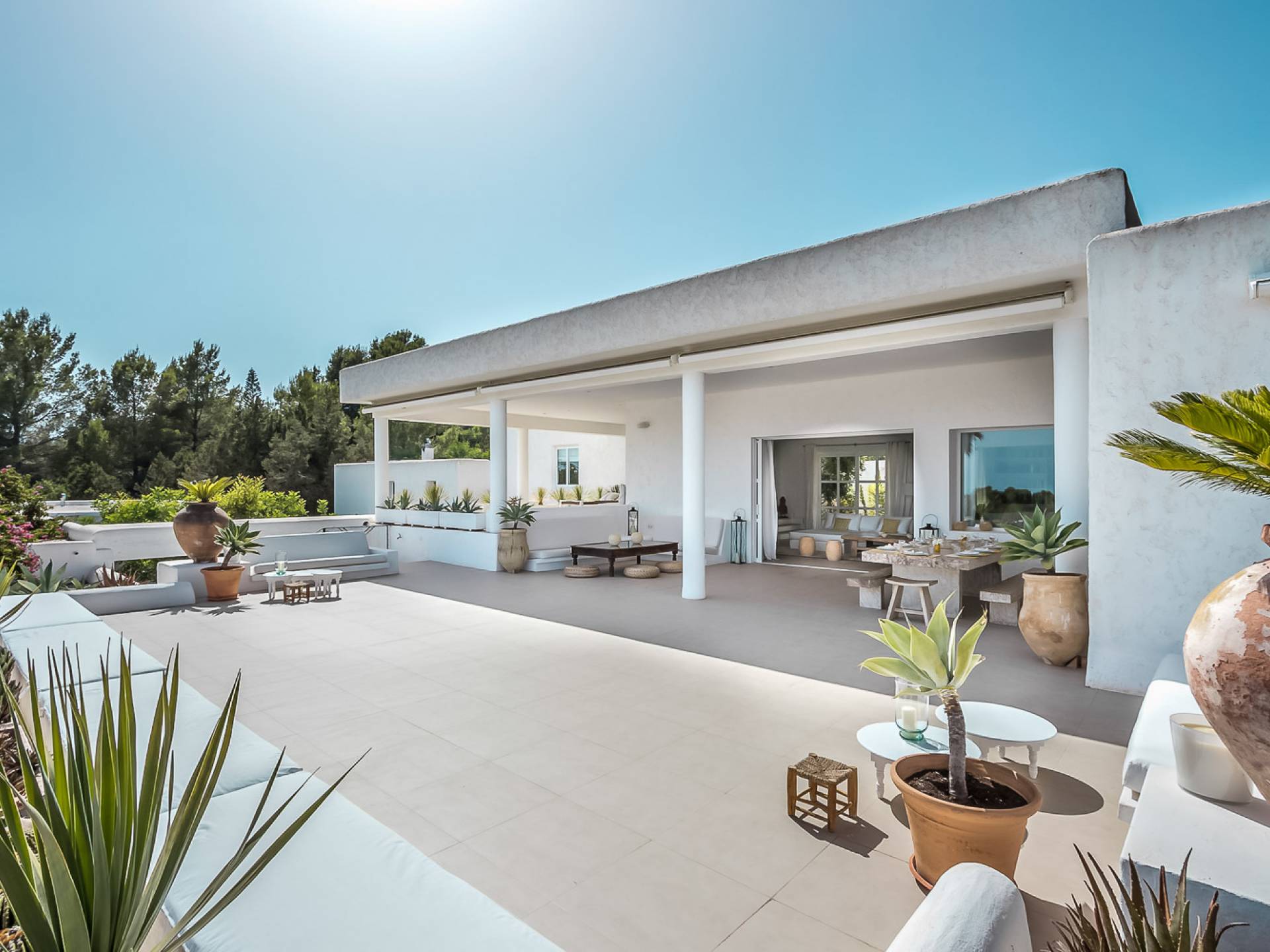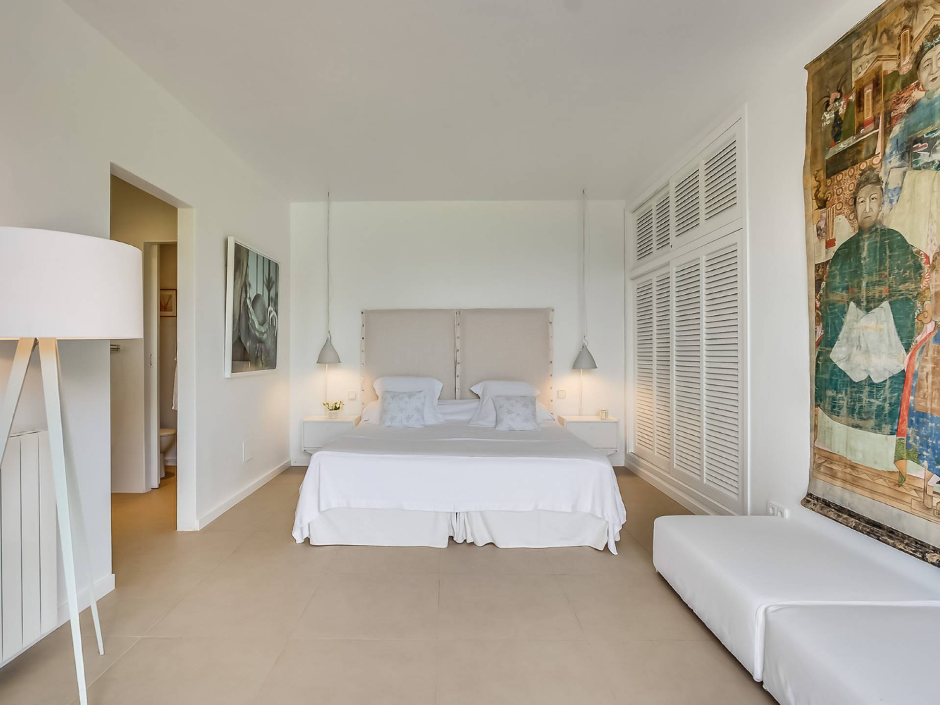 Die Can Felipe Villa Ibiza ist ein atemberaubendes Anwesen in der wunderschönen Gegend zwischen Porroig und Es Cubells. Nur 15 Minuten vom Flughafen Ibiza, 5 Minuten von den unberührten Stränden von Es Torrent, Cala Xarcu, Cala Jondal und 8 Minuten vom Dorf San José entfernt, profitiert die Villa von einer günstigen und geschützten Lage. Diese geräumige Villa mit wohnlichen Akzenten ist der perfekte Rückzugsort für Familien und Freunde. Das Haus profitiert von einem atemberaubenden, unverbauten 180-Grad-Blick über die Landschaft und das glitzernde Mittelmeer mit Formentera in der Ferne.