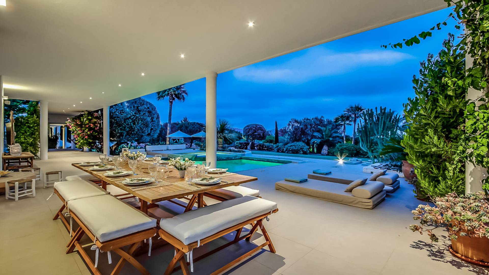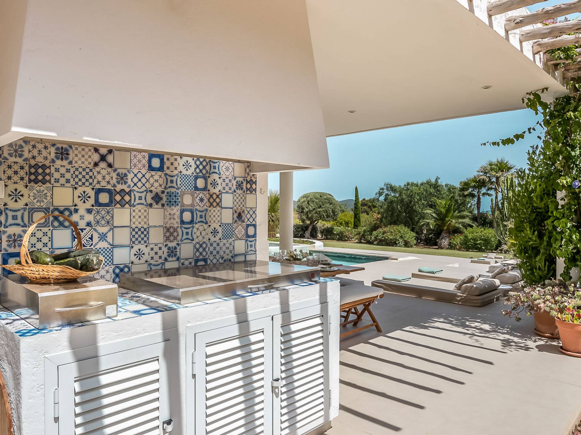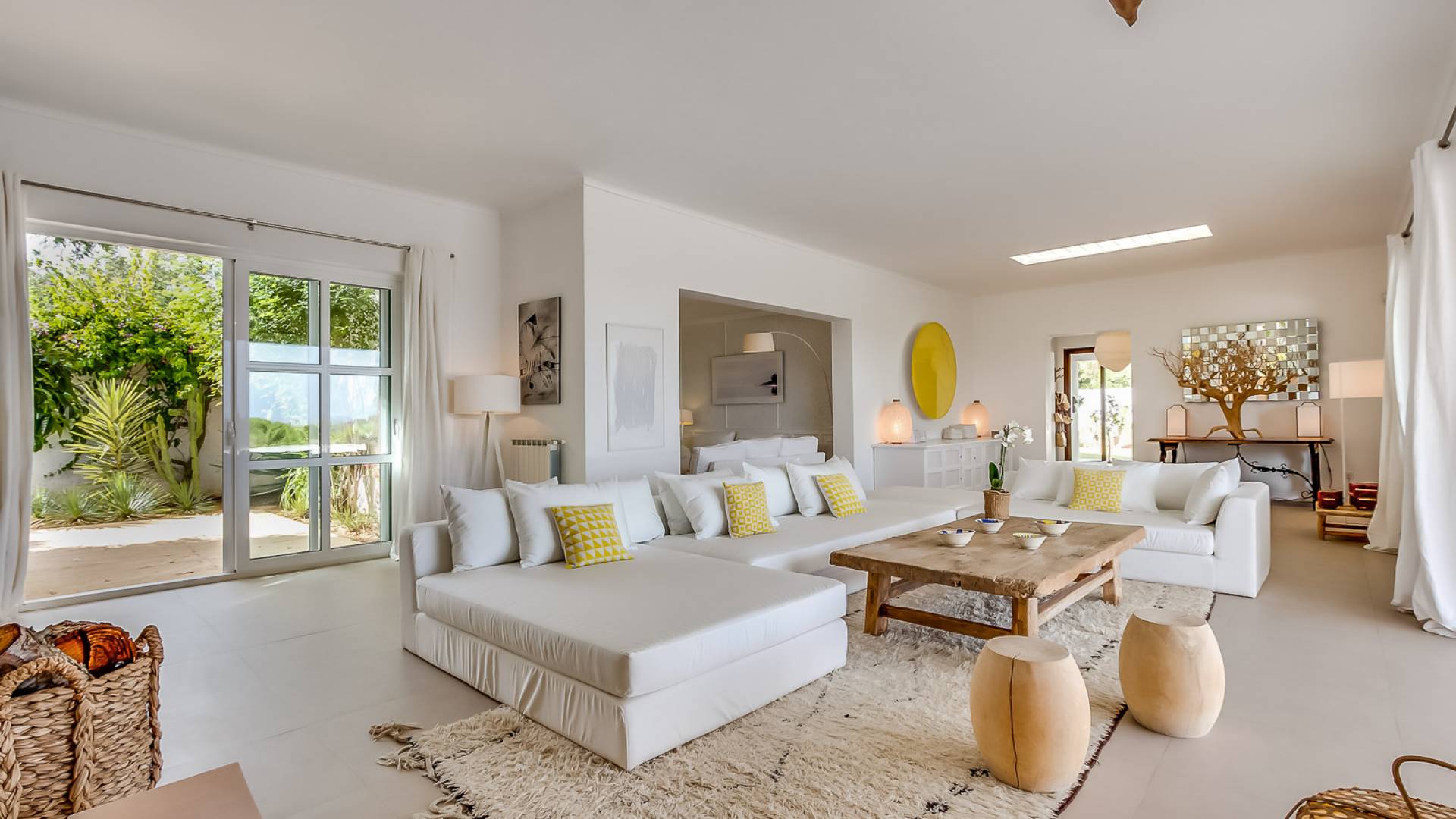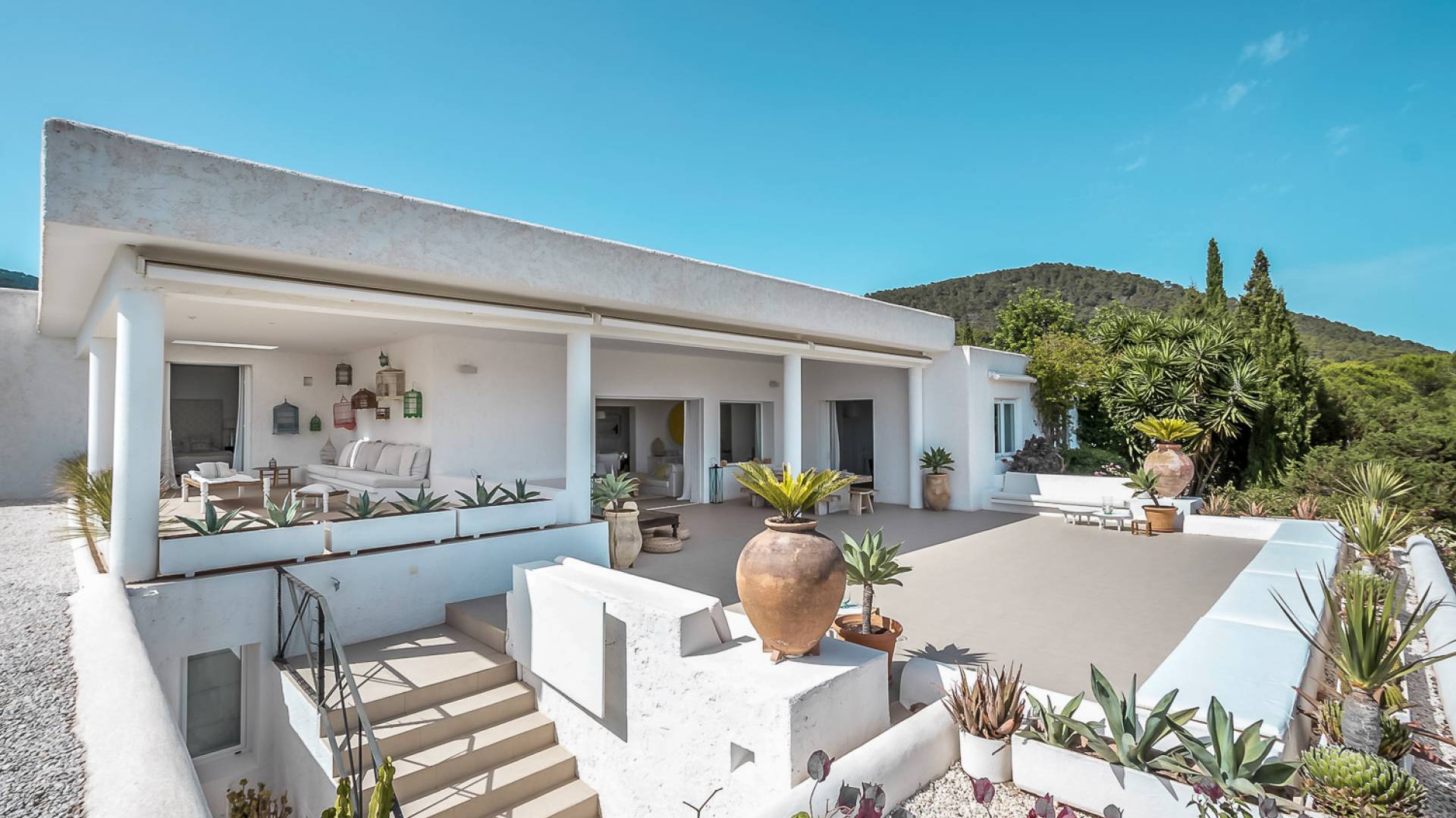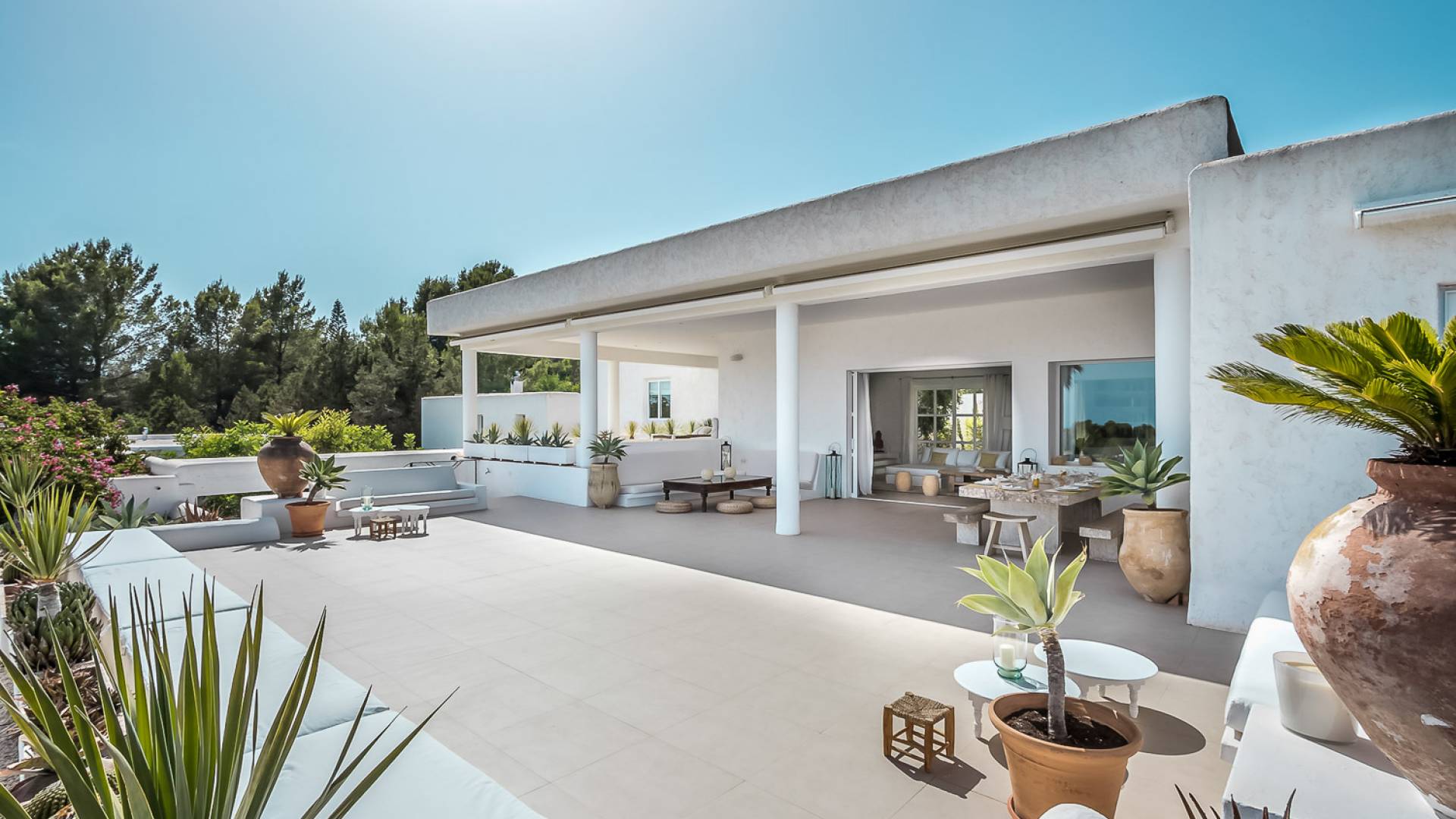 Die Can Felipe Villa Ibiza ist ein atemberaubendes Anwesen in der wunderschönen Gegend zwischen Porroig und Es Cubells. Nur 15 Minuten vom Flughafen Ibiza, 5 Minuten von den unberührten Stränden von Es Torrent, Cala Xarcu, Cala Jondal und 8 Minuten vom Dorf San José entfernt, profitiert die Villa von einer günstigen und geschützten Lage. Diese geräumige Villa mit wohnlichen Akzenten ist der perfekte Rückzugsort für Familien und Freunde. Das Haus profitiert von einem atemberaubenden, unverbauten 180-Grad-Blick über die Landschaft und das glitzernde Mittelmeer mit Formentera in der Ferne.
