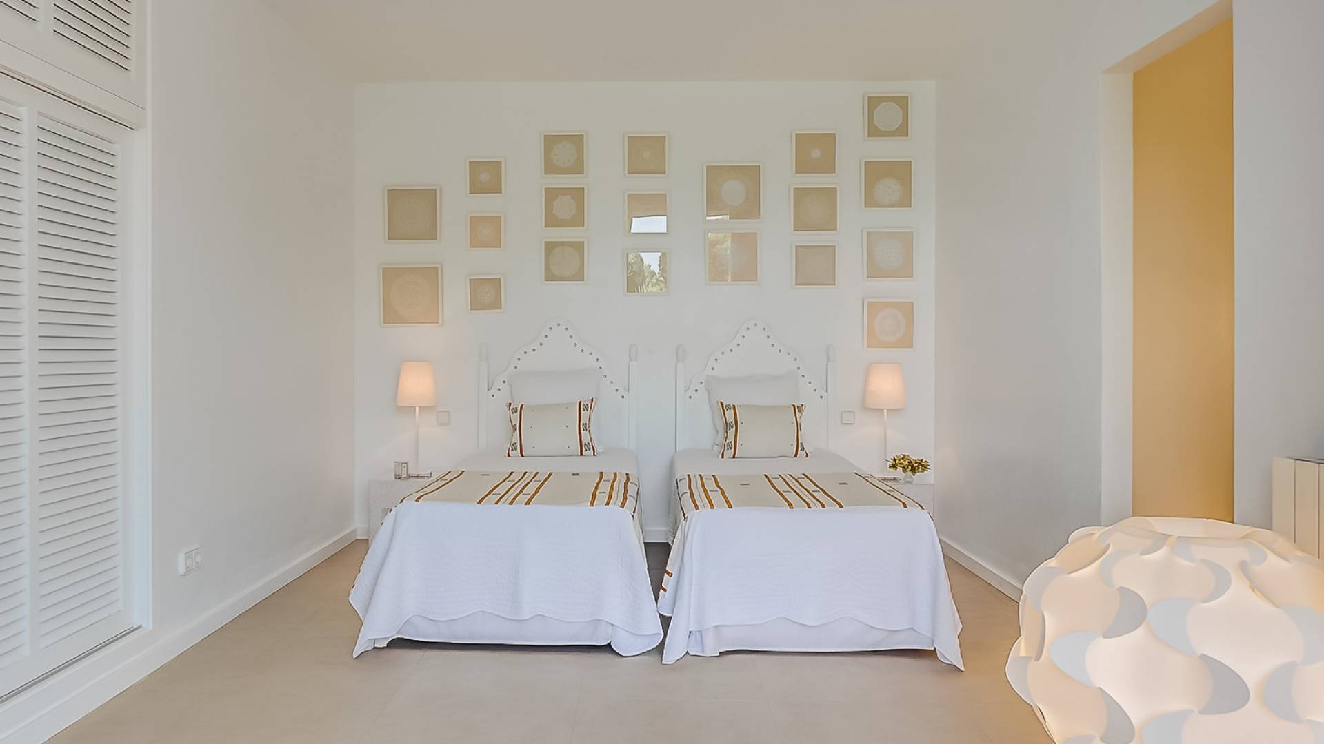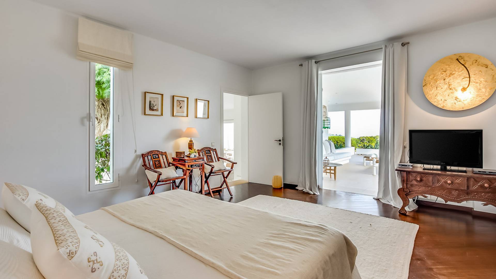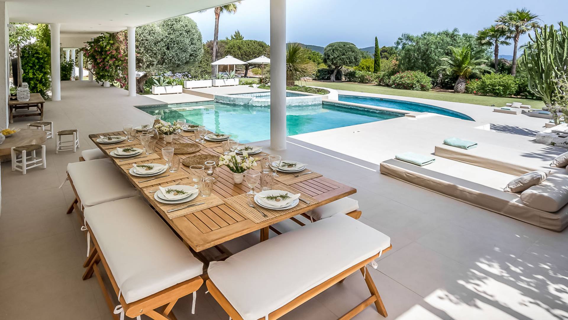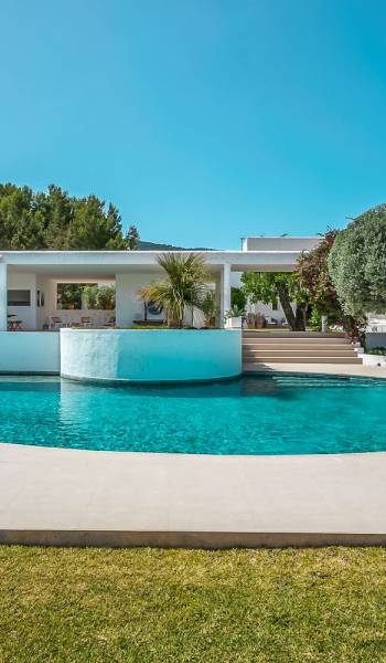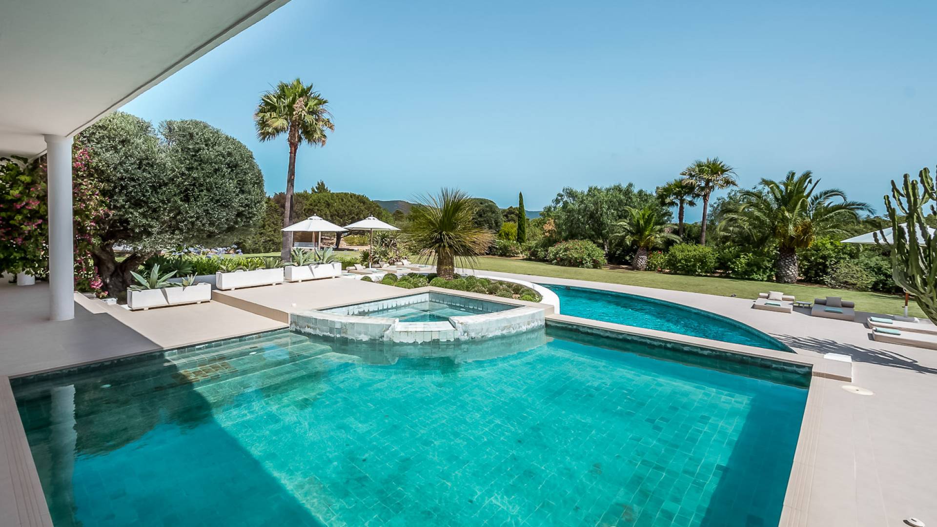 Die Can Felipe Villa Ibiza ist ein atemberaubendes Anwesen in der wunderschönen Gegend zwischen Porroig und Es Cubells. Nur 15 Minuten vom Flughafen Ibiza, 5 Minuten von den unberührten Stränden von Es Torrent, Cala Xarcu, Cala Jondal und 8 Minuten vom Dorf San José entfernt, profitiert die Villa von einer günstigen und geschützten Lage. Diese geräumige Villa mit wohnlichen Akzenten ist der perfekte Rückzugsort für Familien und Freunde. Das Haus profitiert von einem atemberaubenden, unverbauten 180-Grad-Blick über die Landschaft und das glitzernde Mittelmeer mit Formentera in der Ferne.
