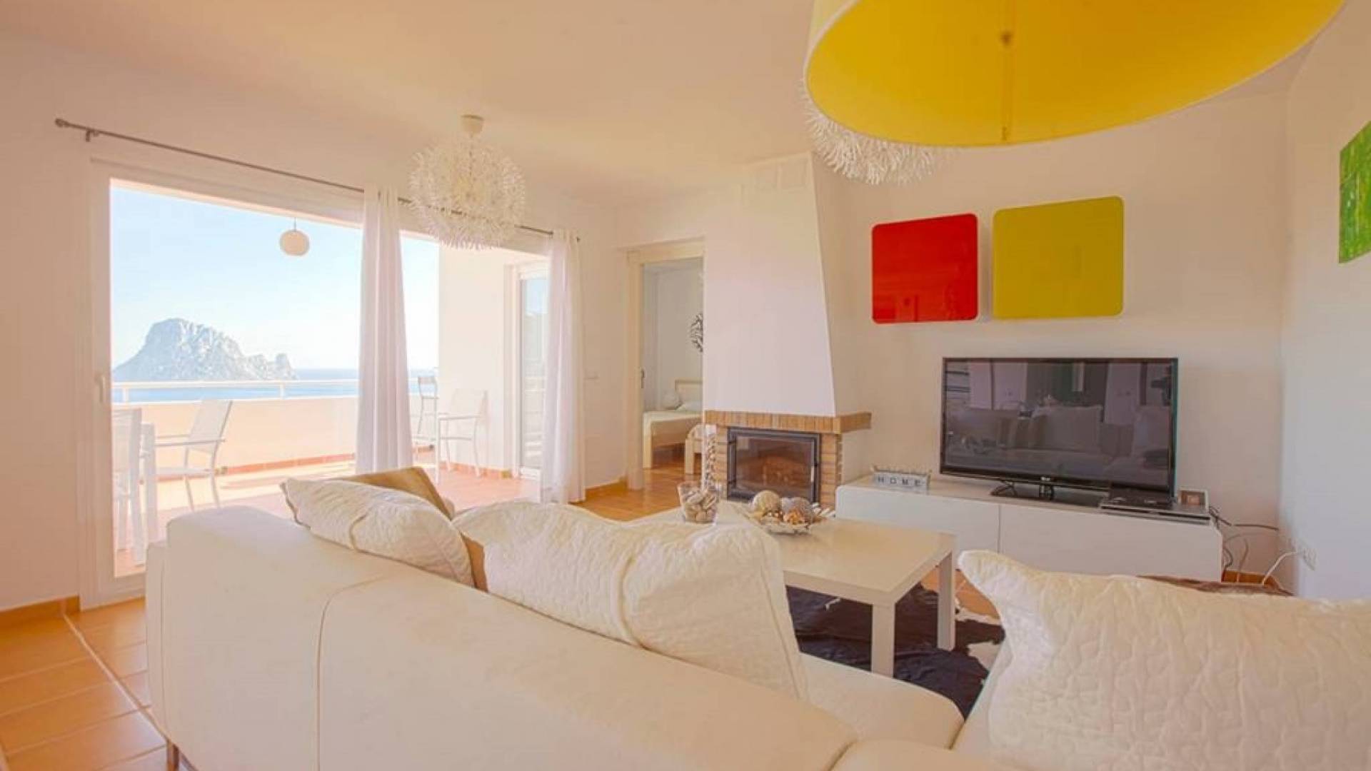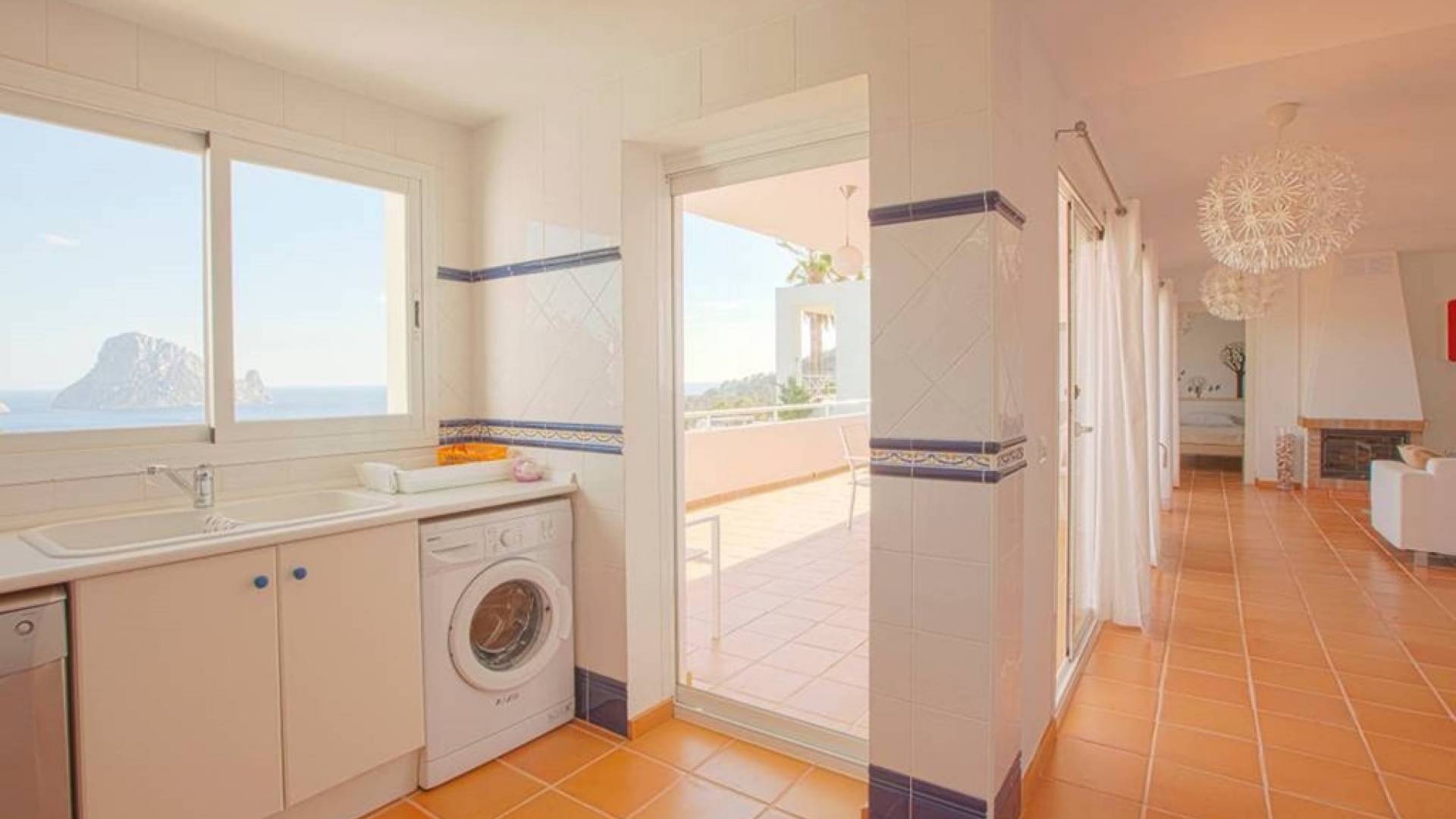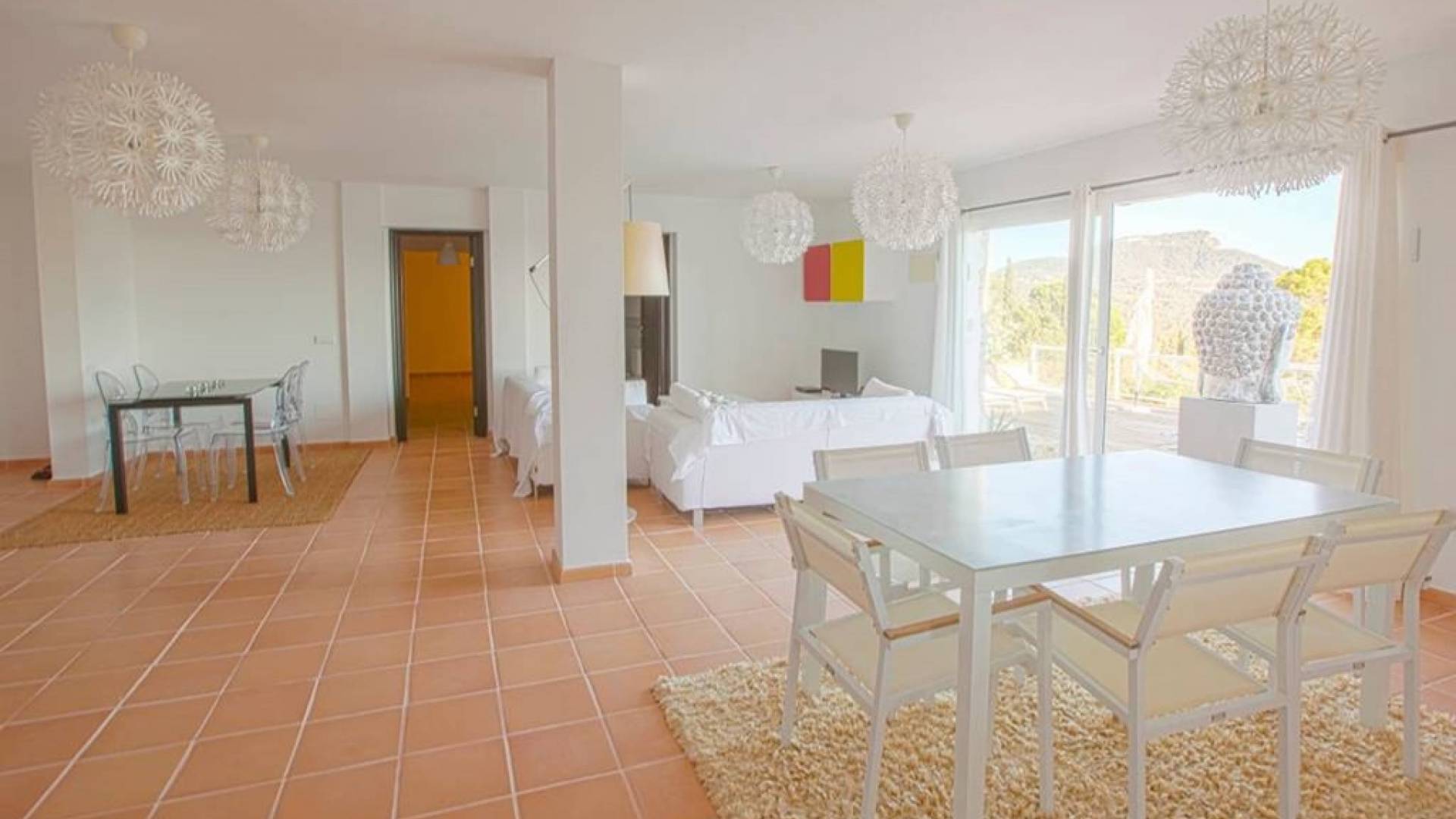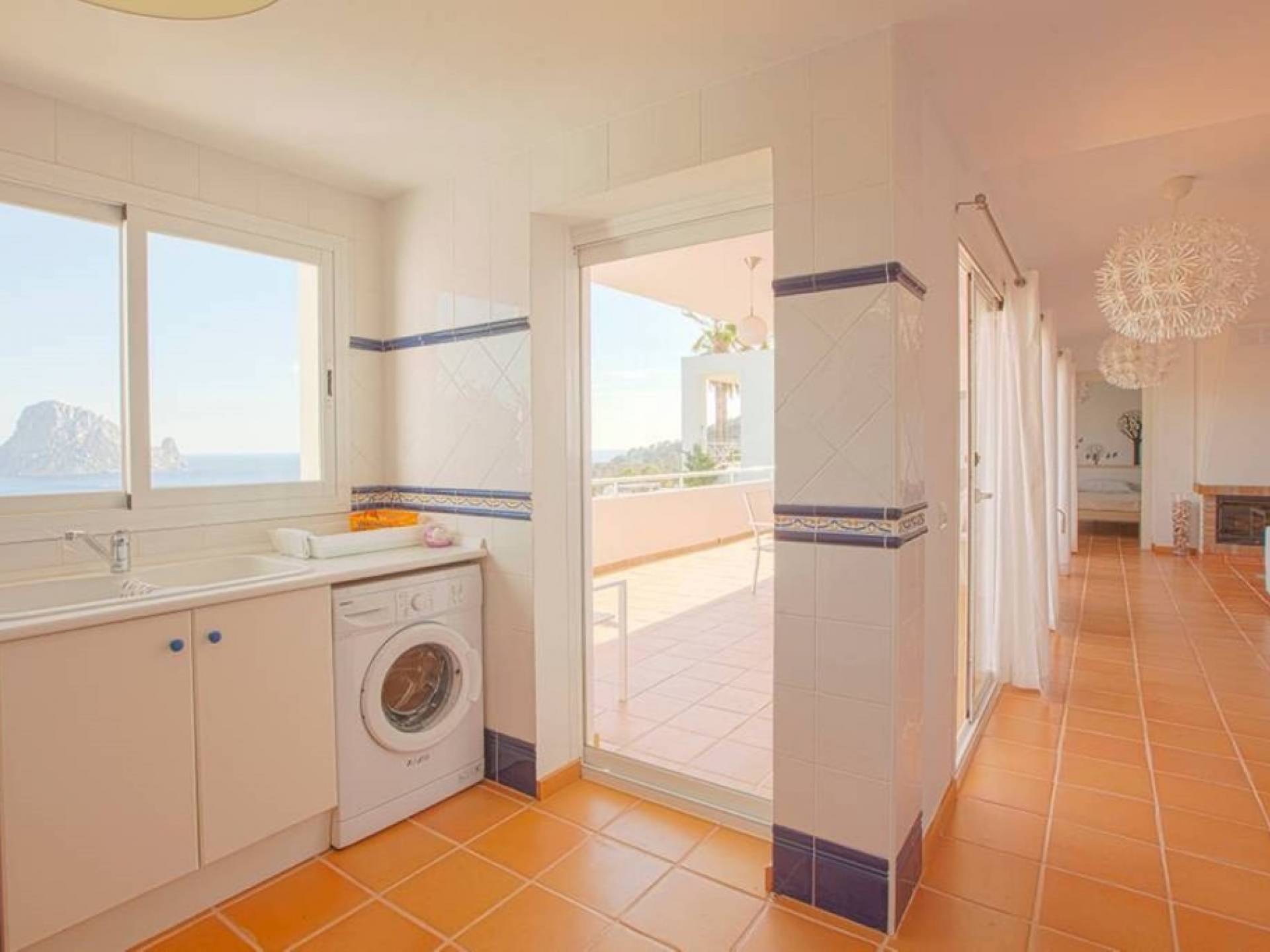 Da das Casa Pepita Ibiza auf 3 Ebenen gebaut ist, haben Sie Zugang zu 3 wunderschönen Terrassen. Die Wohnbereiche wurden wunderschön gestaltet und eingerichtet - es gibt 2 offene Wohn- / Essbereiche und 2 moderne, voll ausgestattete Küchen mit Meerblick von jedem Zimmer aus. Es gibt auch ein Gäste-WC. Beide Loungebereiche verfügen über riesige, bequeme Sofas, einen TV und eine Klimaanlage, einen über einen Kamin und öffnen sich jeweils zu großen Chill-out-Terrassen mit Blick auf den Pool.