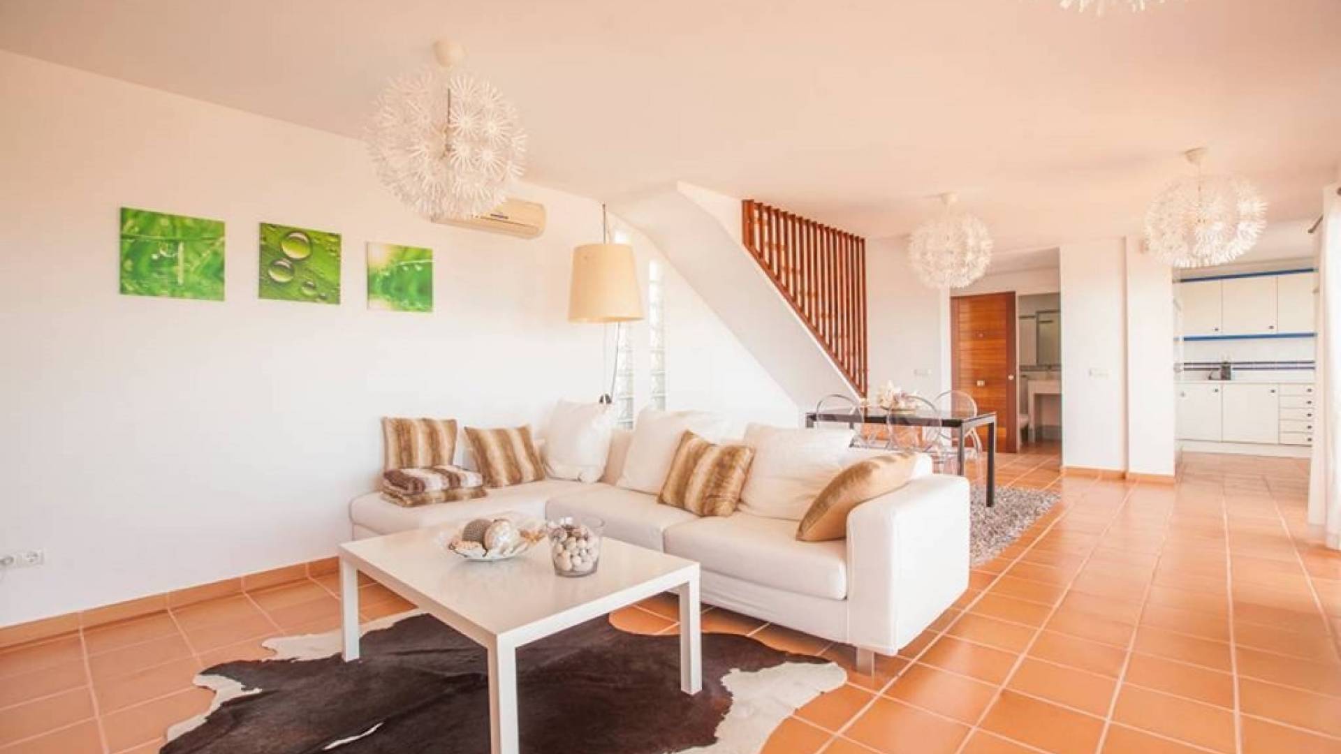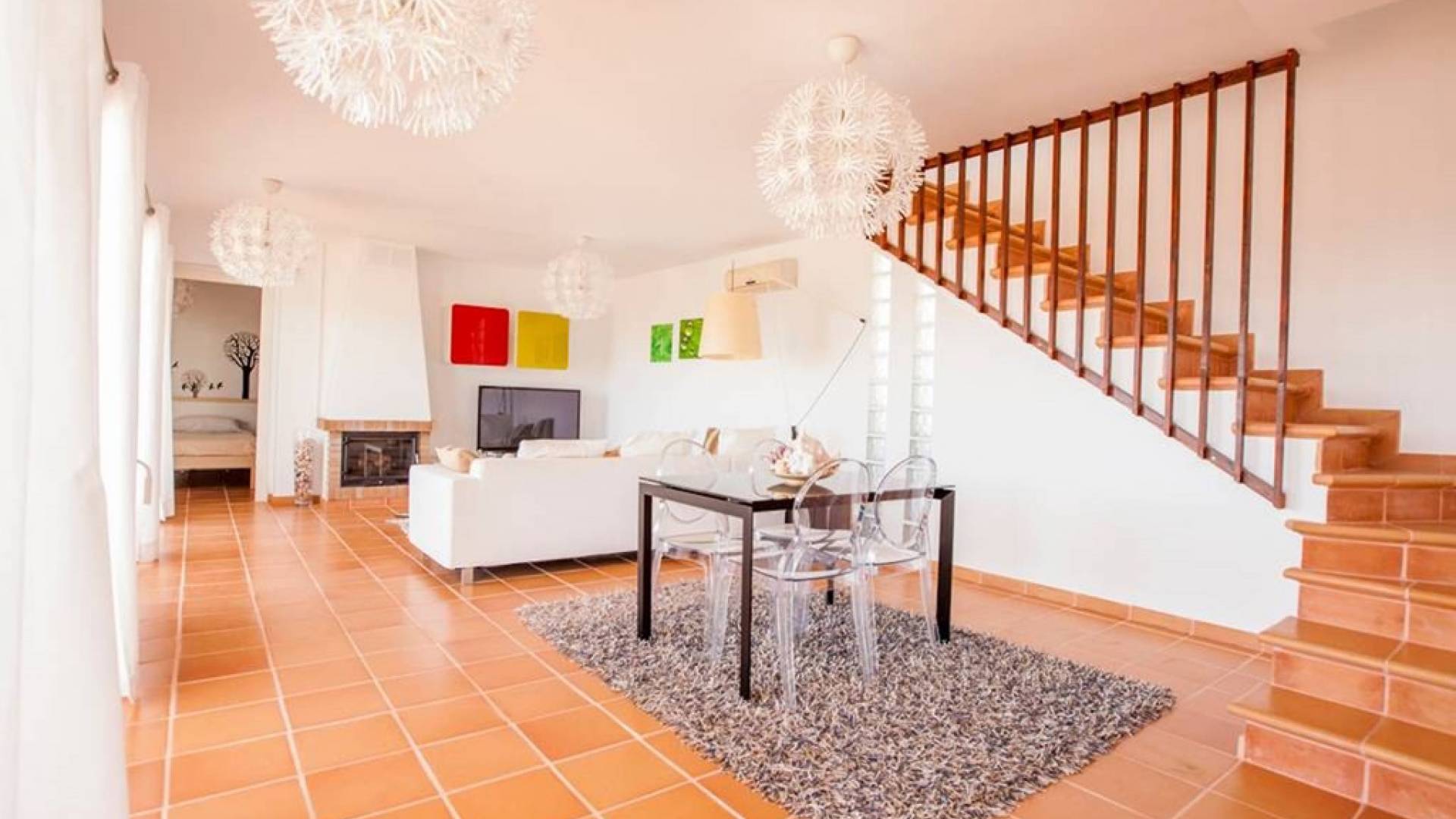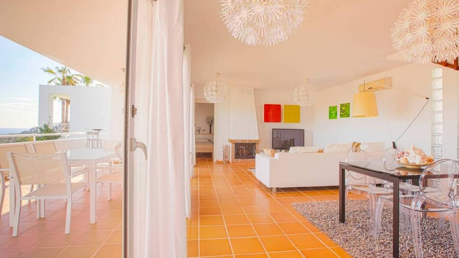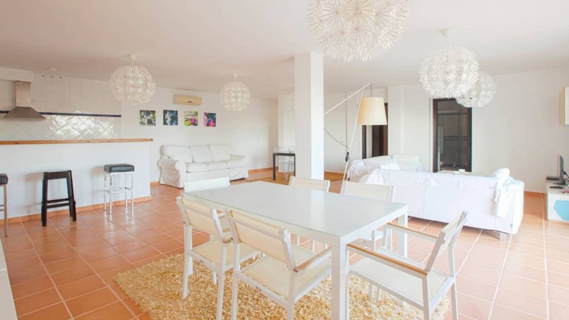 Da das Casa Pepita Ibiza auf 3 Ebenen gebaut ist, haben Sie Zugang zu 3 wunderschönen Terrassen. Die Wohnbereiche wurden wunderschön gestaltet und eingerichtet - es gibt 2 offene Wohn- / Essbereiche und 2 moderne, voll ausgestattete Küchen mit Meerblick von jedem Zimmer aus. Es gibt auch ein Gäste-WC. Beide Loungebereiche verfügen über riesige, bequeme Sofas, einen TV und eine Klimaanlage, einen über einen Kamin und öffnen sich jeweils zu großen Chill-out-Terrassen mit Blick auf den Pool.