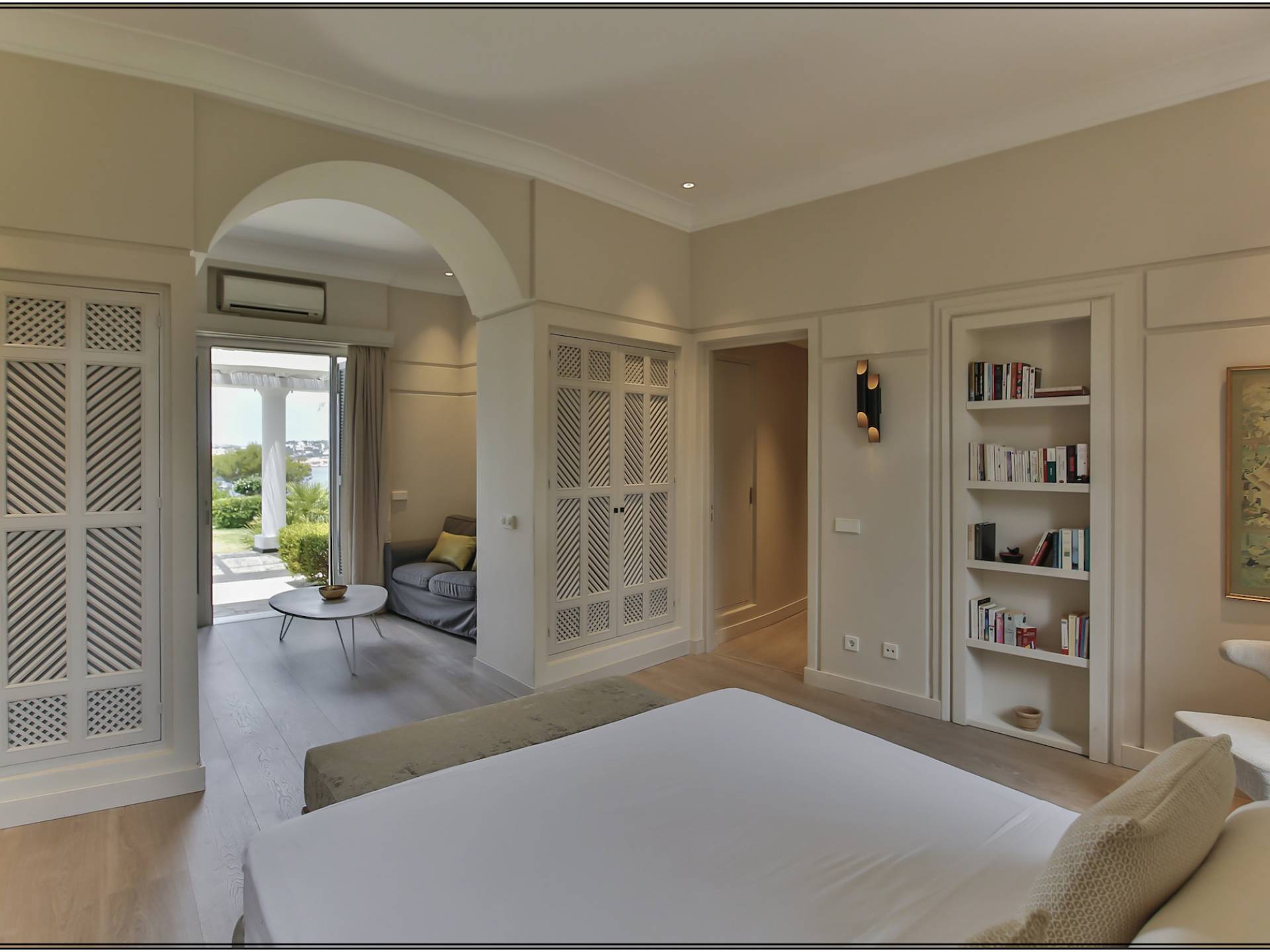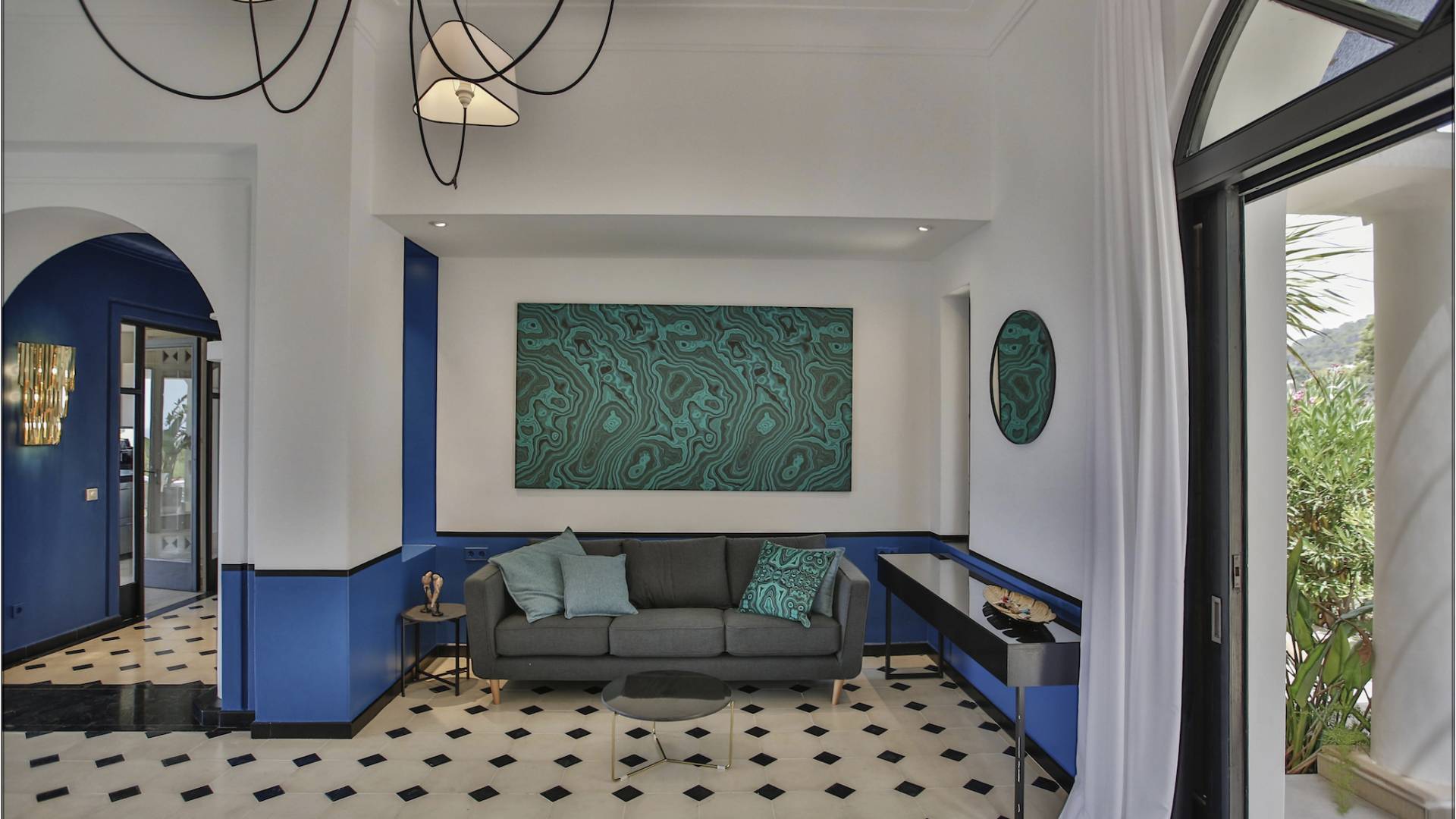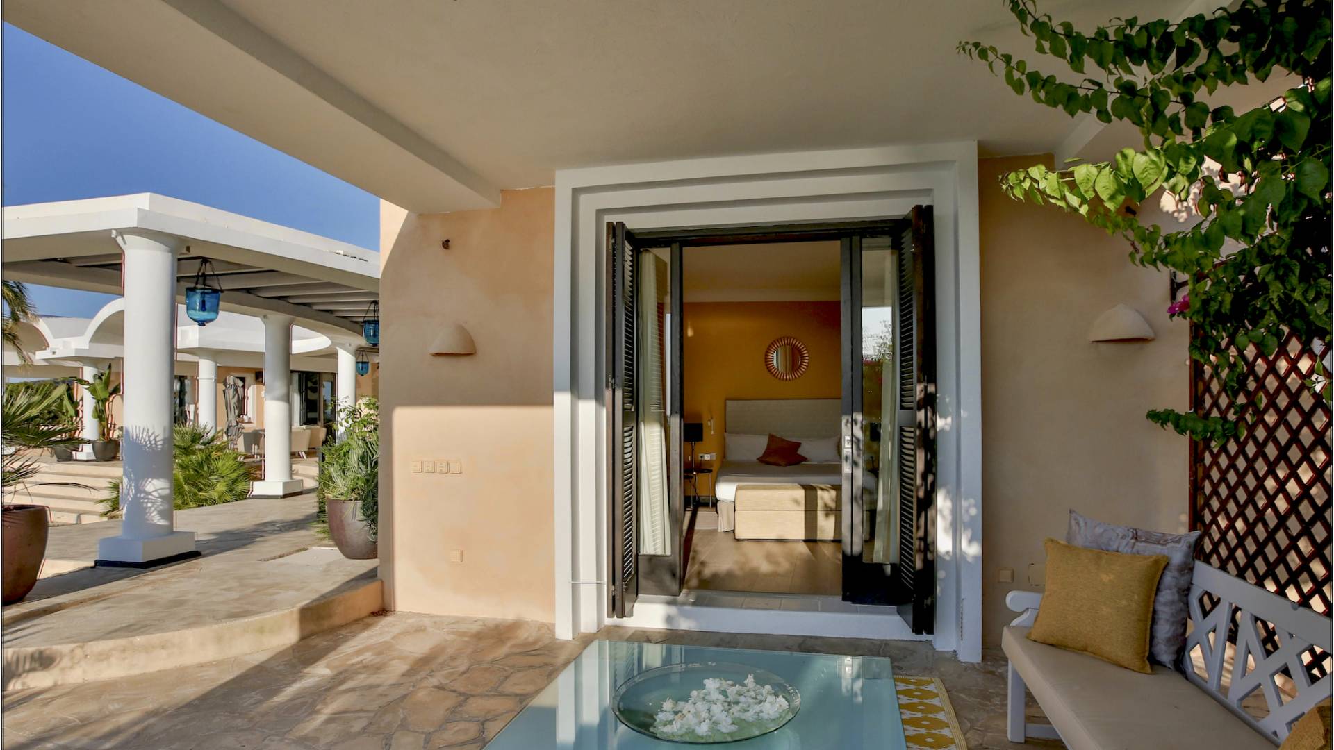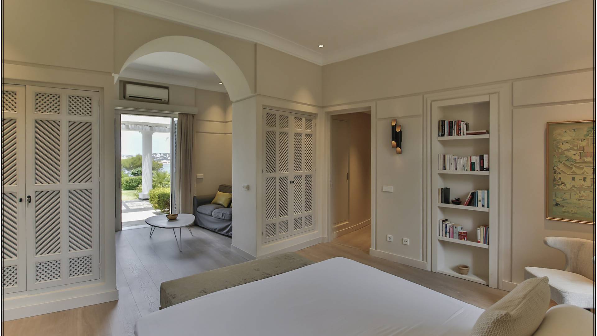 Auf einer Klippe mit Blick auf den Strand von Cala Moli gelegen, ist Can Icarus auf zwei Ebenen gebaut und bietet einen 180°-Blick auf das Meer und Illetas sowie direkten Zugang zu einer kleinen Bucht über in die Klippe gehauene Felsstufen . Die Architektur der Villa ist modern und offen, so dass die Schlafzimmer und Terrassen den herrlichen Panoramablick voll ausnutzen können. Die Sonnenuntergänge in dieser Villa sind wirklich unvergesslich und die Villa verfügt über eine Fülle von Terrassen und Innenhöfen, so dass die Aussicht aus allen Blickwinkeln genossen werden kann. Im Inneren unterstreichen rohe Materialien und warme Farben das orientalische und zeitgenössische Dekor. Das große Wohnzimmer erstreckt sich auf einen bezaubernden Patio, wo sich das Plätschern des Springbrunnens mit Vogelgezwitscher vermischt.