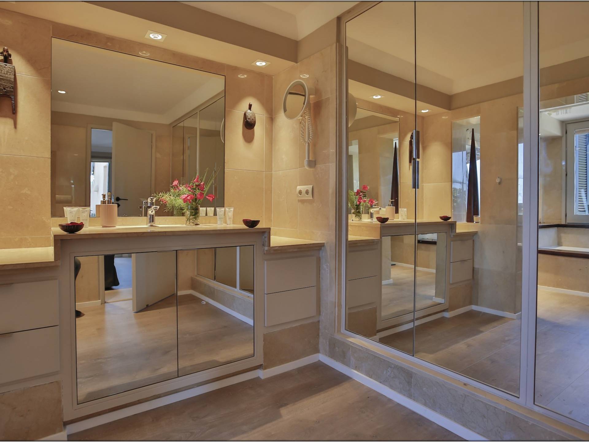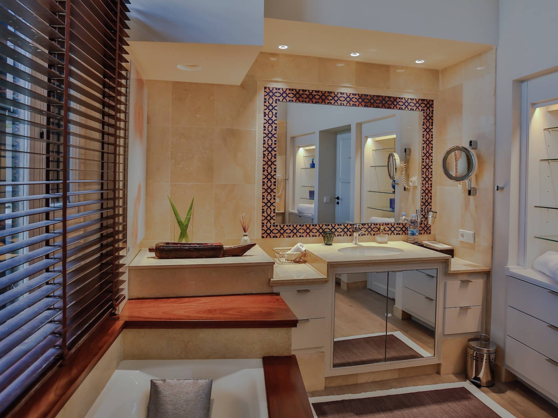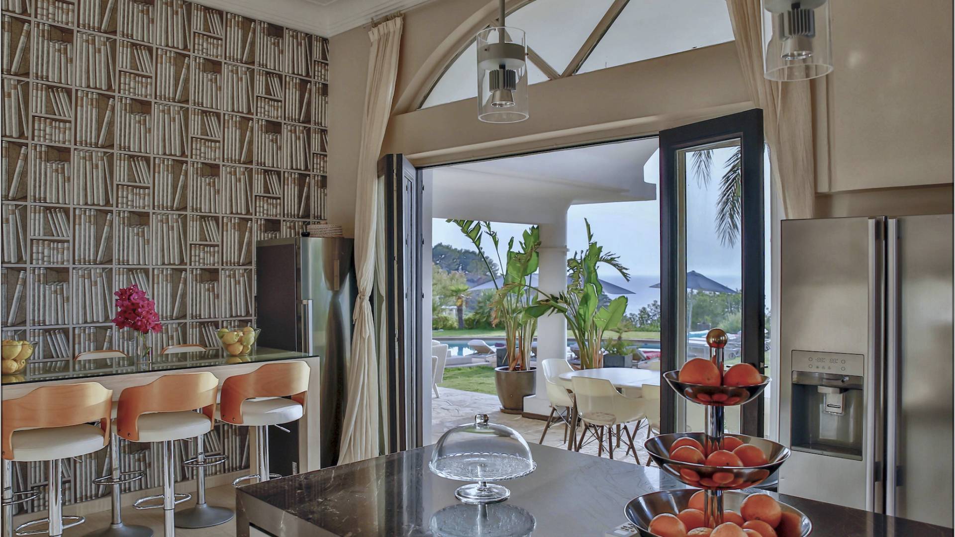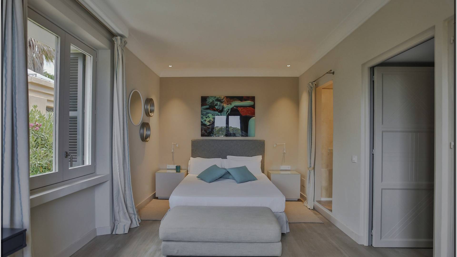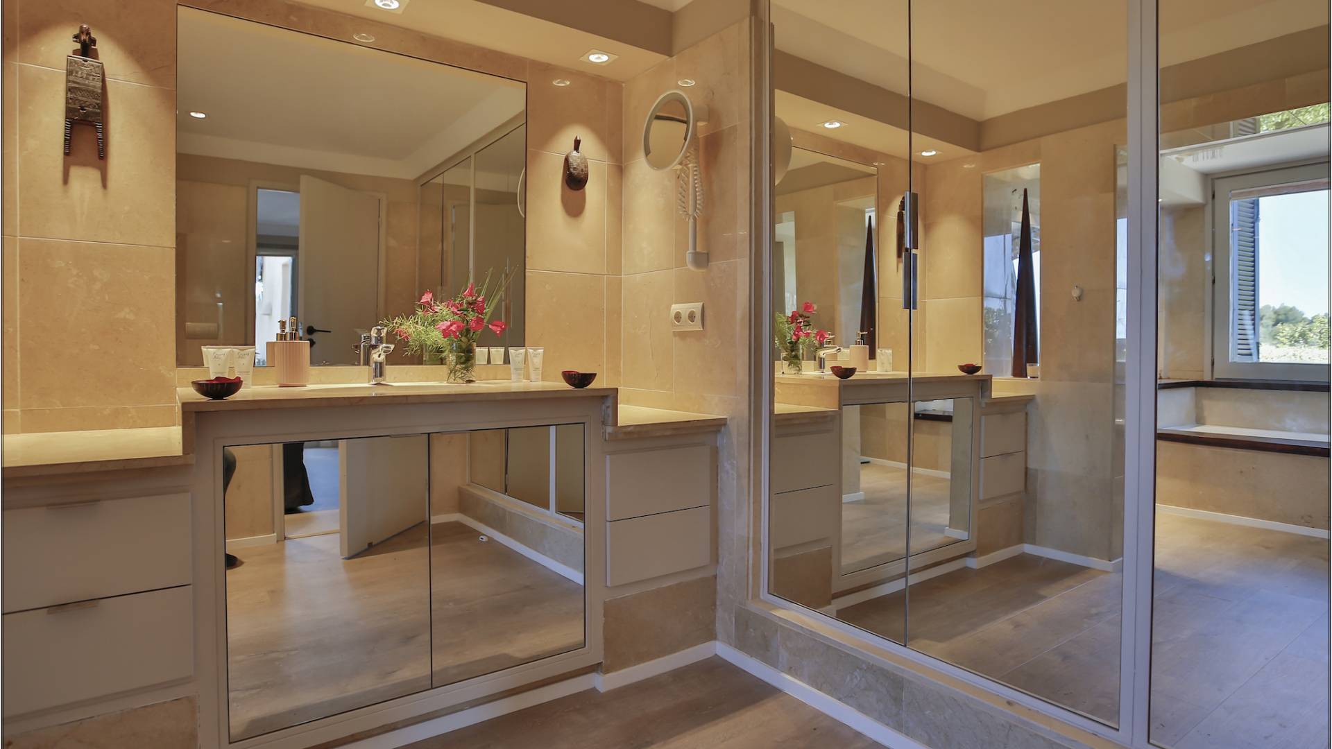 Auf einer Klippe mit Blick auf den Strand von Cala Moli gelegen, ist Can Icarus auf zwei Ebenen gebaut und bietet einen 180°-Blick auf das Meer und Illetas sowie direkten Zugang zu einer kleinen Bucht über in die Klippe gehauene Felsstufen . Die Architektur der Villa ist modern und offen, so dass die Schlafzimmer und Terrassen den herrlichen Panoramablick voll ausnutzen können. Die Sonnenuntergänge in dieser Villa sind wirklich unvergesslich und die Villa verfügt über eine Fülle von Terrassen und Innenhöfen, so dass die Aussicht aus allen Blickwinkeln genossen werden kann. Im Inneren unterstreichen rohe Materialien und warme Farben das orientalische und zeitgenössische Dekor. Das große Wohnzimmer erstreckt sich auf einen bezaubernden Patio, wo sich das Plätschern des Springbrunnens mit Vogelgezwitscher vermischt.