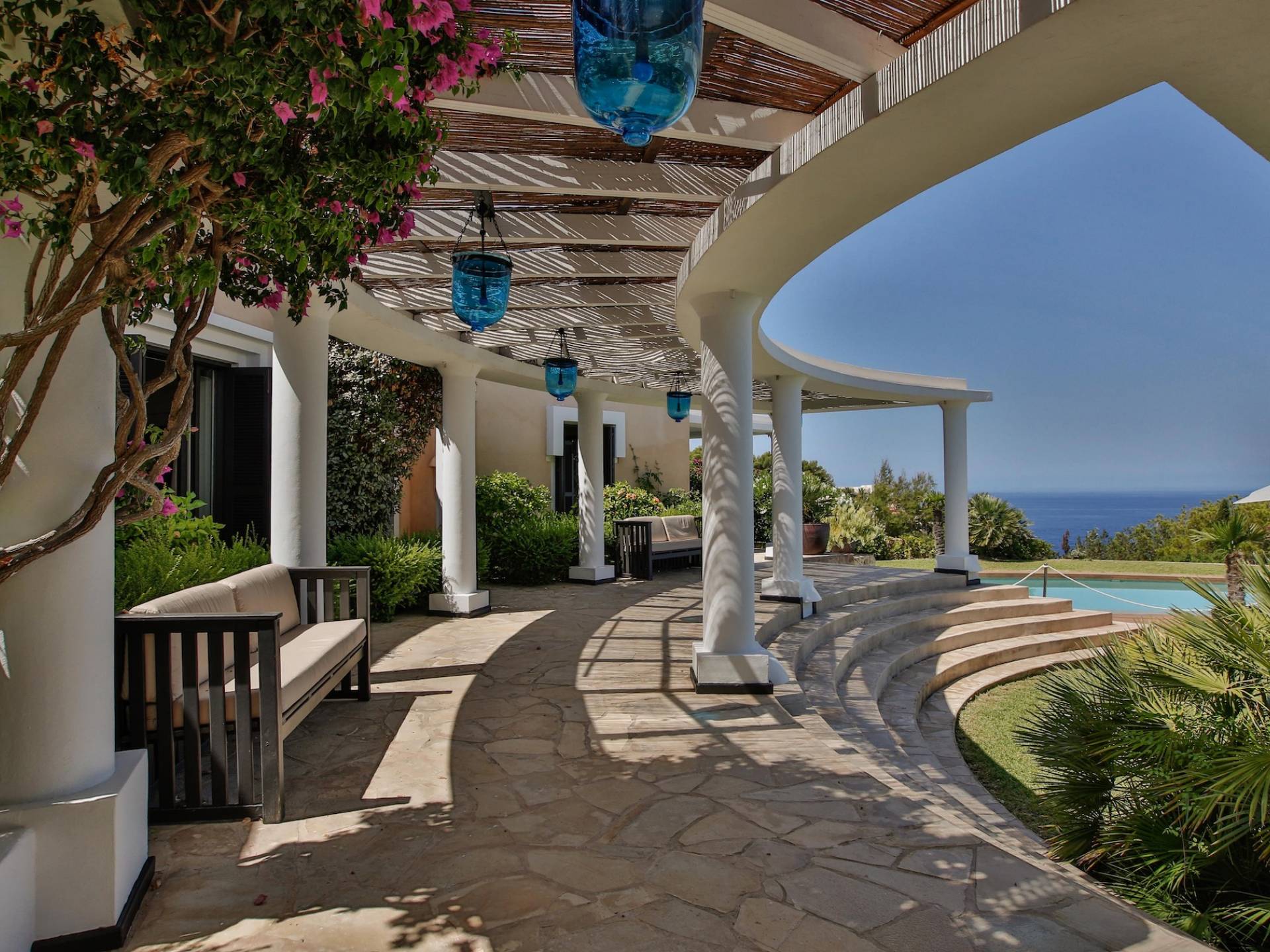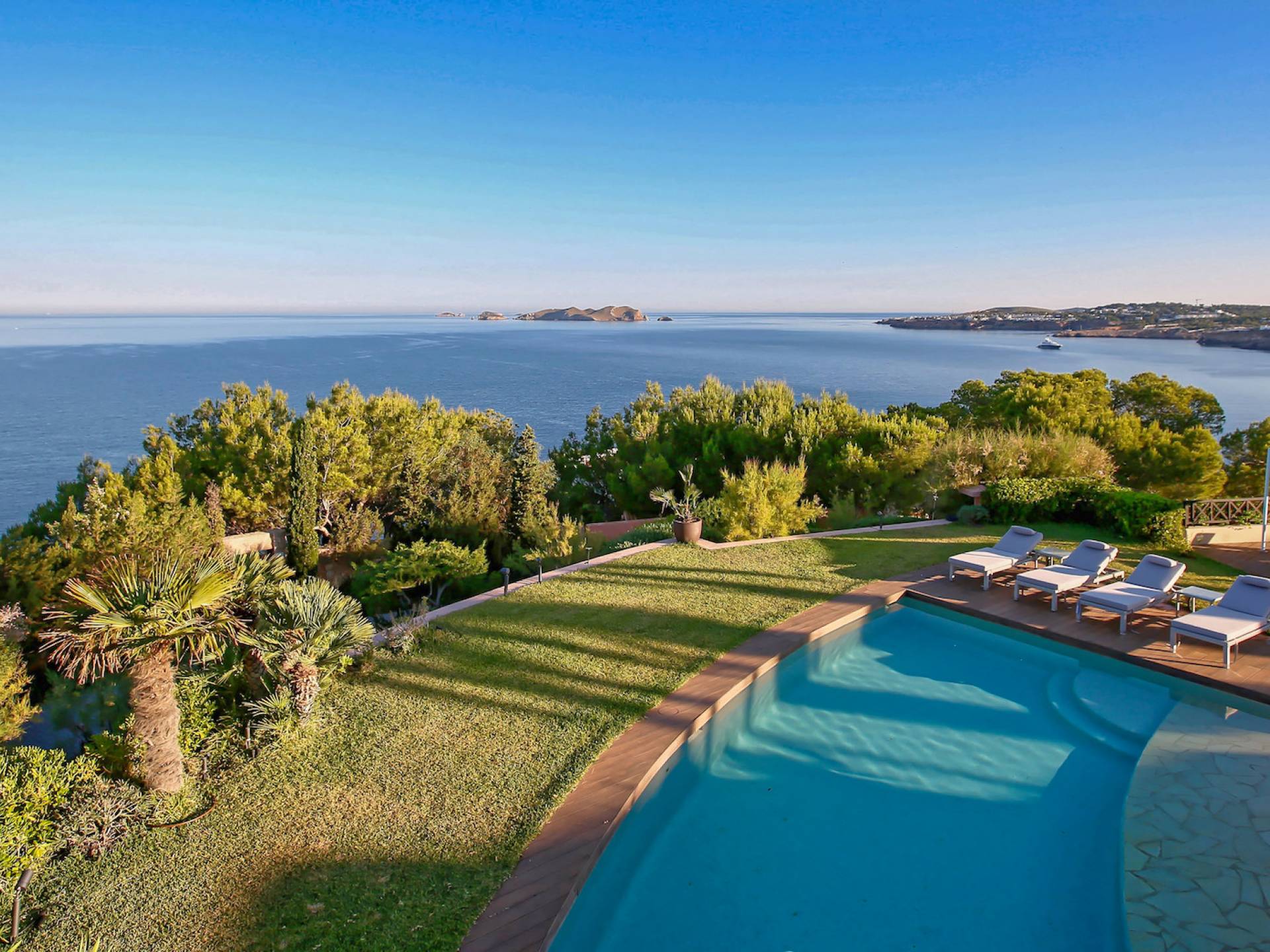 Can Icarus ist eine erstaunliche Villa, die einige der besten Aussichten auf der Insel Ibiza genießt, die man gesehen haben muss, um es zu glauben. Atemberaubendes Anwesen in erster Meereslinie mit direktem Zugang zum Meer.