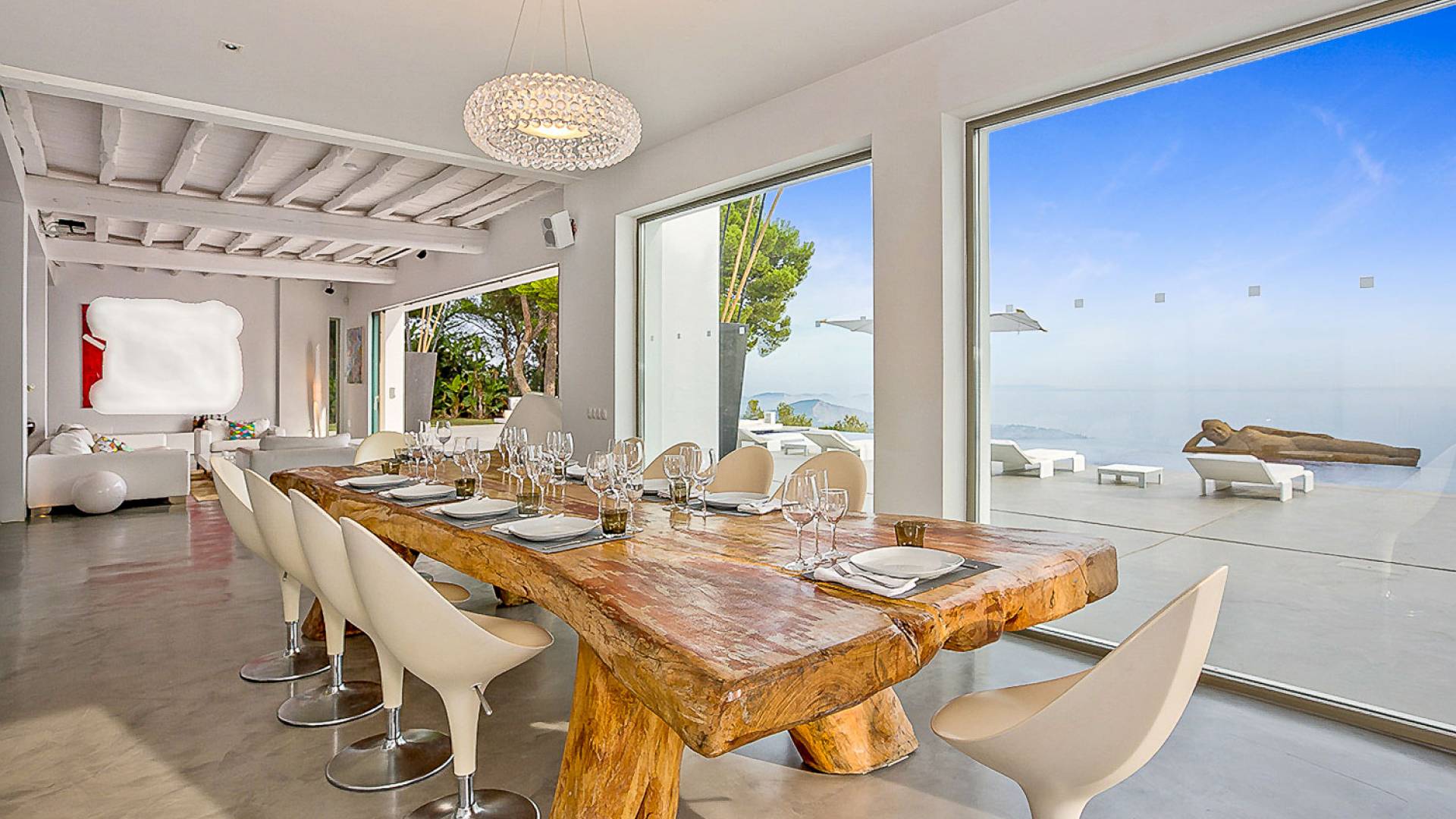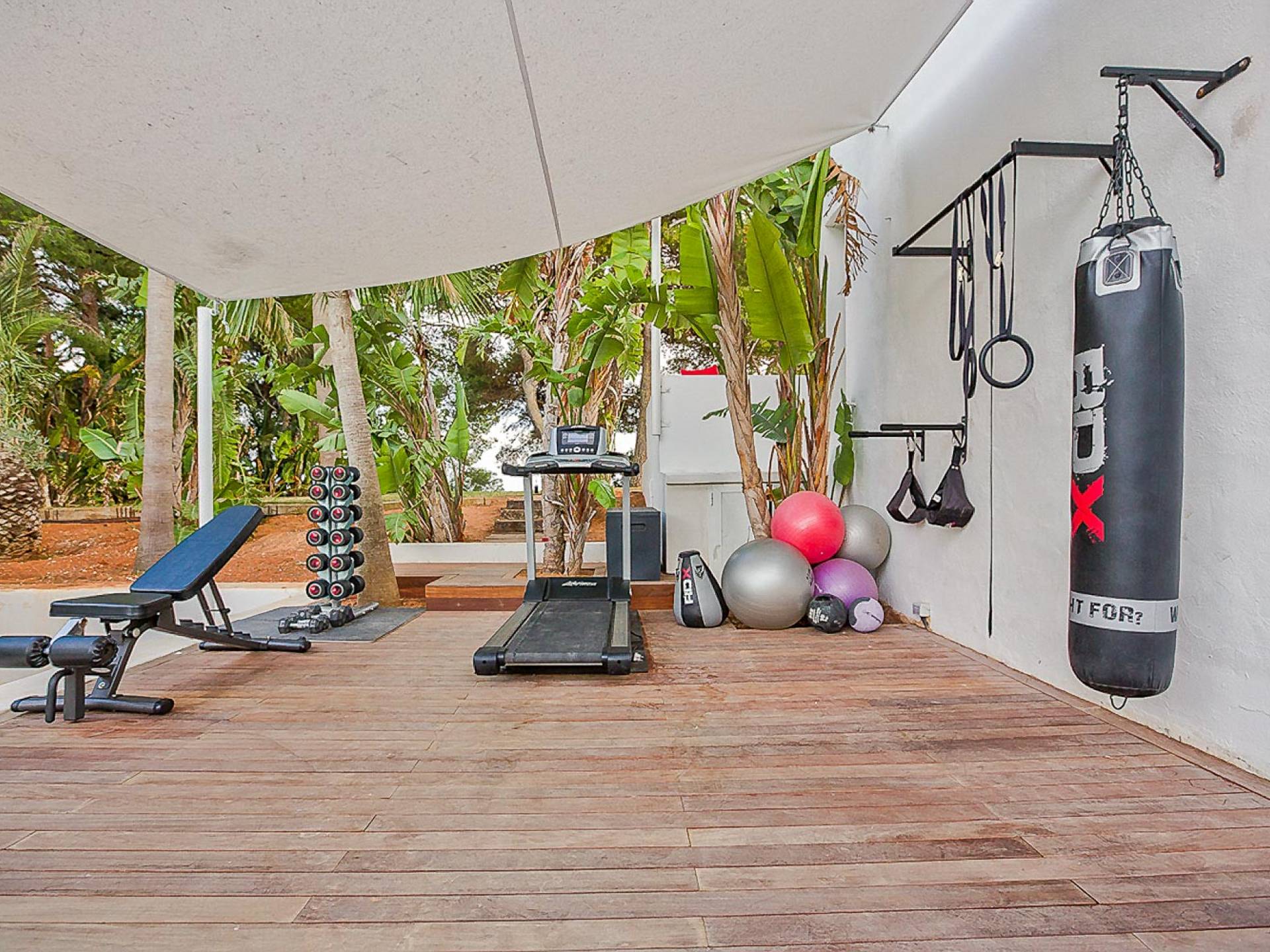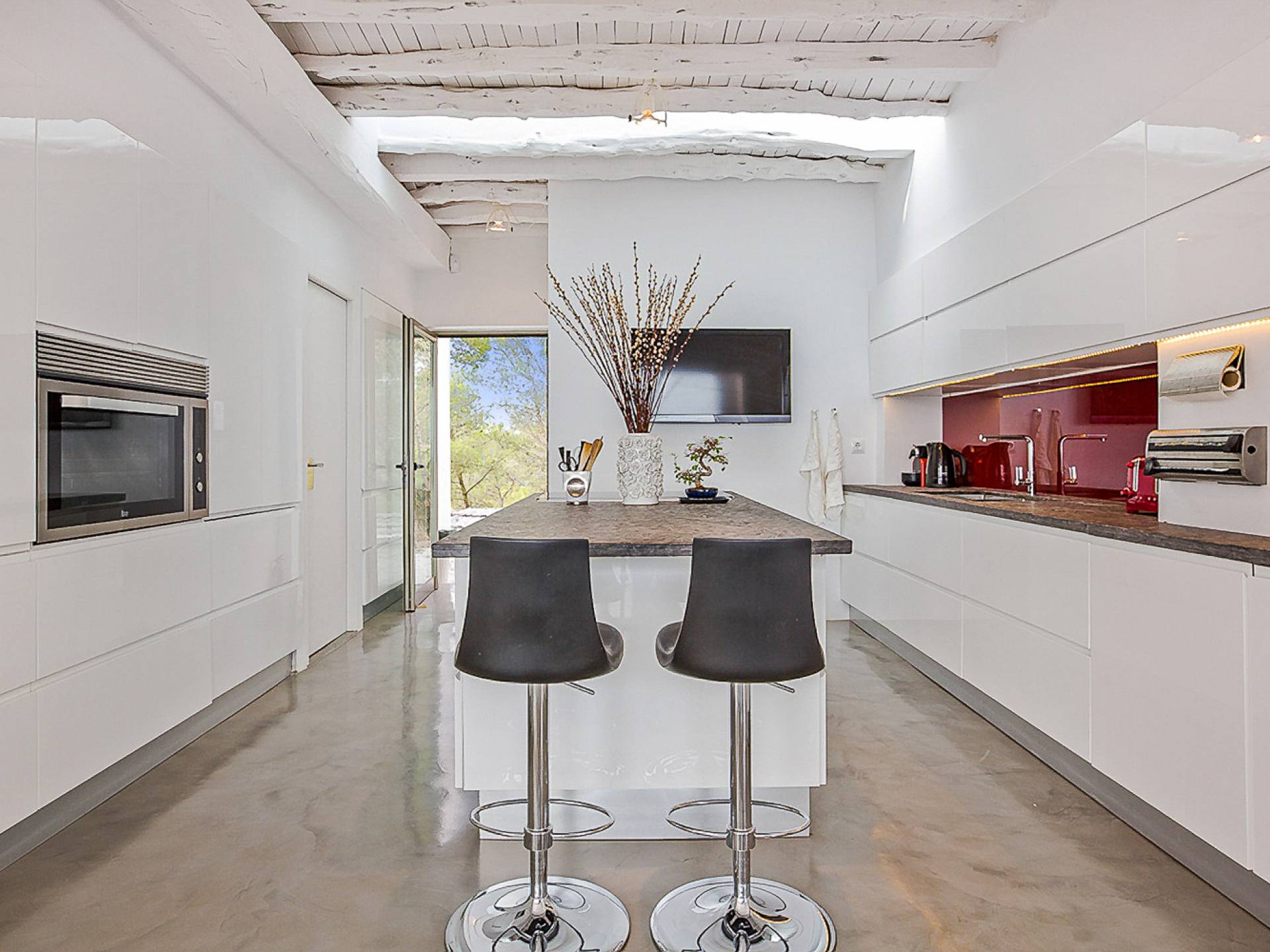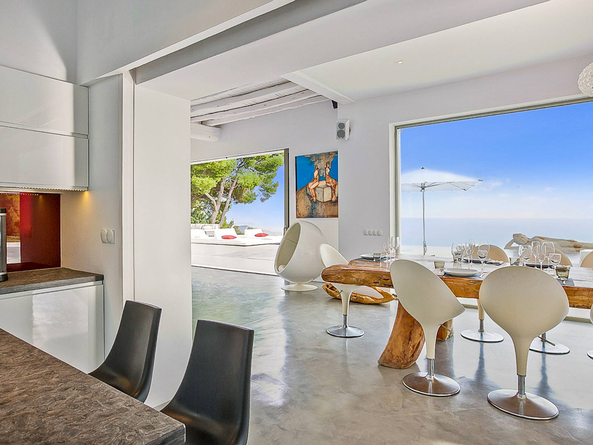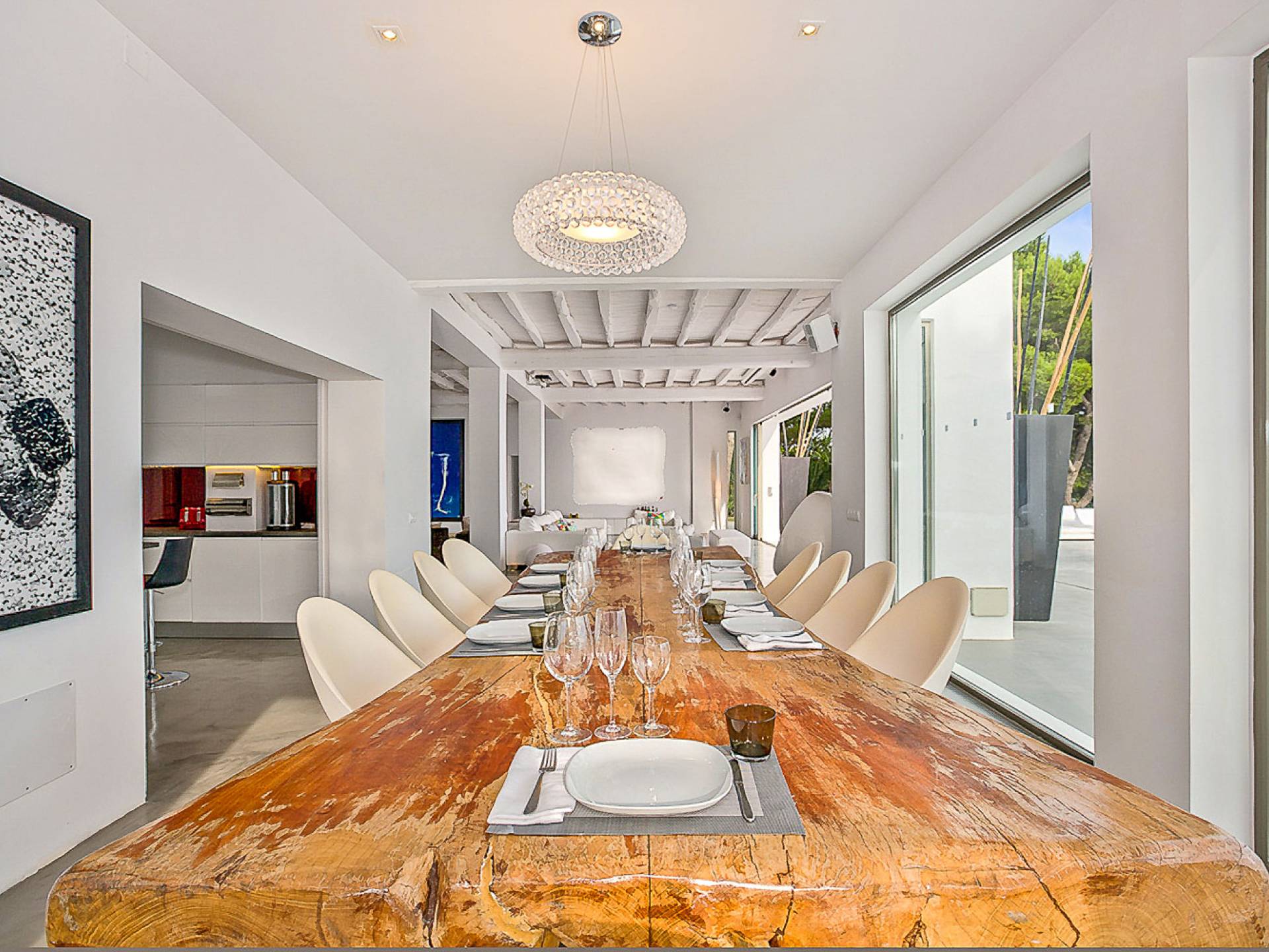 Villa Palms Es Cubells Ibiza ist das ultimative Designer-Luxushaus mit moderner Einrichtung und exquisiter Ausstattung. Die offenen Wohn- und Essbereiche sind hell und geräumig und öffnen sich durch riesige raumhohe Fenster auf die große Terrasse - und bringen die Außenwelt herein... Es gibt Sat-TV, Apple TV, Zugang zu Wifi im ganzen Haus und alles Bereiche sind klimatisiert. Die voll ausgestattete moderne Küche verfügt über alle Geräte, um Ihren Aufenthalt so entspannend wie möglich zu gestalten. Es gibt Wäschemöglichkeiten sowie köstliche Weine aus dem Keller und ein voll ausgestattetes professionelles Fitnessstudio. Es gibt auch 2 Mitarbeiter im Wohnheim.