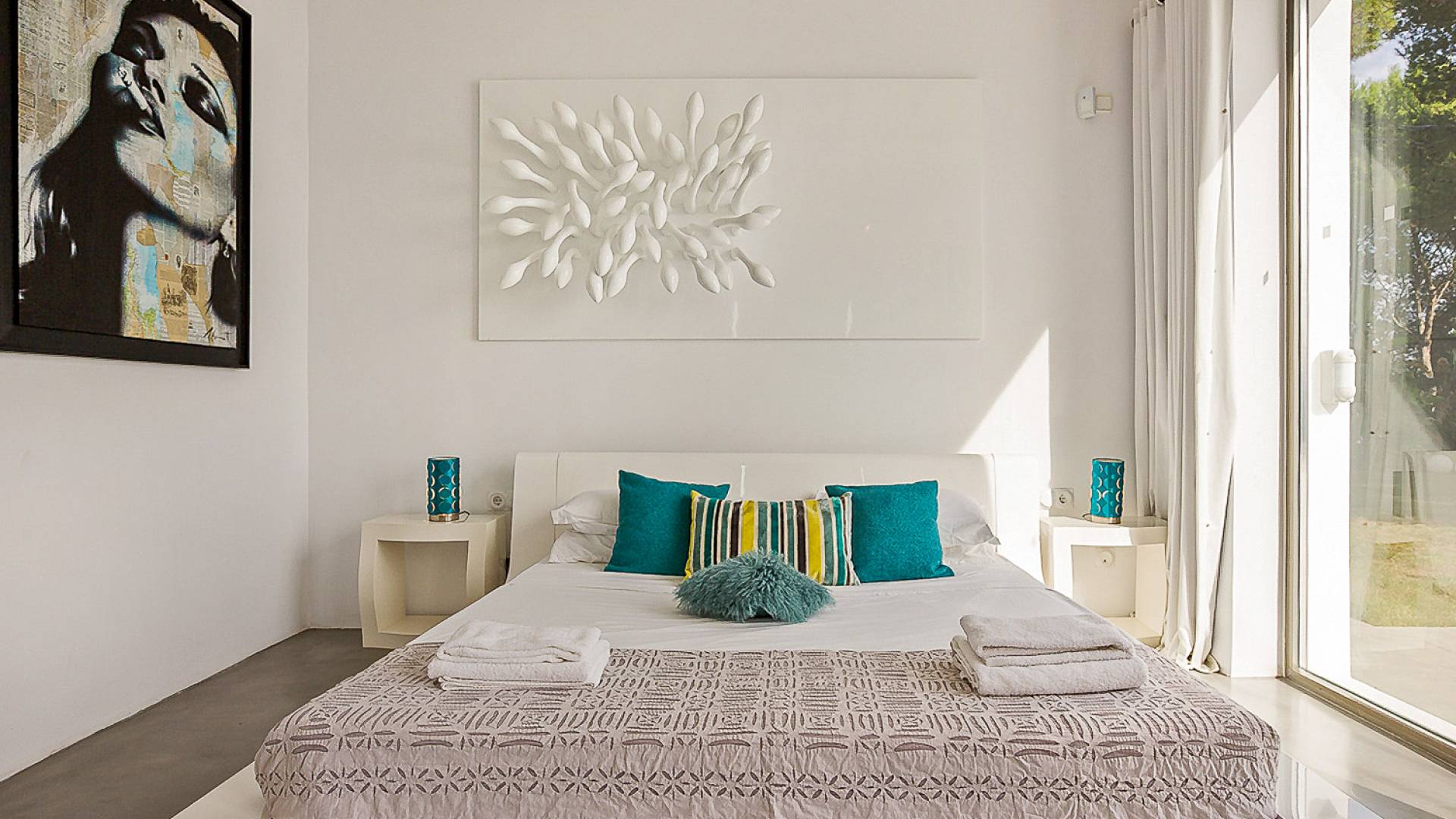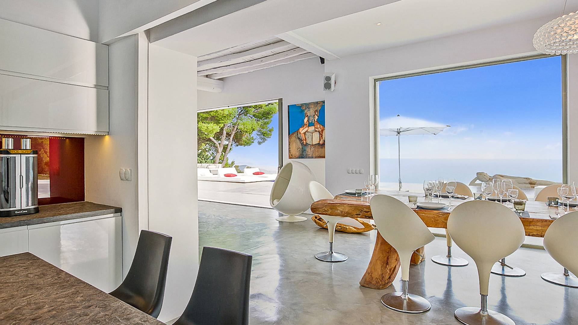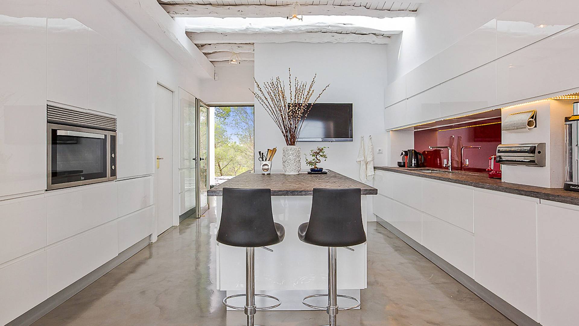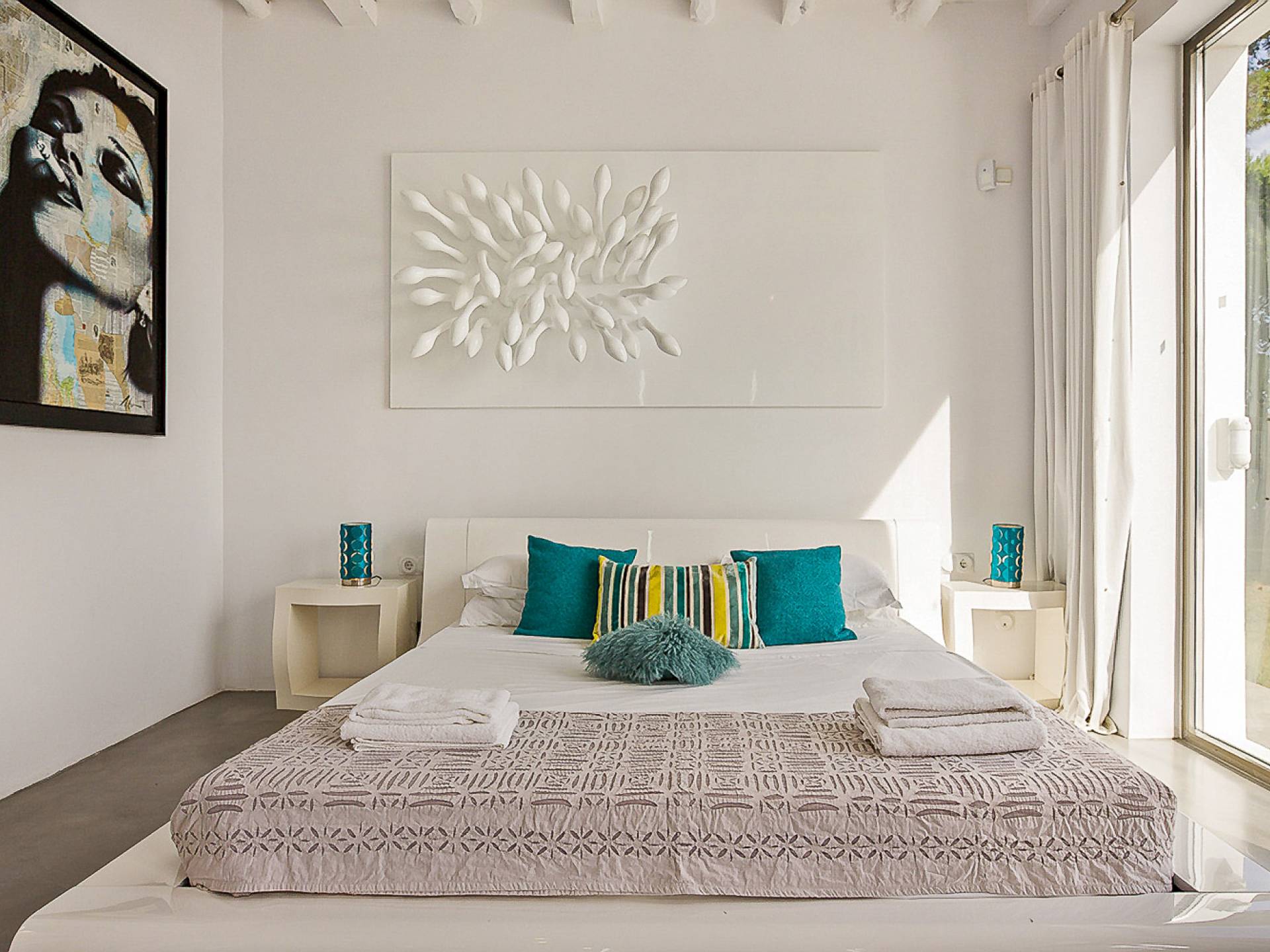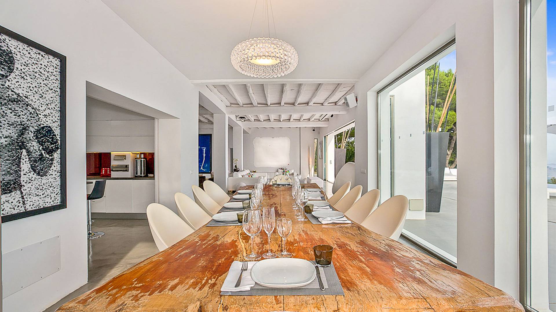 Villa Palms Es Cubells Ibiza ist das ultimative Designer-Luxushaus mit moderner Einrichtung und exquisiter Ausstattung. Die offenen Wohn- und Essbereiche sind hell und geräumig und öffnen sich durch riesige raumhohe Fenster auf die große Terrasse - und bringen die Außenwelt herein... Es gibt Sat-TV, Apple TV, Zugang zu Wifi im ganzen Haus und alles Bereiche sind klimatisiert. Die voll ausgestattete moderne Küche verfügt über alle Geräte, um Ihren Aufenthalt so entspannend wie möglich zu gestalten. Es gibt Wäschemöglichkeiten sowie köstliche Weine aus dem Keller und ein voll ausgestattetes professionelles Fitnessstudio. Es gibt auch 2 Mitarbeiter im Wohnheim.