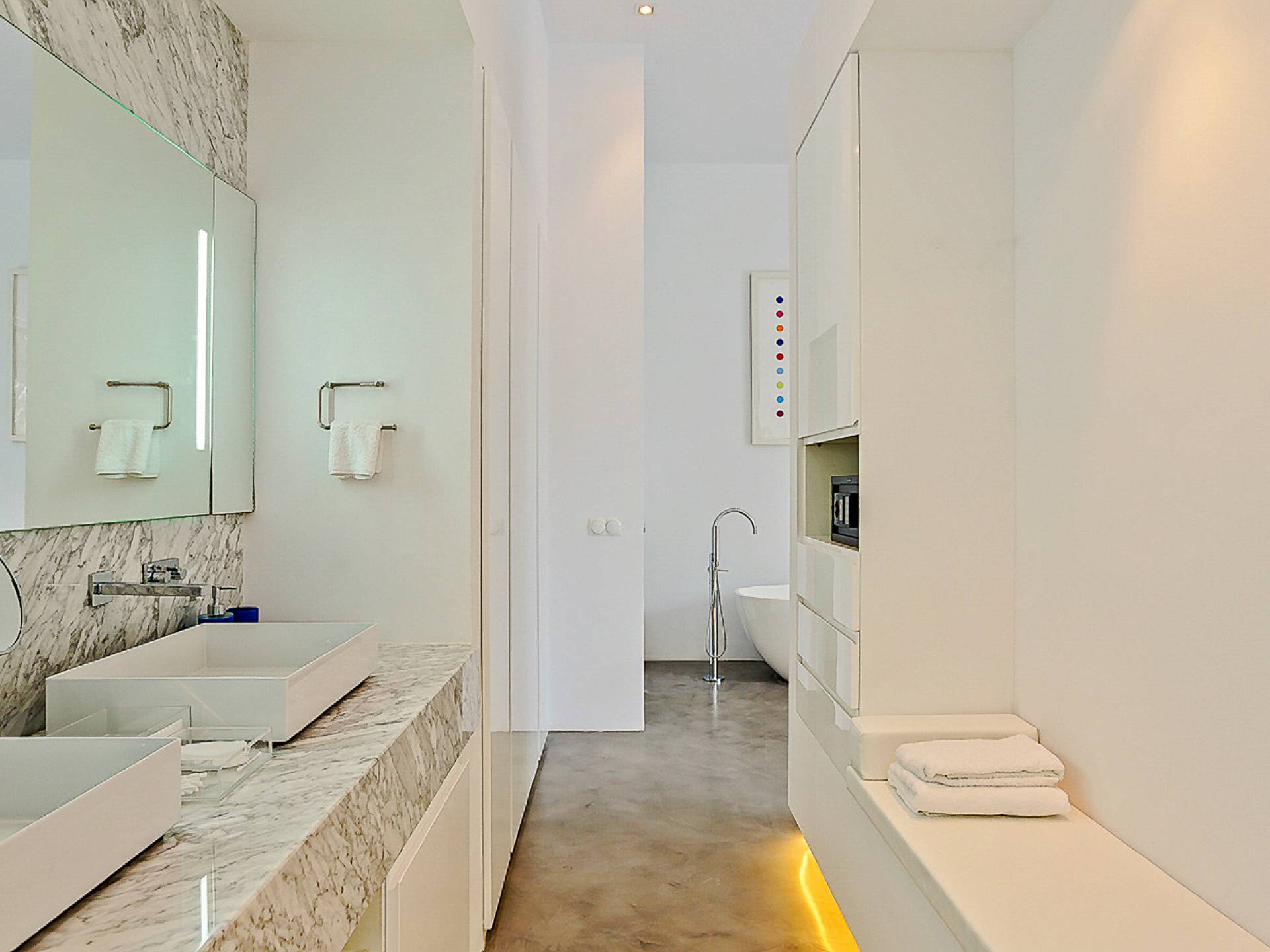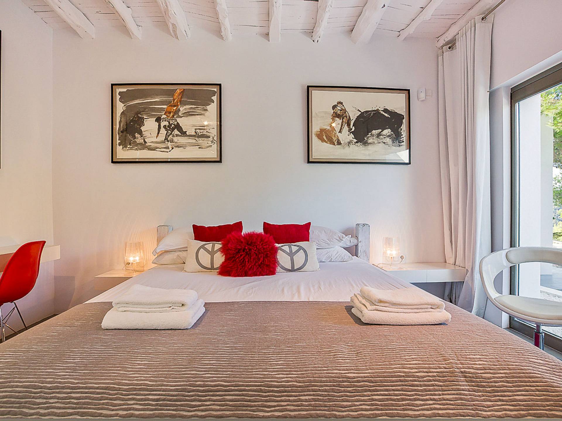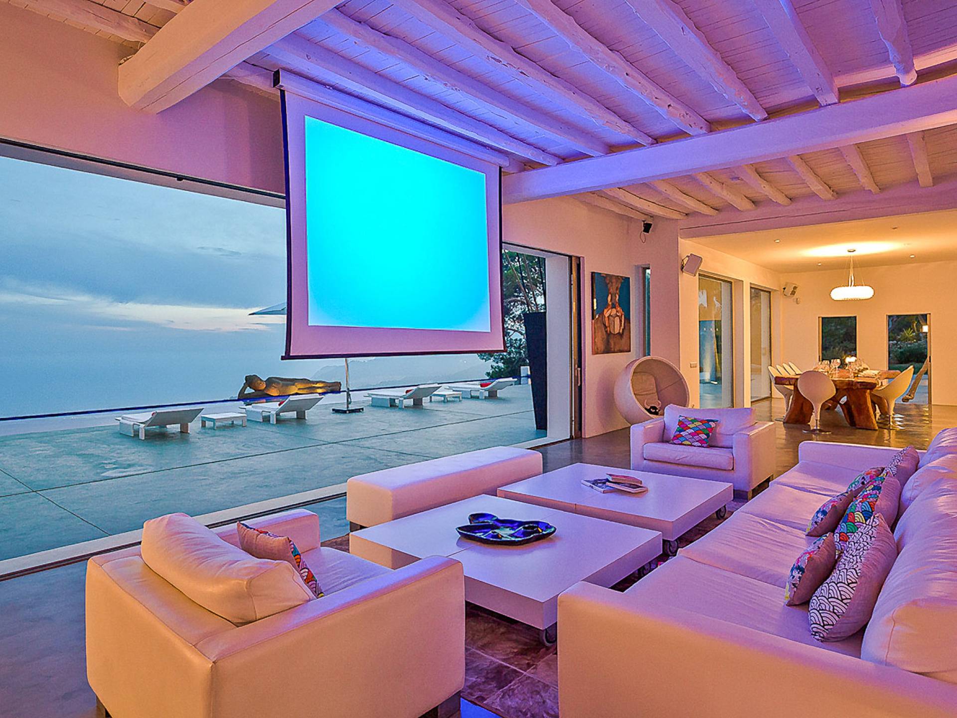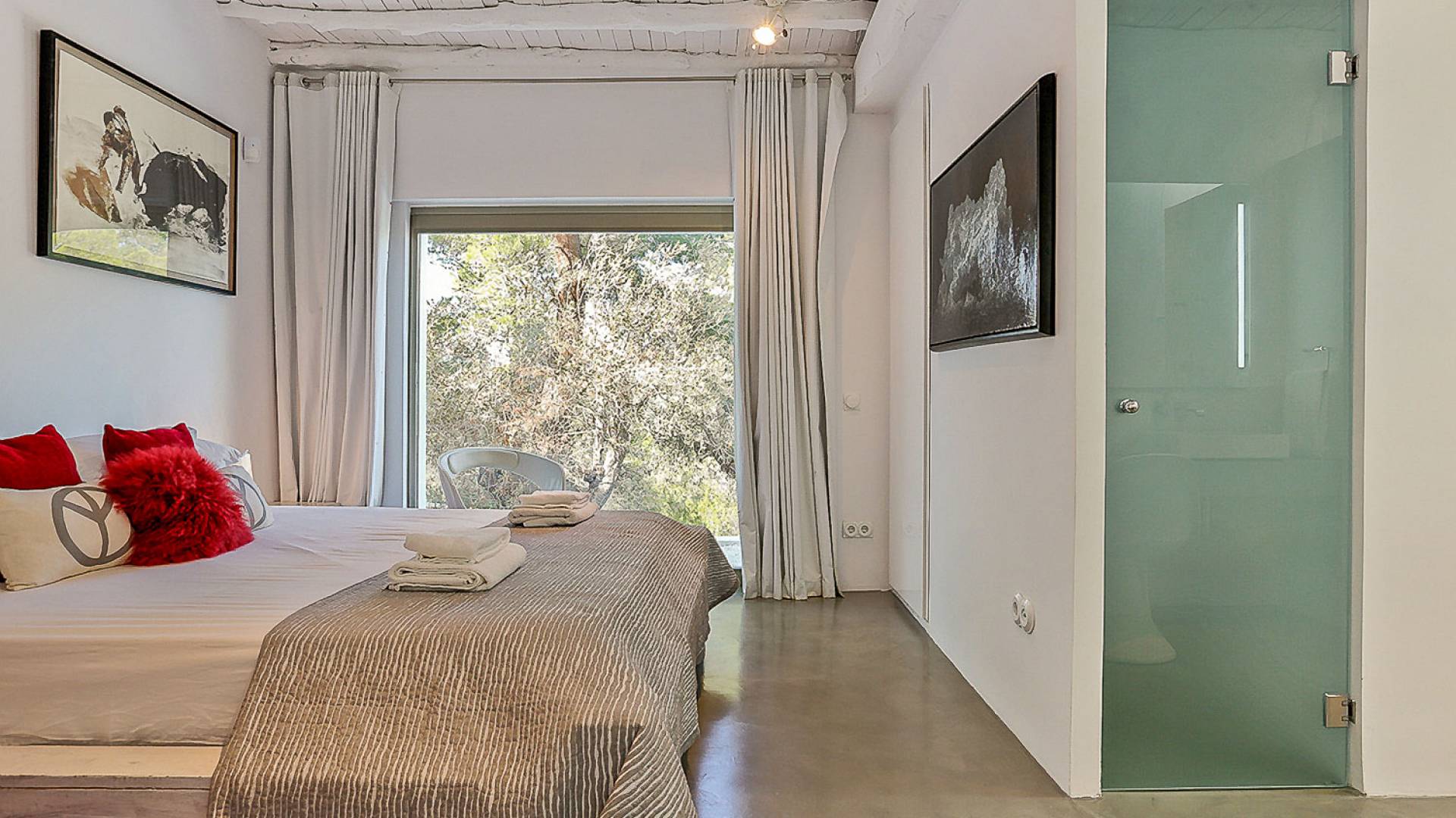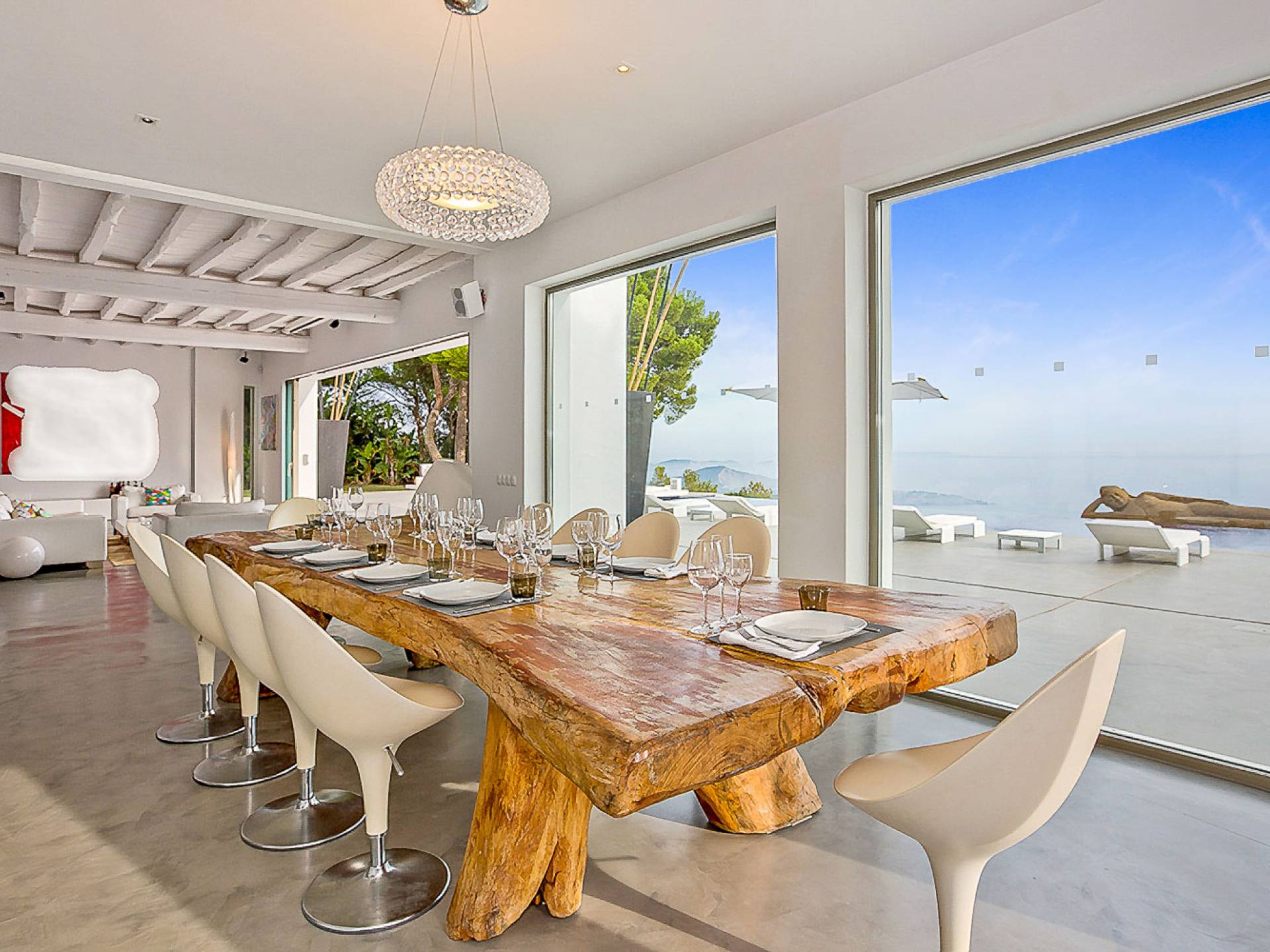 Villa Palms Es Cubells Ibiza ist das ultimative Designer-Luxushaus mit moderner Einrichtung und exquisiter Ausstattung. Die offenen Wohn- und Essbereiche sind hell und geräumig und öffnen sich durch riesige raumhohe Fenster auf die große Terrasse - und bringen die Außenwelt herein... Es gibt Sat-TV, Apple TV, Zugang zu Wifi im ganzen Haus und alles Bereiche sind klimatisiert. Die voll ausgestattete moderne Küche verfügt über alle Geräte, um Ihren Aufenthalt so entspannend wie möglich zu gestalten. Es gibt Wäschemöglichkeiten sowie köstliche Weine aus dem Keller und ein voll ausgestattetes professionelles Fitnessstudio. Es gibt auch 2 Mitarbeiter im Wohnheim.