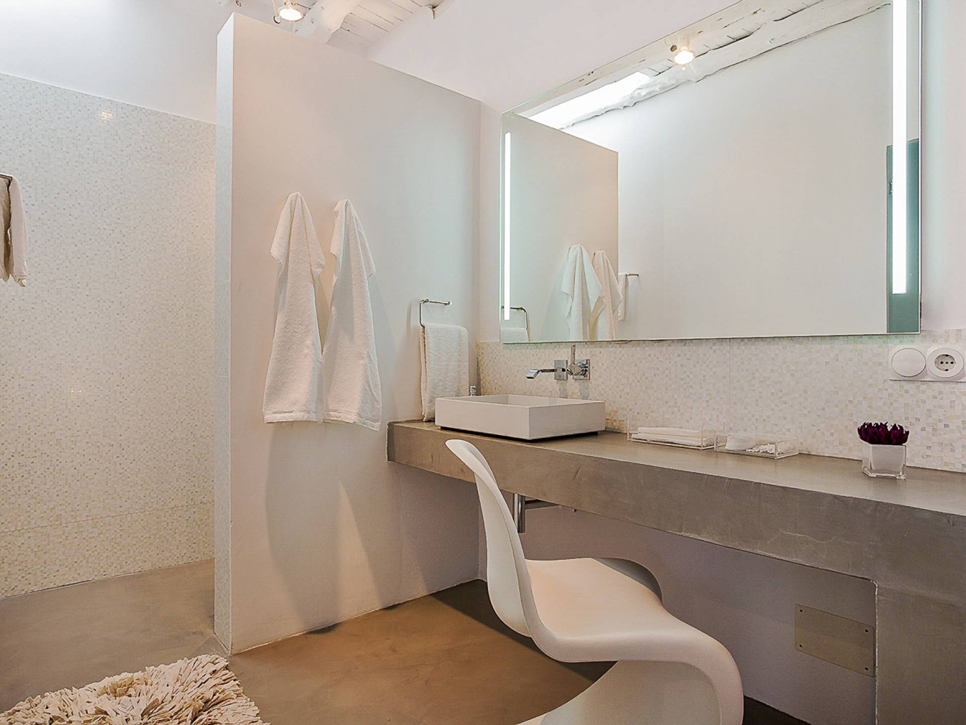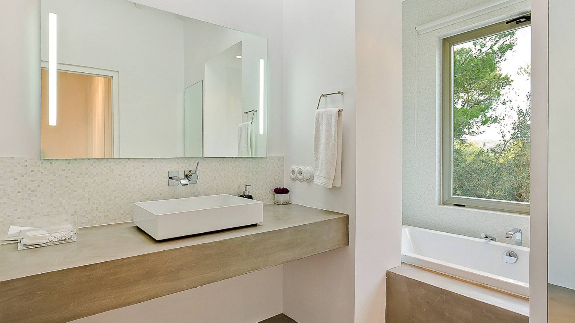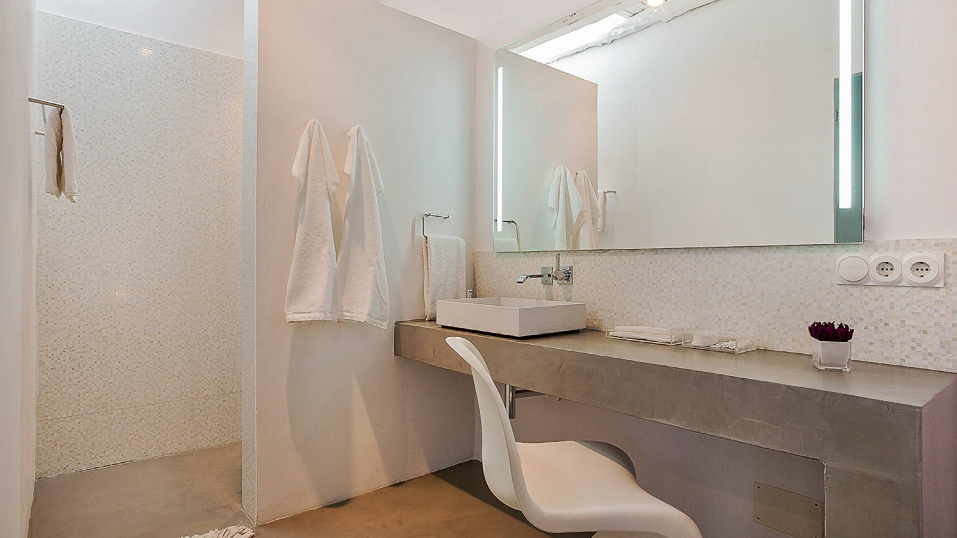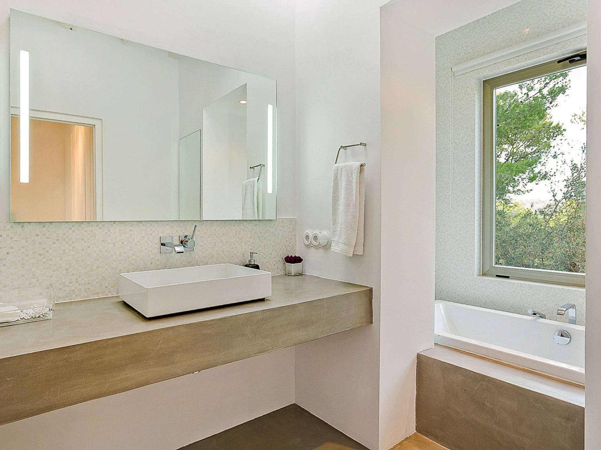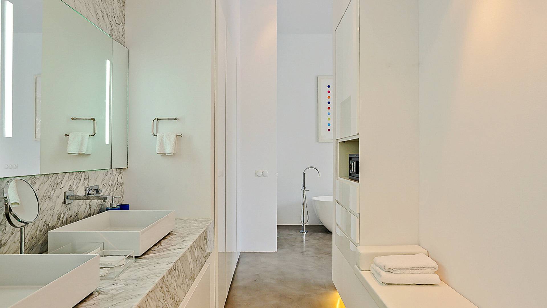 Villa Palms Es Cubells Ibiza ist das ultimative Designer-Luxushaus mit moderner Einrichtung und exquisiter Ausstattung. Die offenen Wohn- und Essbereiche sind hell und geräumig und öffnen sich durch riesige raumhohe Fenster auf die große Terrasse - und bringen die Außenwelt herein... Es gibt Sat-TV, Apple TV, Zugang zu Wifi im ganzen Haus und alles Bereiche sind klimatisiert. Die voll ausgestattete moderne Küche verfügt über alle Geräte, um Ihren Aufenthalt so entspannend wie möglich zu gestalten. Es gibt Wäschemöglichkeiten sowie köstliche Weine aus dem Keller und ein voll ausgestattetes professionelles Fitnessstudio. Es gibt auch 2 Mitarbeiter im Wohnheim.