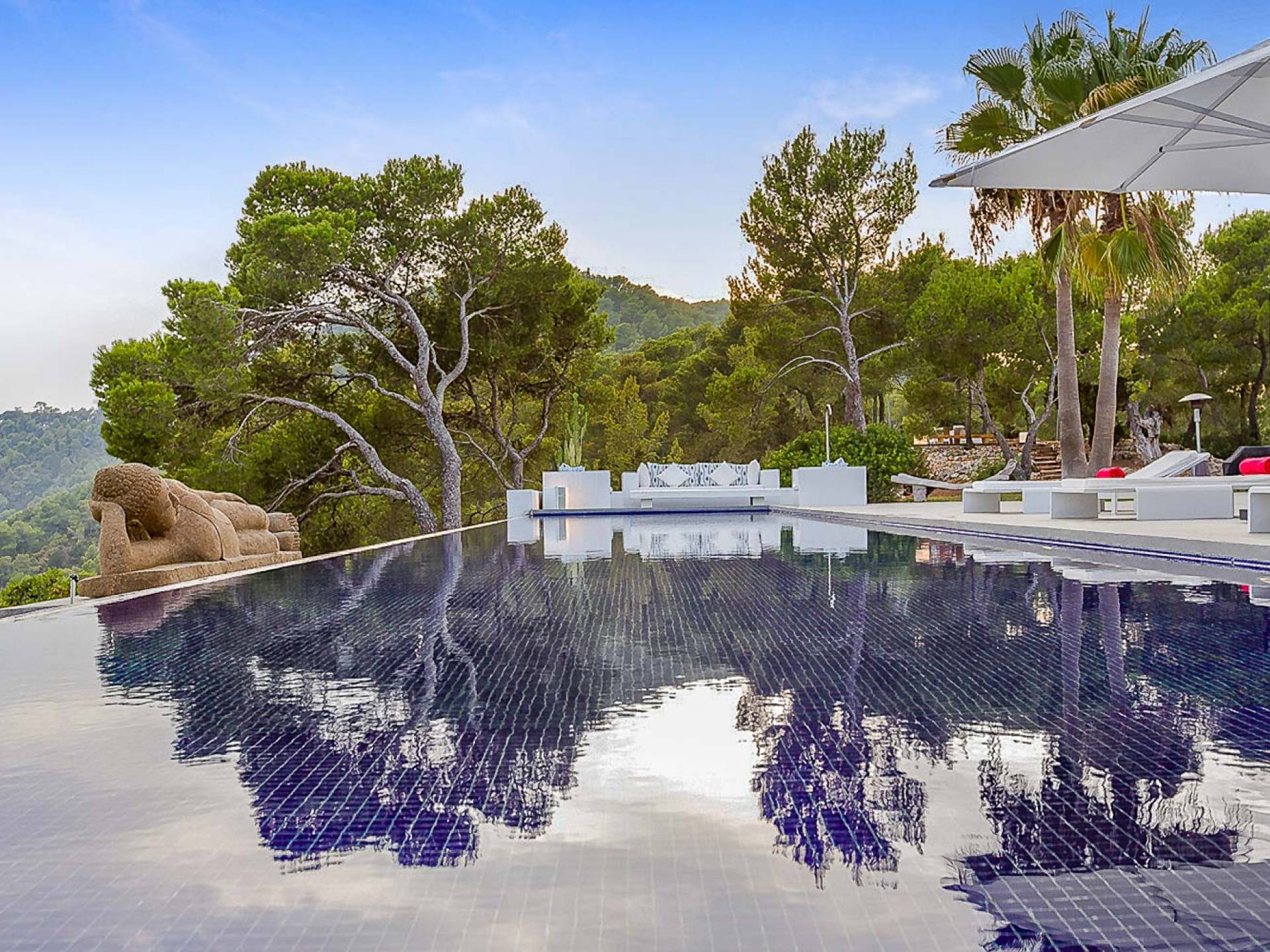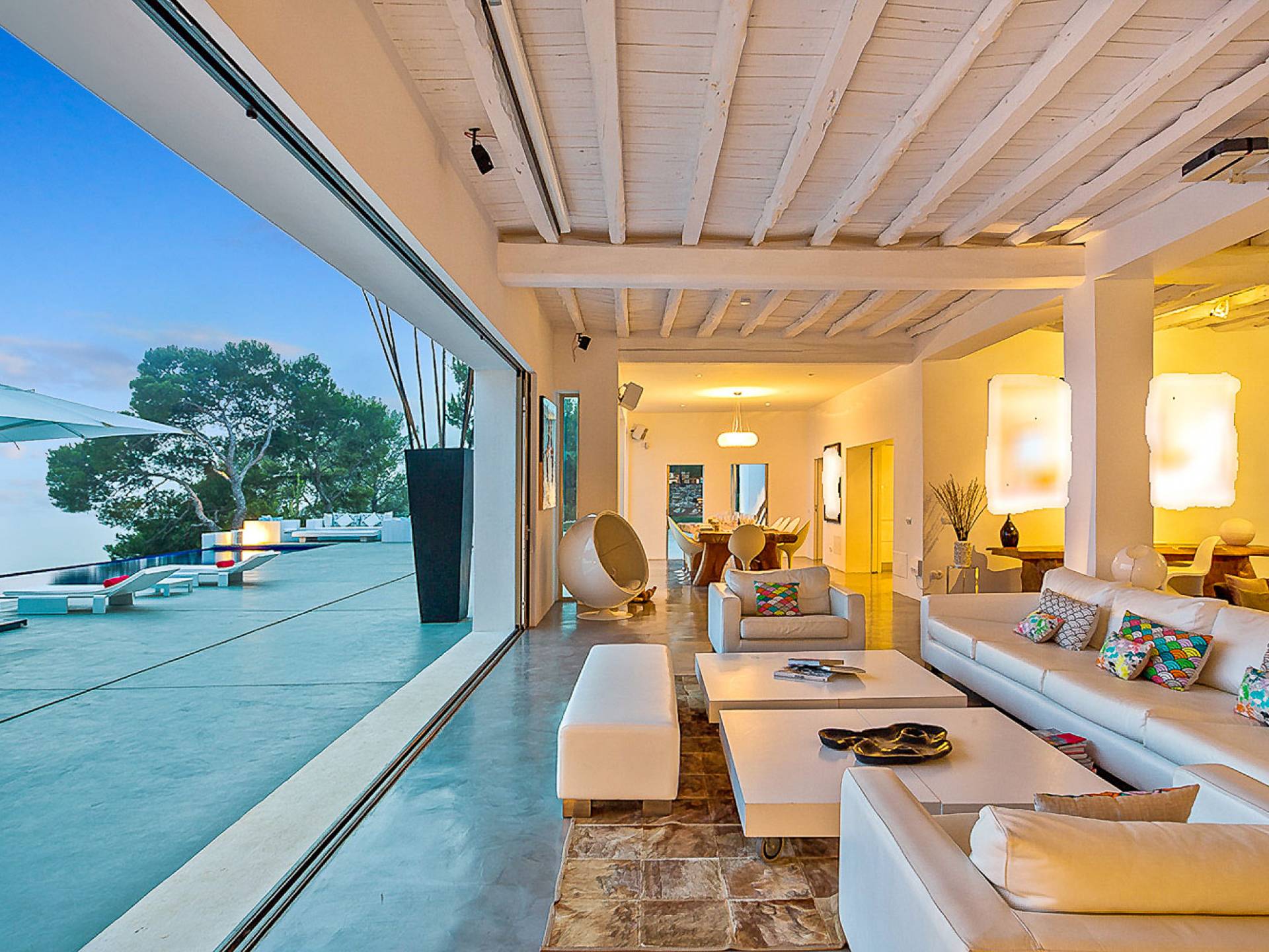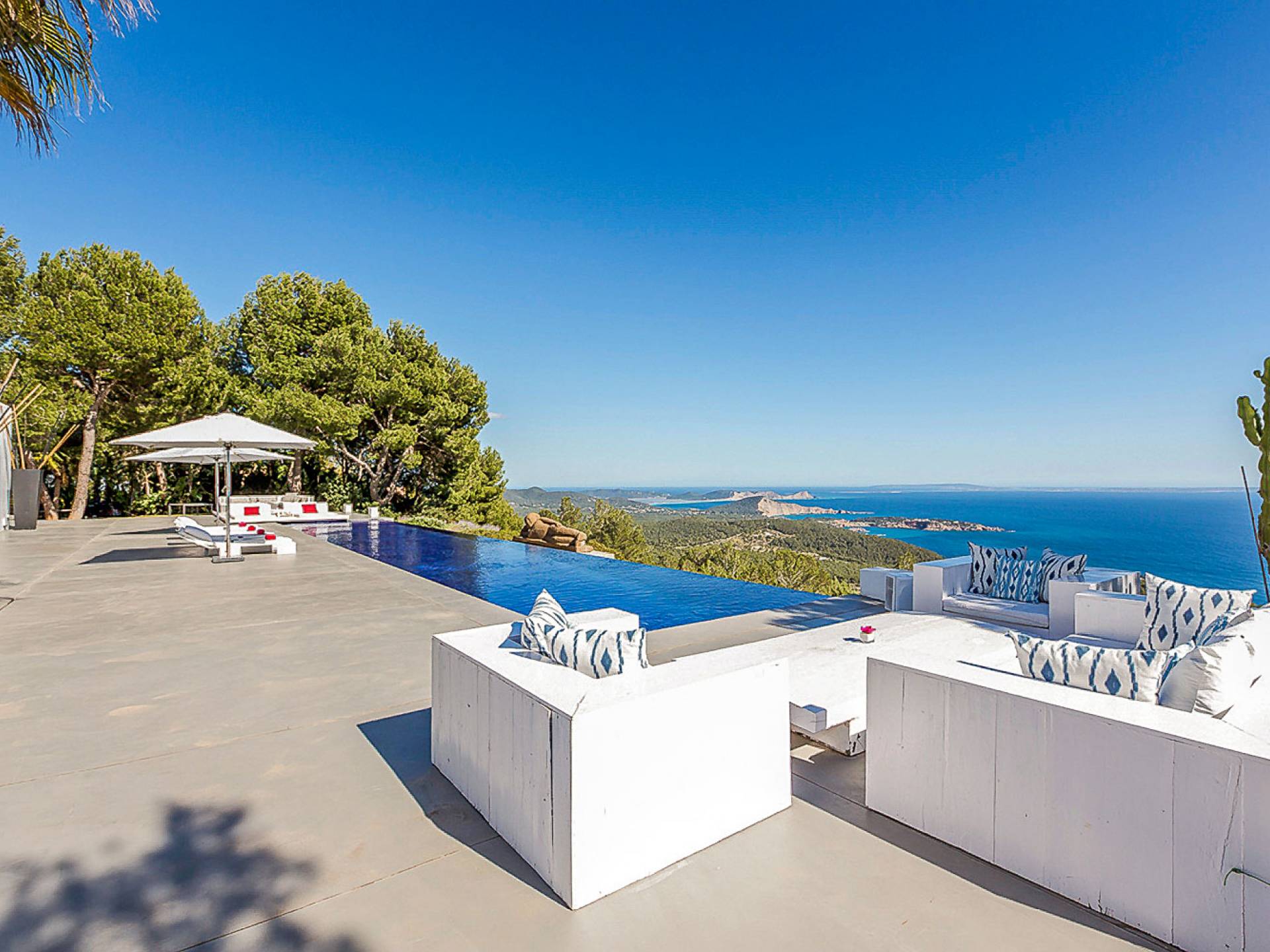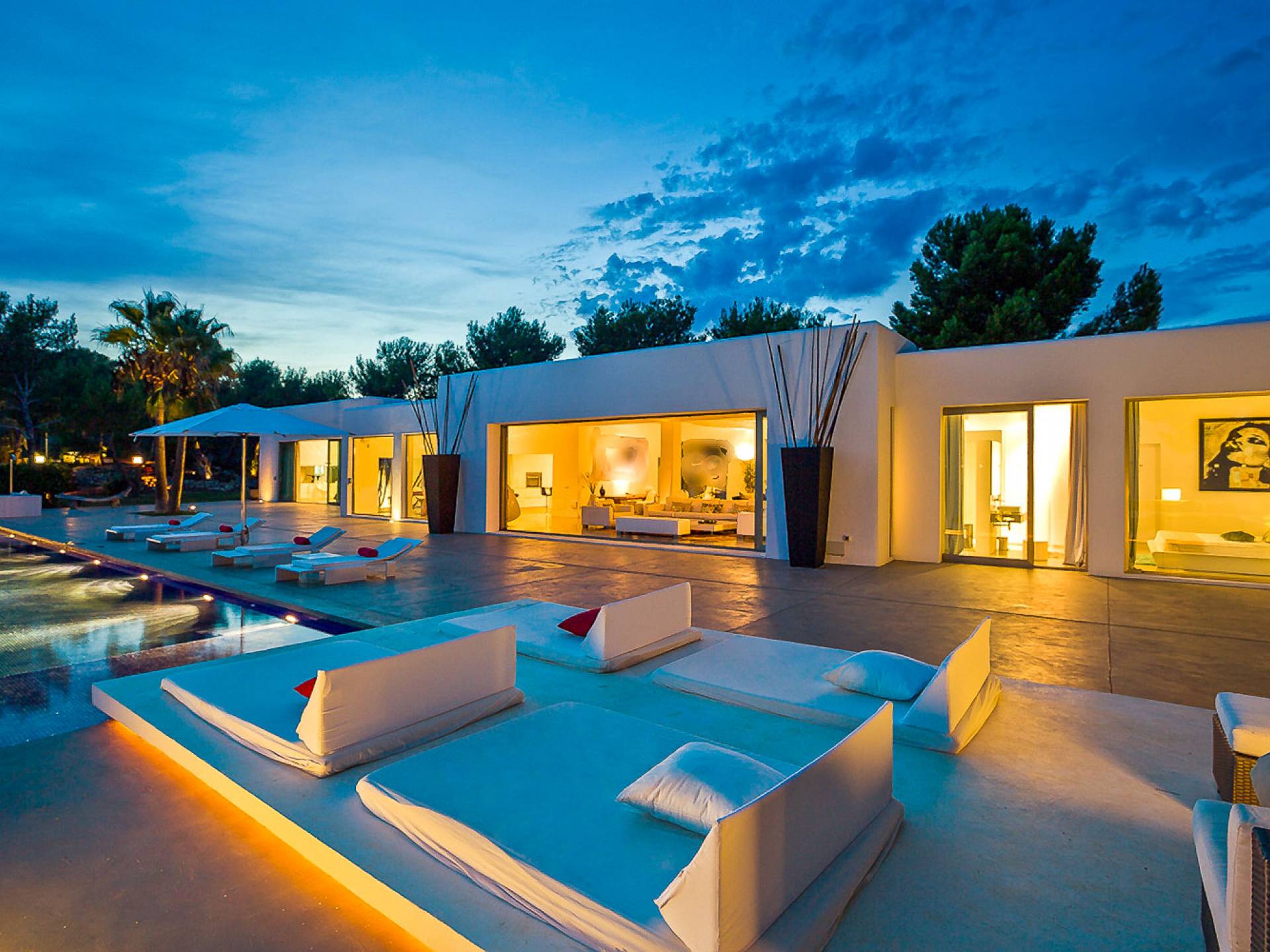 Umgeben von wunderschönen exotischen ibizenkischen Gärten, Rasenflächen und vielen geräumigen Chill-outs und Essbereichen im Freien, können Sie beim Musiksystem im Freien entspannen, während Sie auf den bequemen Sonnenliegen rund um den 10 x 5 m großen Infinity-Pool faulenzen. während Sie die herrliche Aussicht auf das Meer und Formentera bewundern. Der schön gepflegte Garten ist komplett eingezäunt und es gibt ausreichend Parkplätze für mehrere Autos.