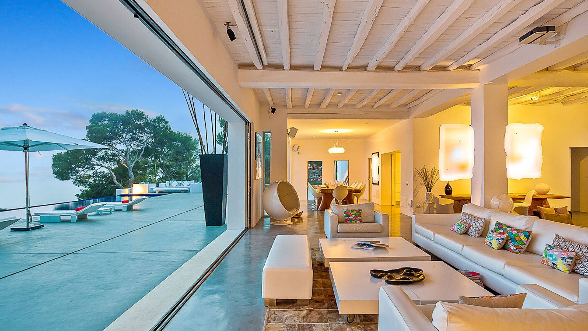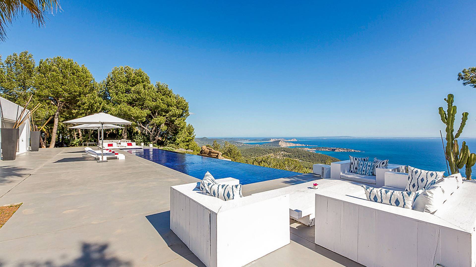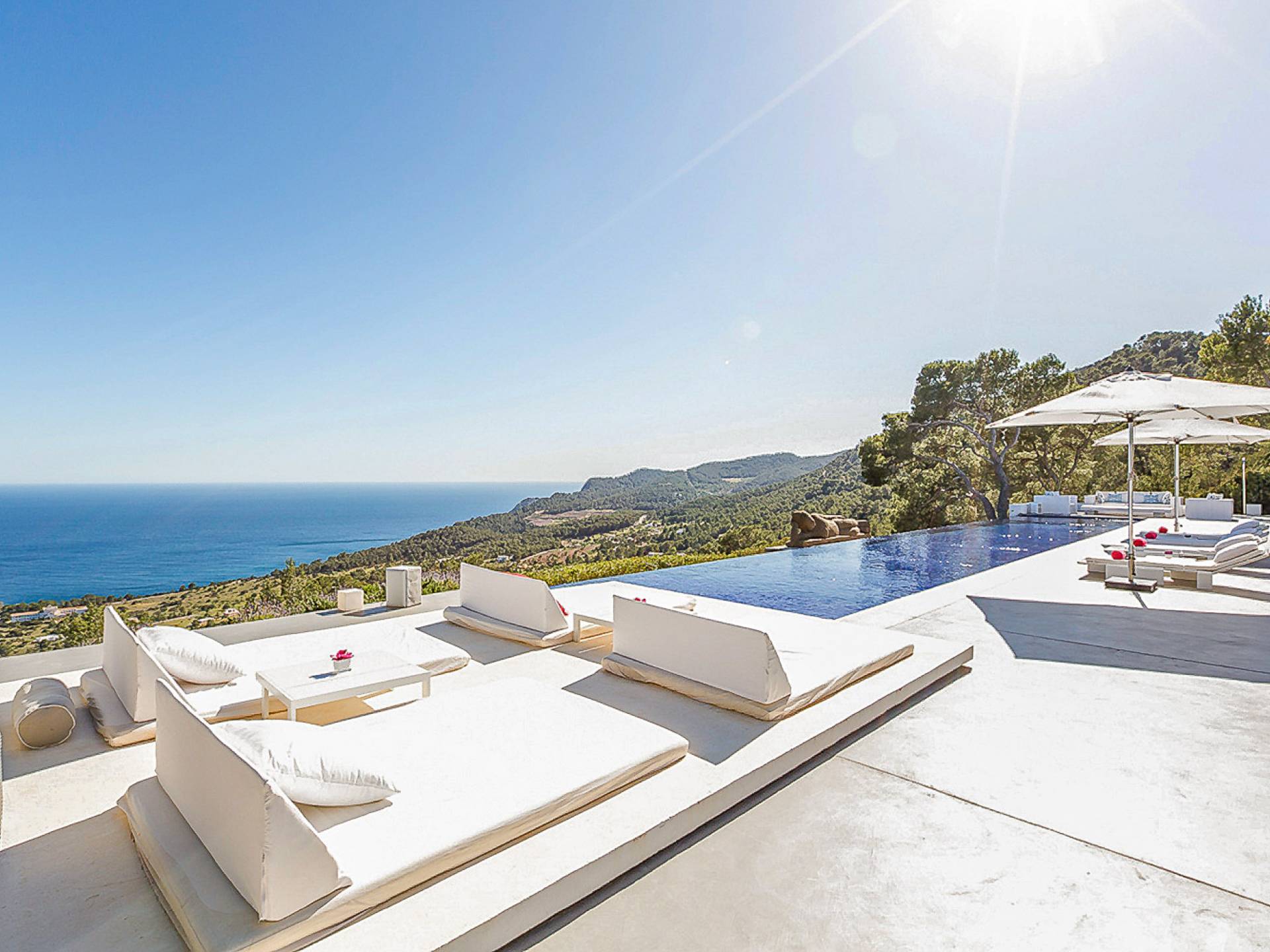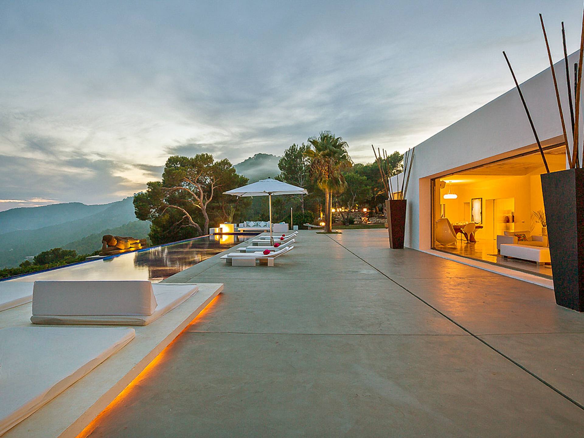 Umgeben von wunderschönen exotischen ibizenkischen Gärten, Rasenflächen und vielen geräumigen Chill-outs und Essbereichen im Freien, können Sie beim Musiksystem im Freien entspannen, während Sie auf den bequemen Sonnenliegen rund um den 10 x 5 m großen Infinity-Pool faulenzen. während Sie die herrliche Aussicht auf das Meer und Formentera bewundern. Der schön gepflegte Garten ist komplett eingezäunt und es gibt ausreichend Parkplätze für mehrere Autos.