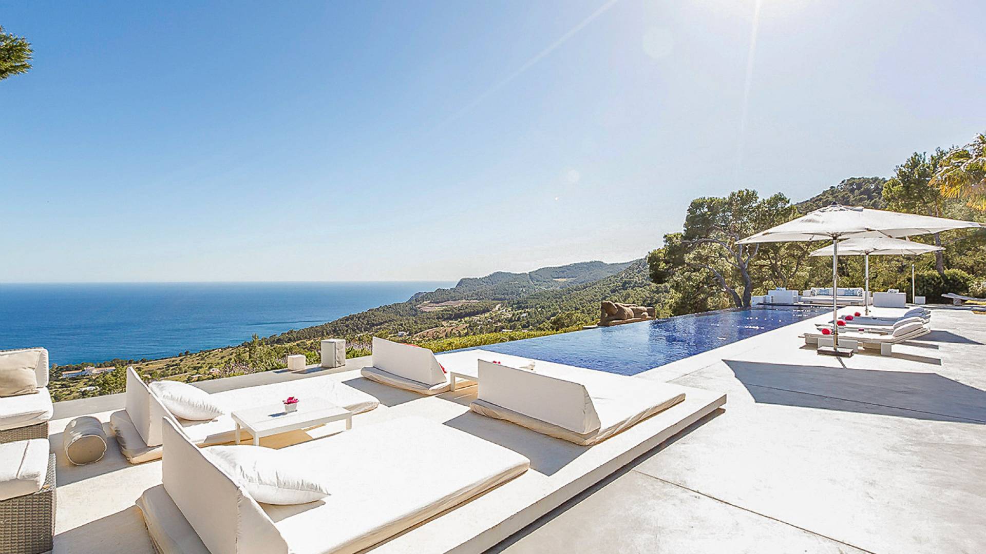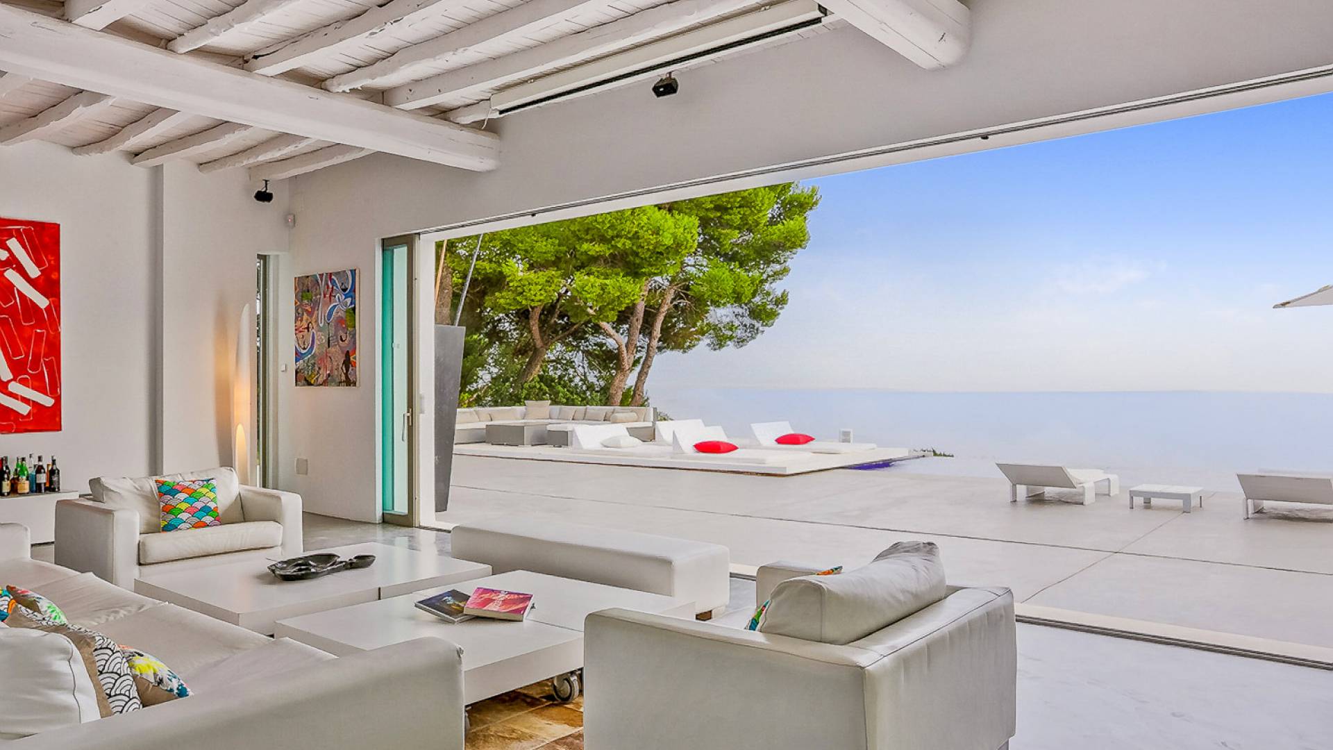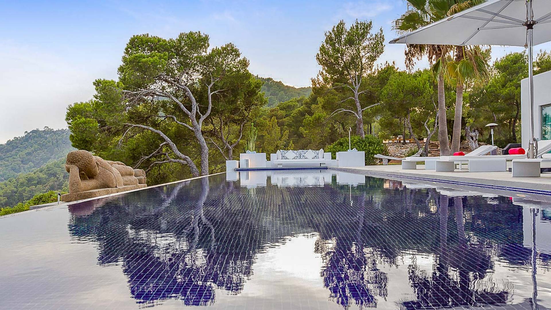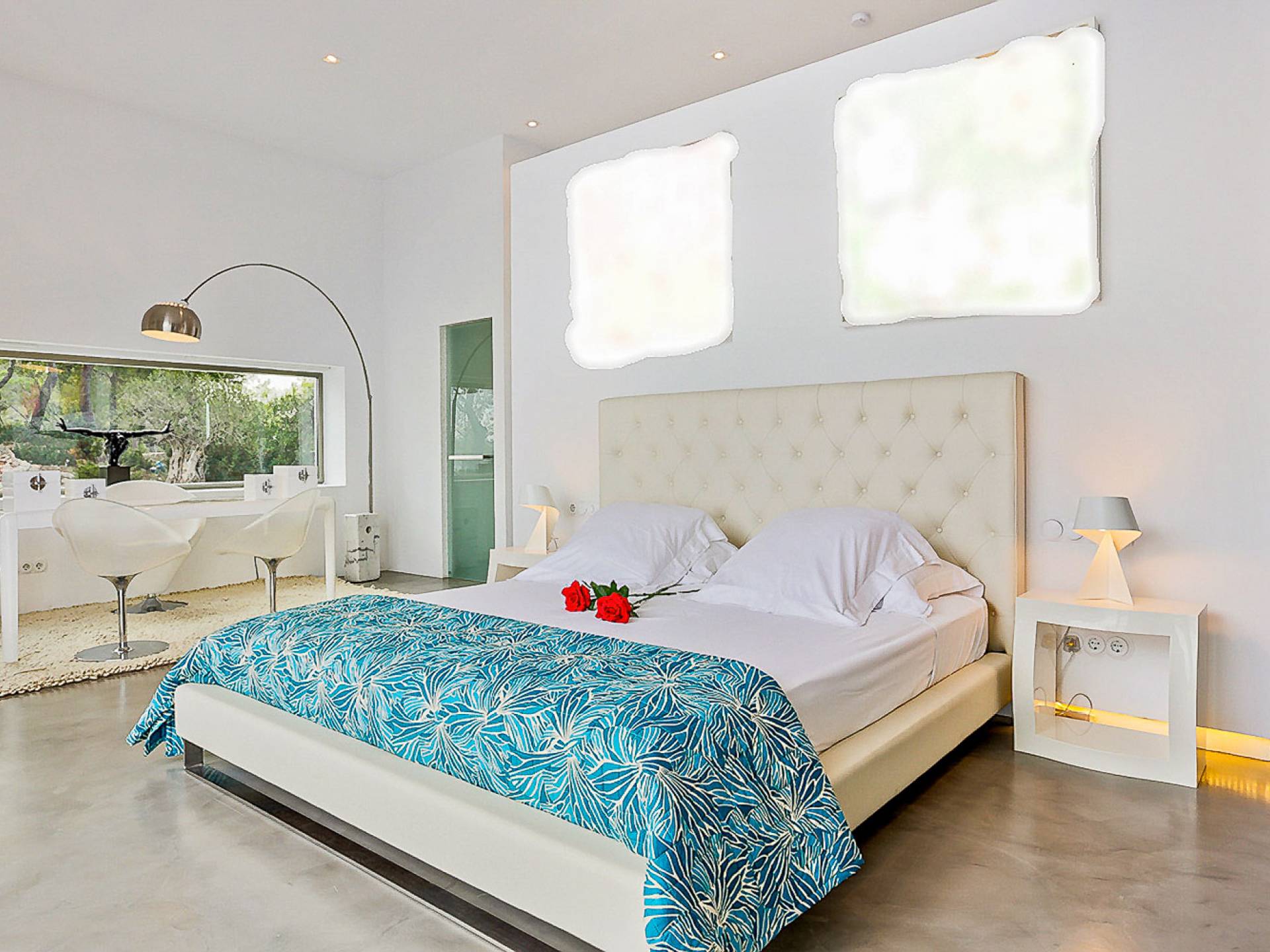 Umgeben von wunderschönen exotischen ibizenkischen Gärten, Rasenflächen und vielen geräumigen Chill-outs und Essbereichen im Freien, können Sie beim Musiksystem im Freien entspannen, während Sie auf den bequemen Sonnenliegen rund um den 10 x 5 m großen Infinity-Pool faulenzen. während Sie die herrliche Aussicht auf das Meer und Formentera bewundern. Der schön gepflegte Garten ist komplett eingezäunt und es gibt ausreichend Parkplätze für mehrere Autos.