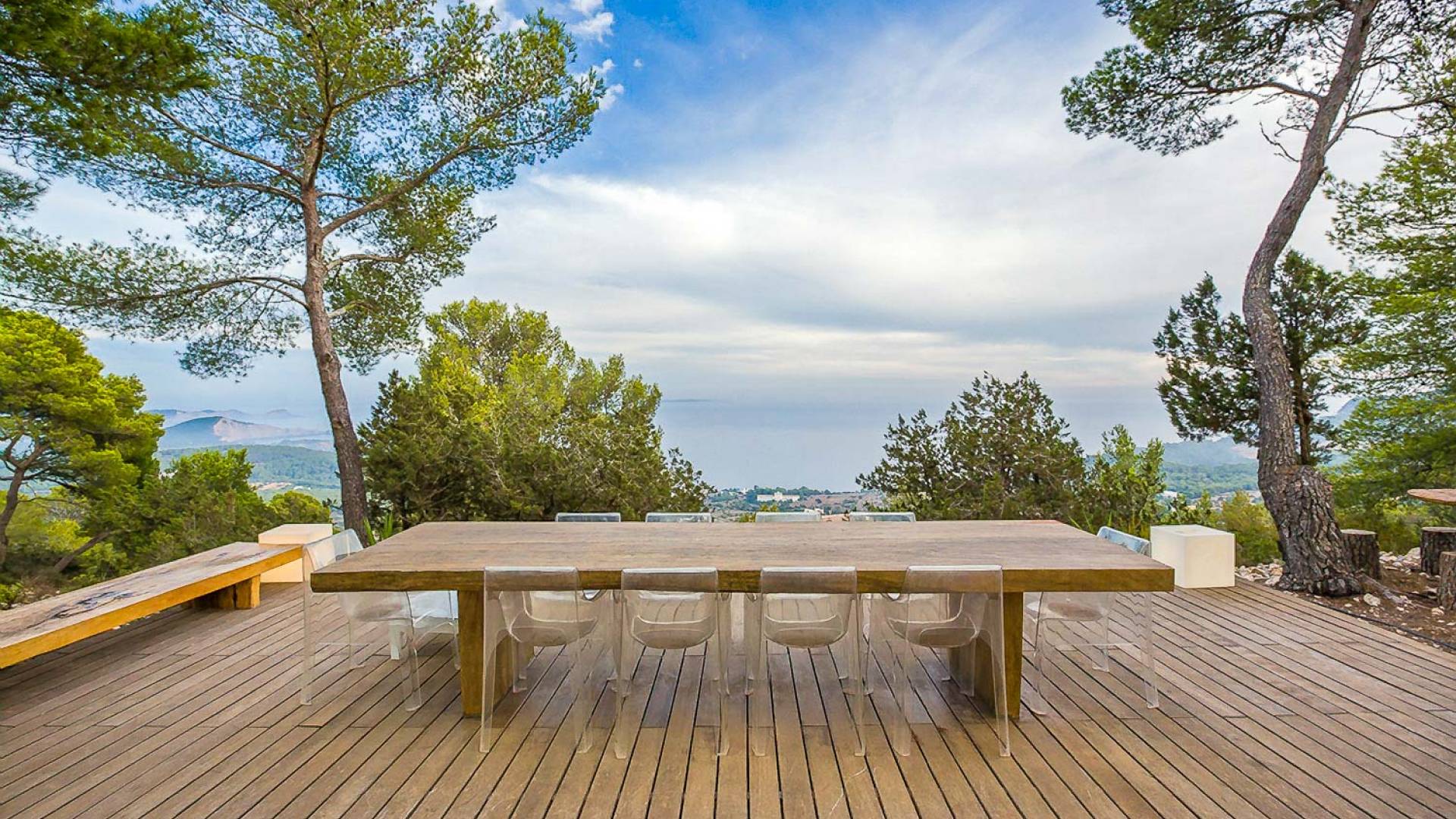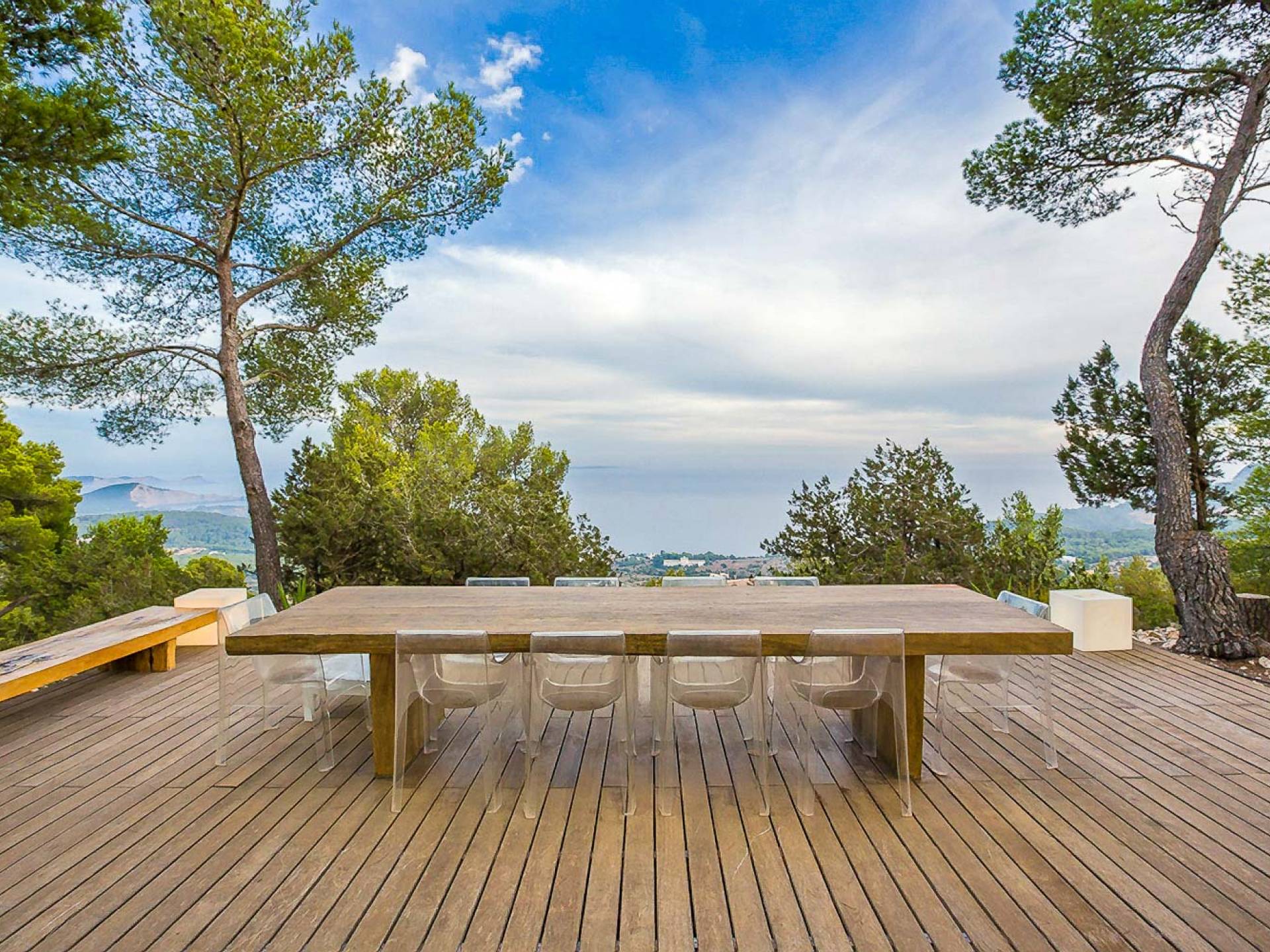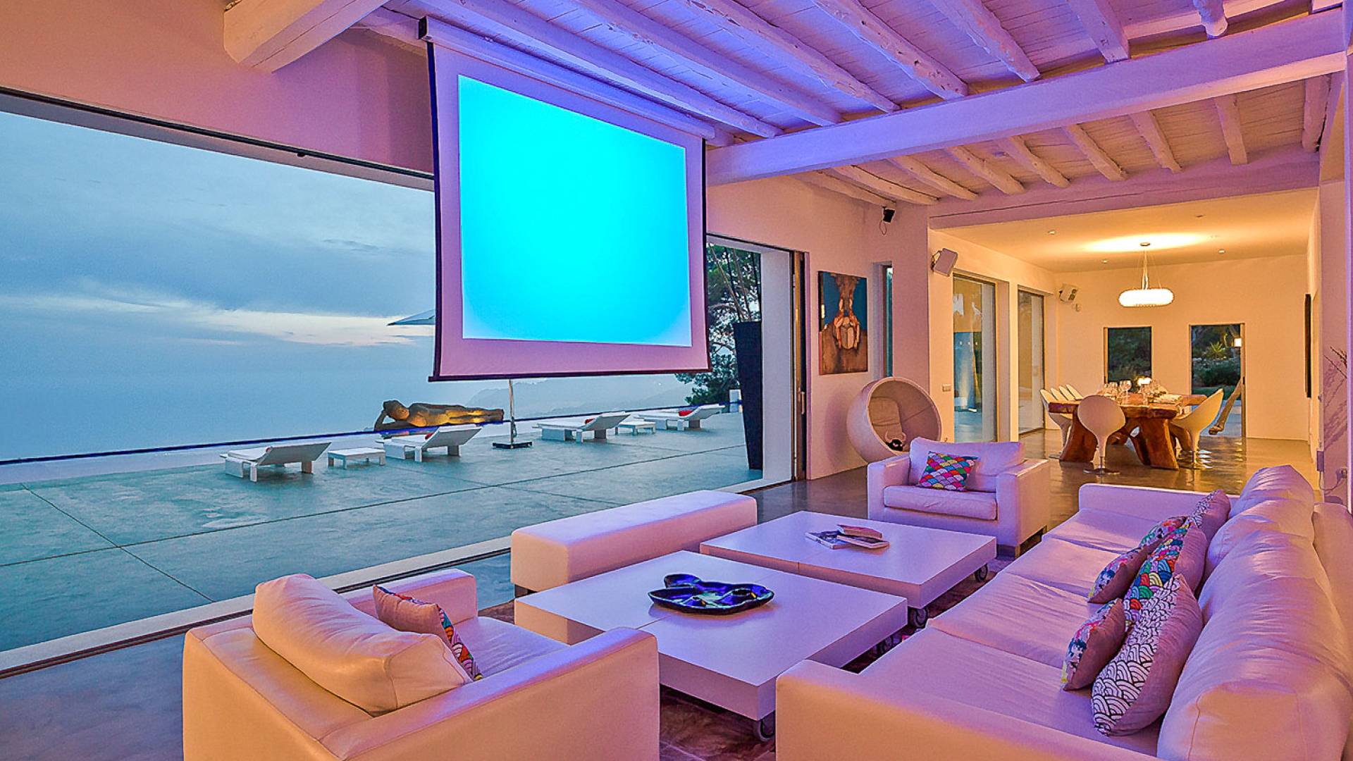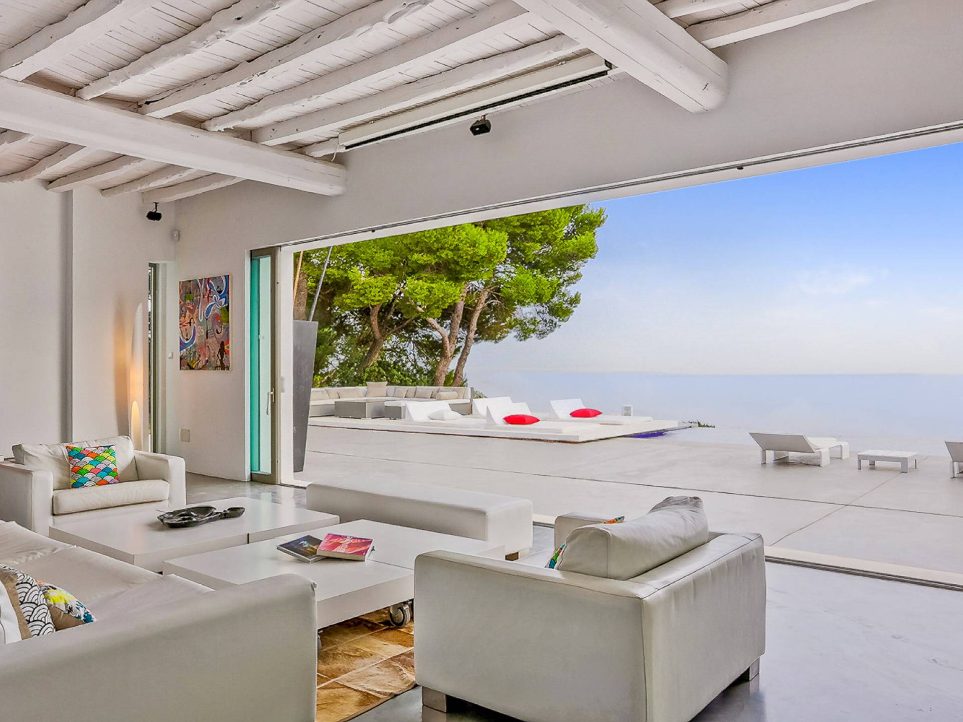 Umgeben von wunderschönen exotischen ibizenkischen Gärten, Rasenflächen und vielen geräumigen Chill-outs und Essbereichen im Freien, können Sie beim Musiksystem im Freien entspannen, während Sie auf den bequemen Sonnenliegen rund um den 10 x 5 m großen Infinity-Pool faulenzen. während Sie die herrliche Aussicht auf das Meer und Formentera bewundern. Der schön gepflegte Garten ist komplett eingezäunt und es gibt ausreichend Parkplätze für mehrere Autos.