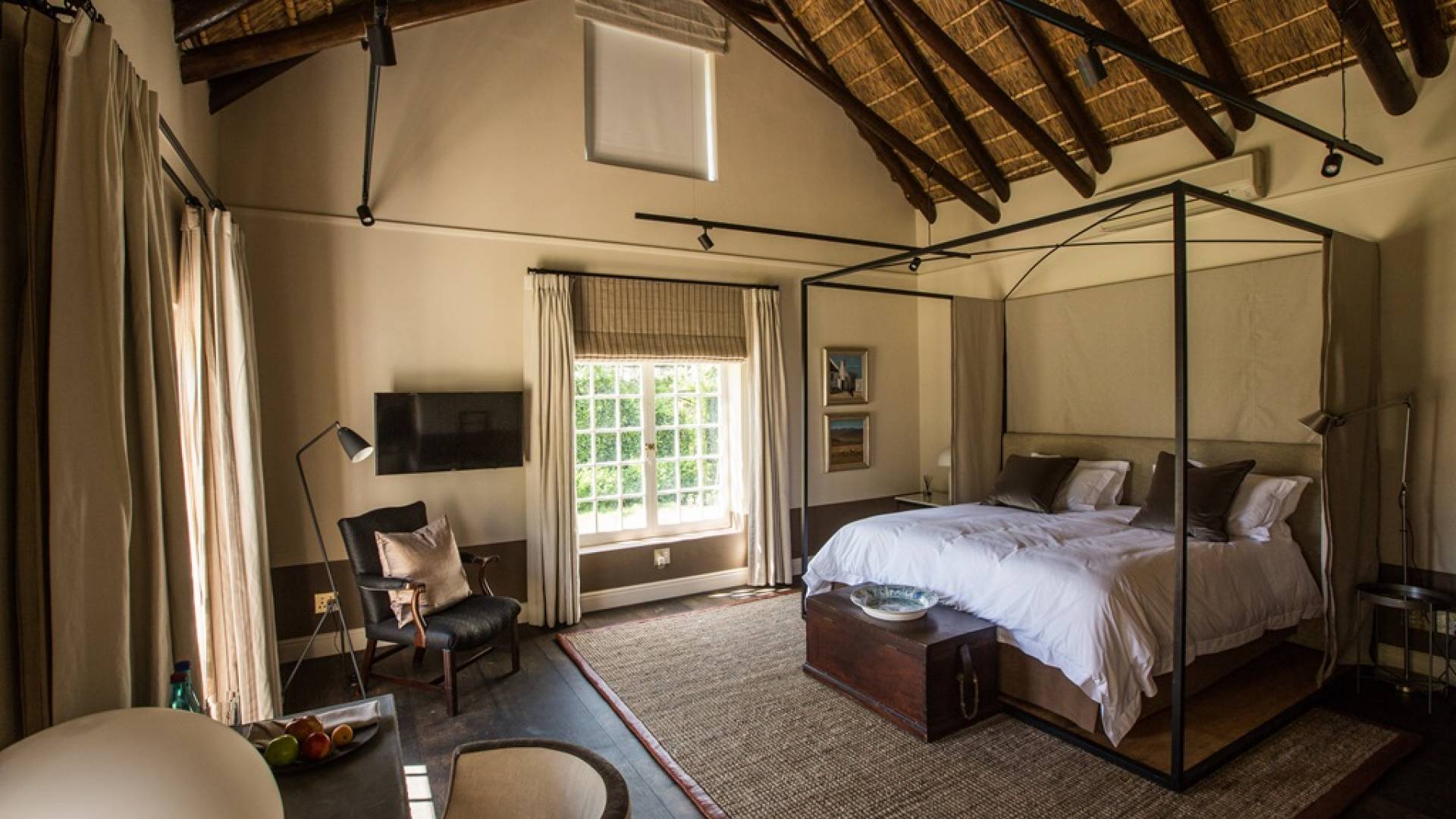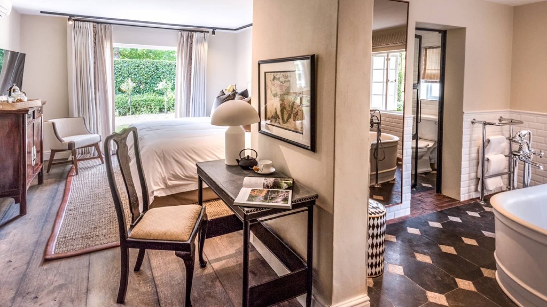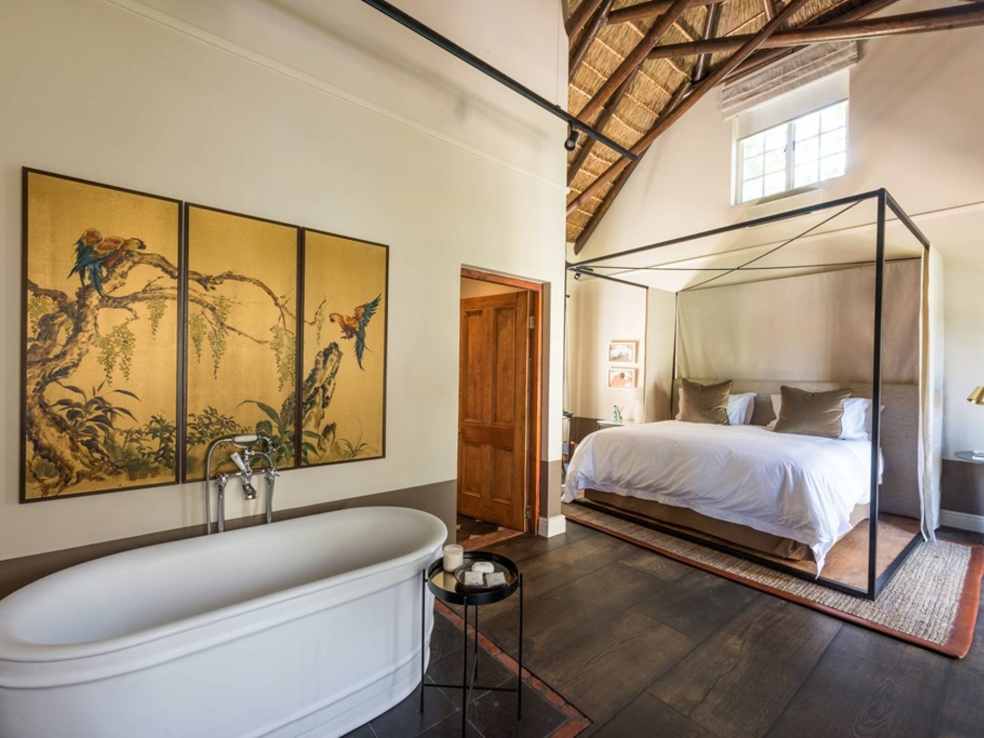Mit Design und Oberflächen von Jacques Erasmus von Hemelhuijs trifft modernes Design auf den klassischen Charme eines traditionellen kapholländischen Hauses in der La Clé Lodge. Fließende Innenräume, hohe Decken und große Wohnbereiche werden durch charmante Akzente und die rustikale Schönheit traditioneller Materialien hervorgehoben. Verbringen Sie eine intime Zeit zusammen in der Lodge in einem der fünf exquisit komfortablen Zimmer mit Bad oder buchen Sie es als Villa für einen Kurzurlaub mit Familie und Freunden.