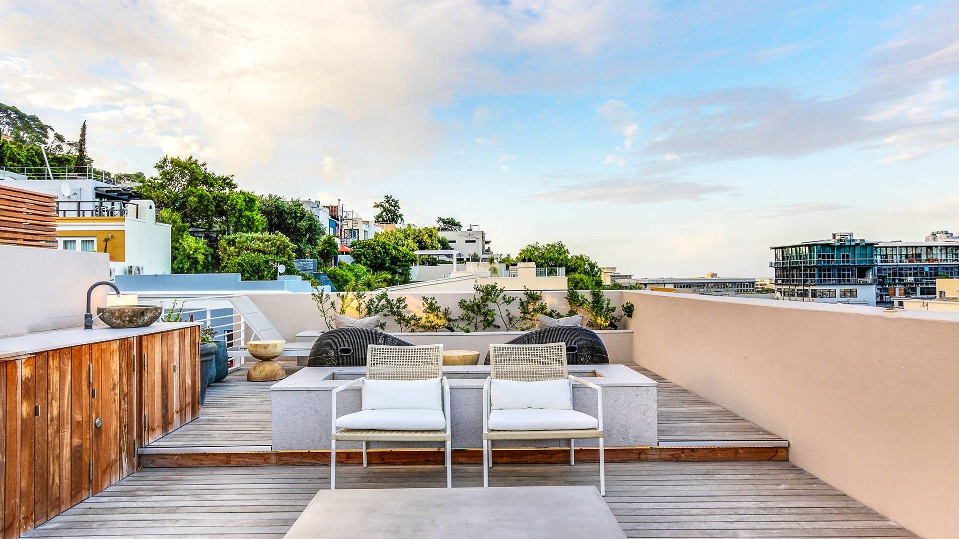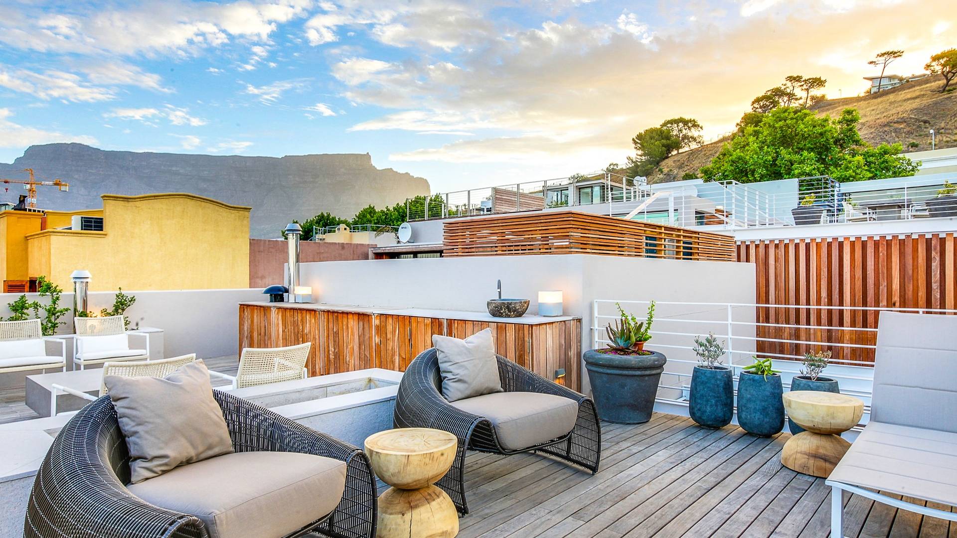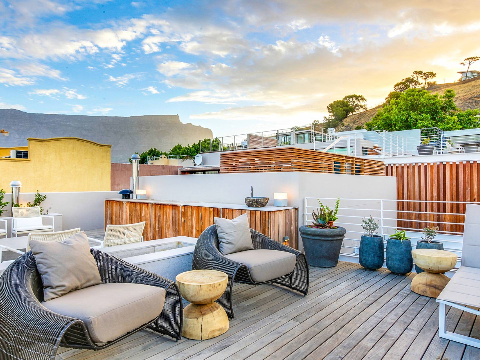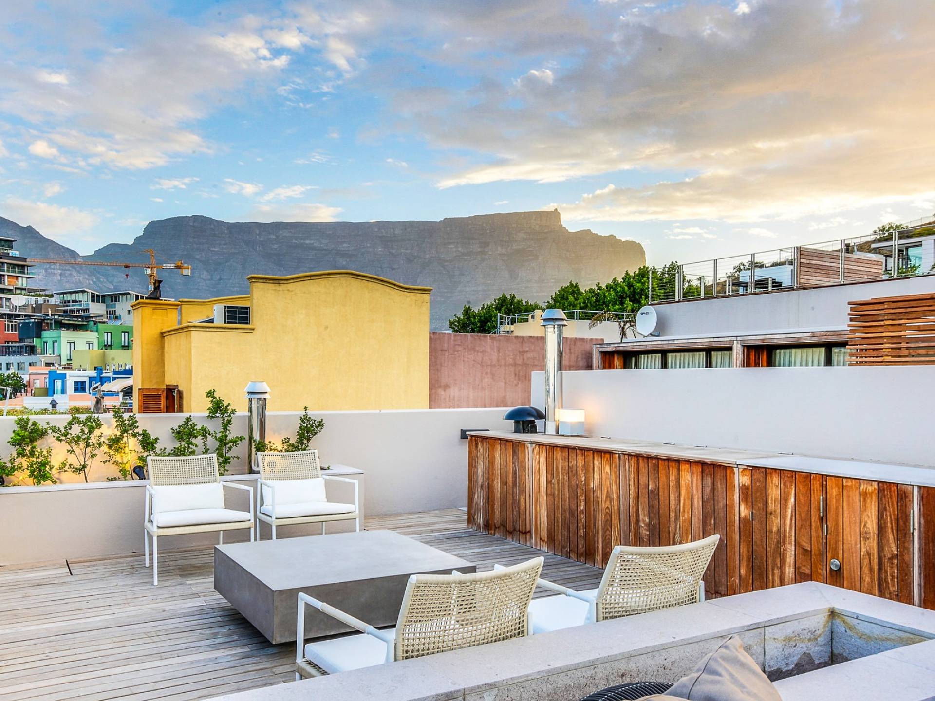Im Obergeschoss bietet die Dachterrasse den perfekten Platz im Freien für Unterhaltung. Mit Speisen im Freien, bequemen Sitzgelegenheiten und einer außergewöhnlichen Aussicht können Sie im Freien speisen oder einfach Getränke genießen, während Sie sich mit Freunden treffen. Nur wenige Gehminuten von der Wohnung entfernt finden Sie eine Reihe von Restaurants, Geschäften und Bars. Alternativ können Sie nach einer kurzen Autofahrt zur Tafelberg-Seilbahn, zur V & A Waterfront oder zu den Stränden von Clifton und Camps Bay gelangen.