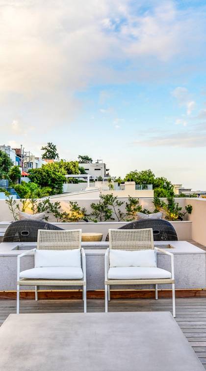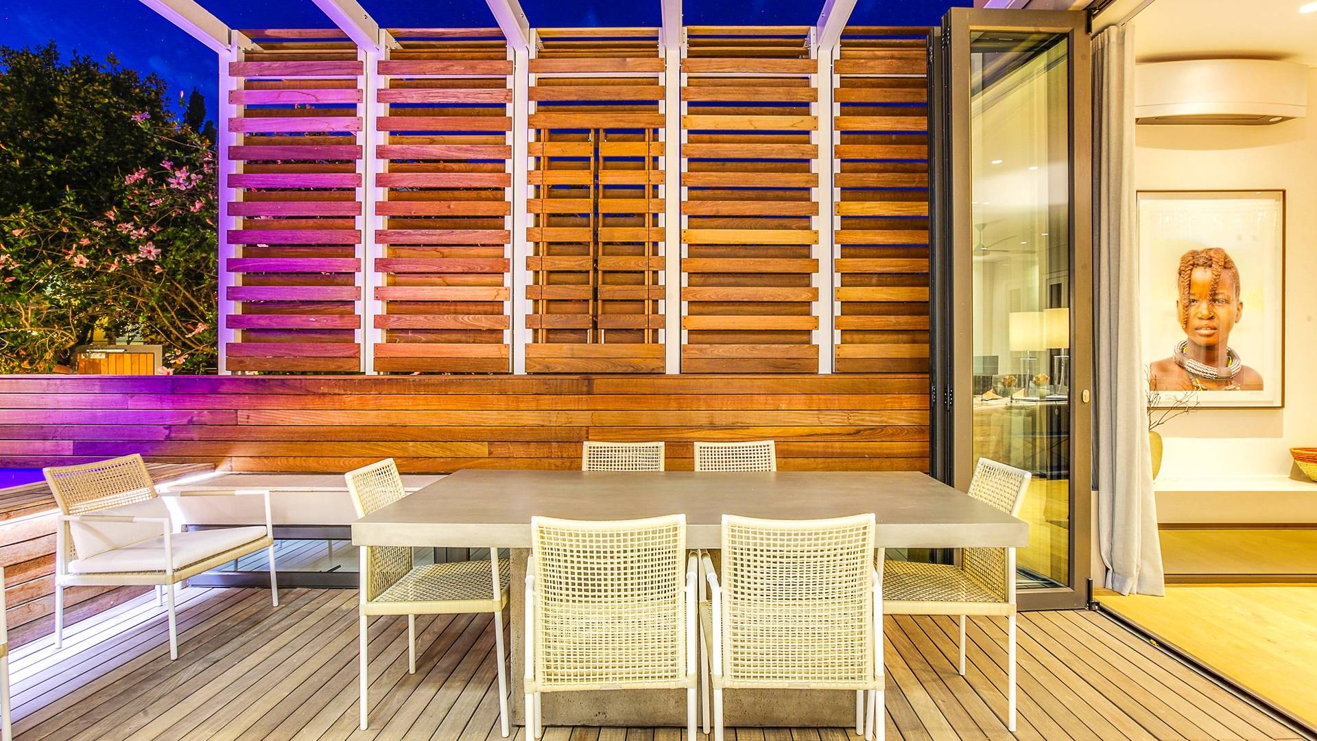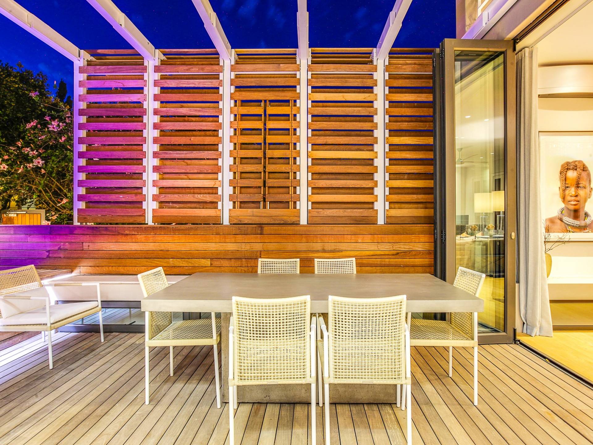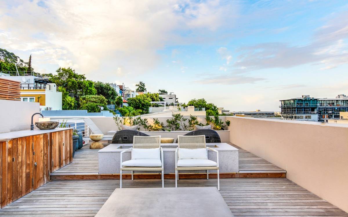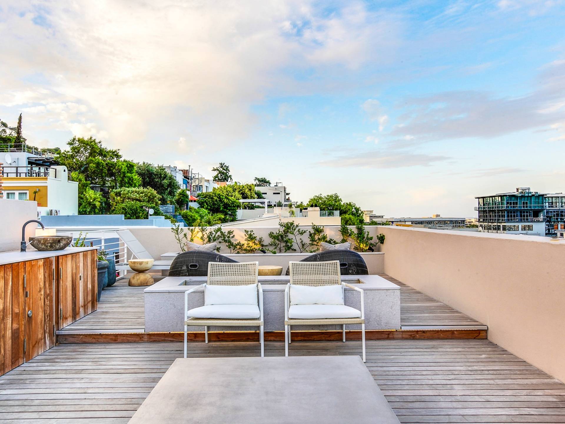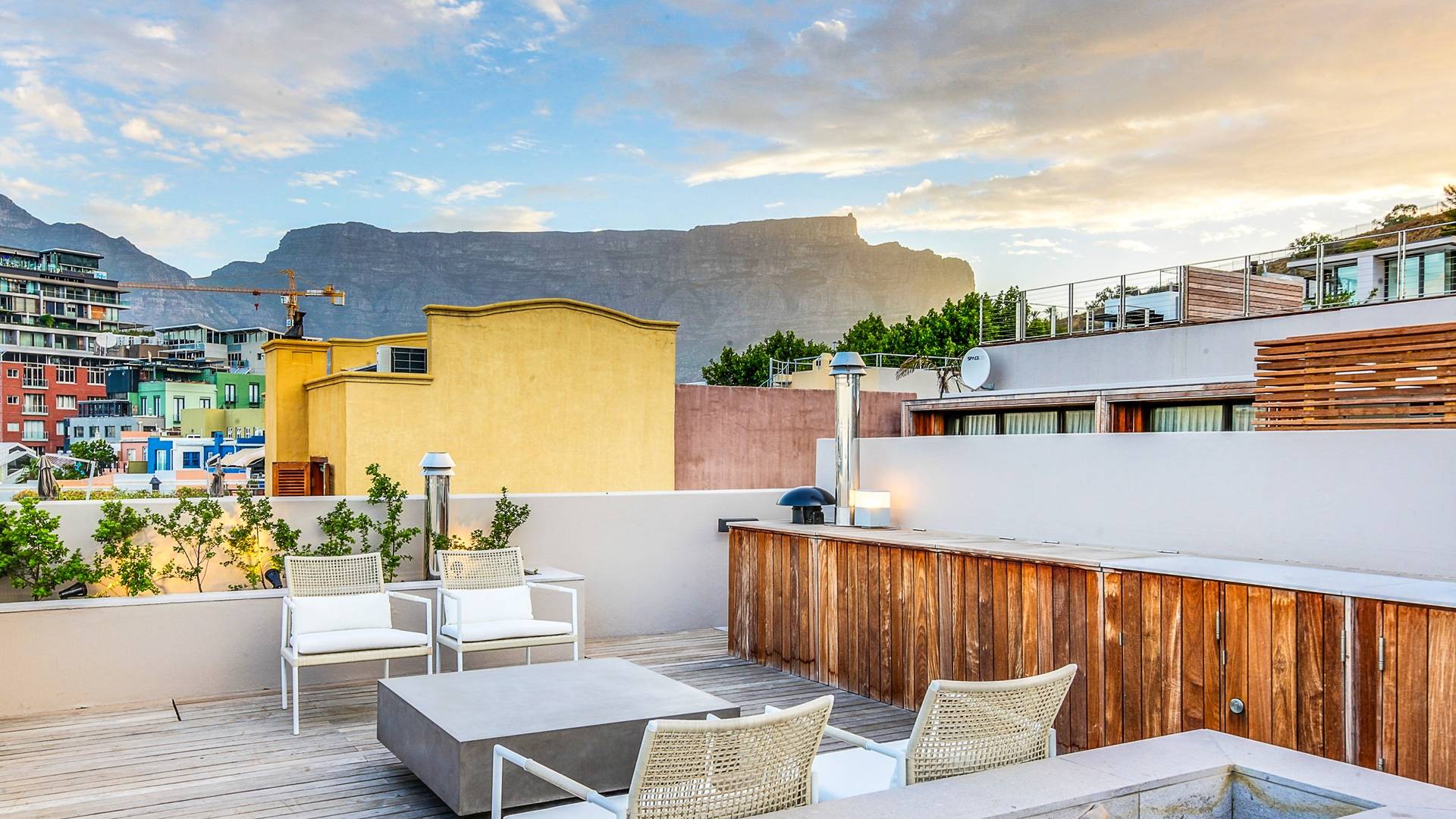 Im Obergeschoss bietet die Dachterrasse den perfekten Platz im Freien für Unterhaltung. Mit Speisen im Freien, bequemen Sitzgelegenheiten und einer außergewöhnlichen Aussicht können Sie im Freien speisen oder einfach Getränke genießen, während Sie sich mit Freunden treffen. Nur wenige Gehminuten von der Wohnung entfernt finden Sie eine Reihe von Restaurants, Geschäften und Bars. Alternativ können Sie nach einer kurzen Autofahrt zur Tafelberg-Seilbahn, zur V & A Waterfront oder zu den Stränden von Clifton und Camps Bay gelangen.