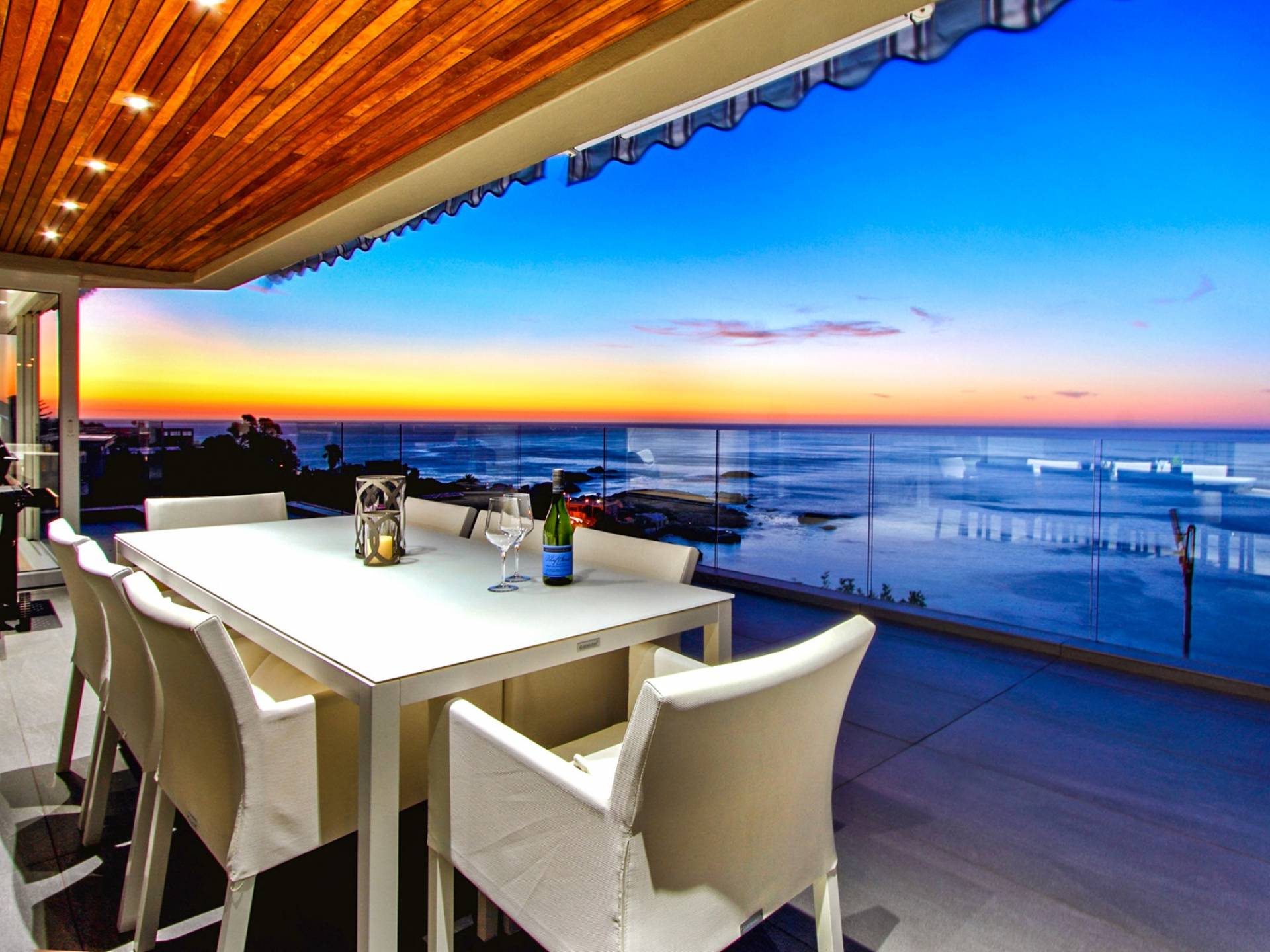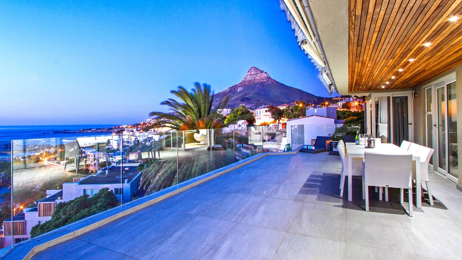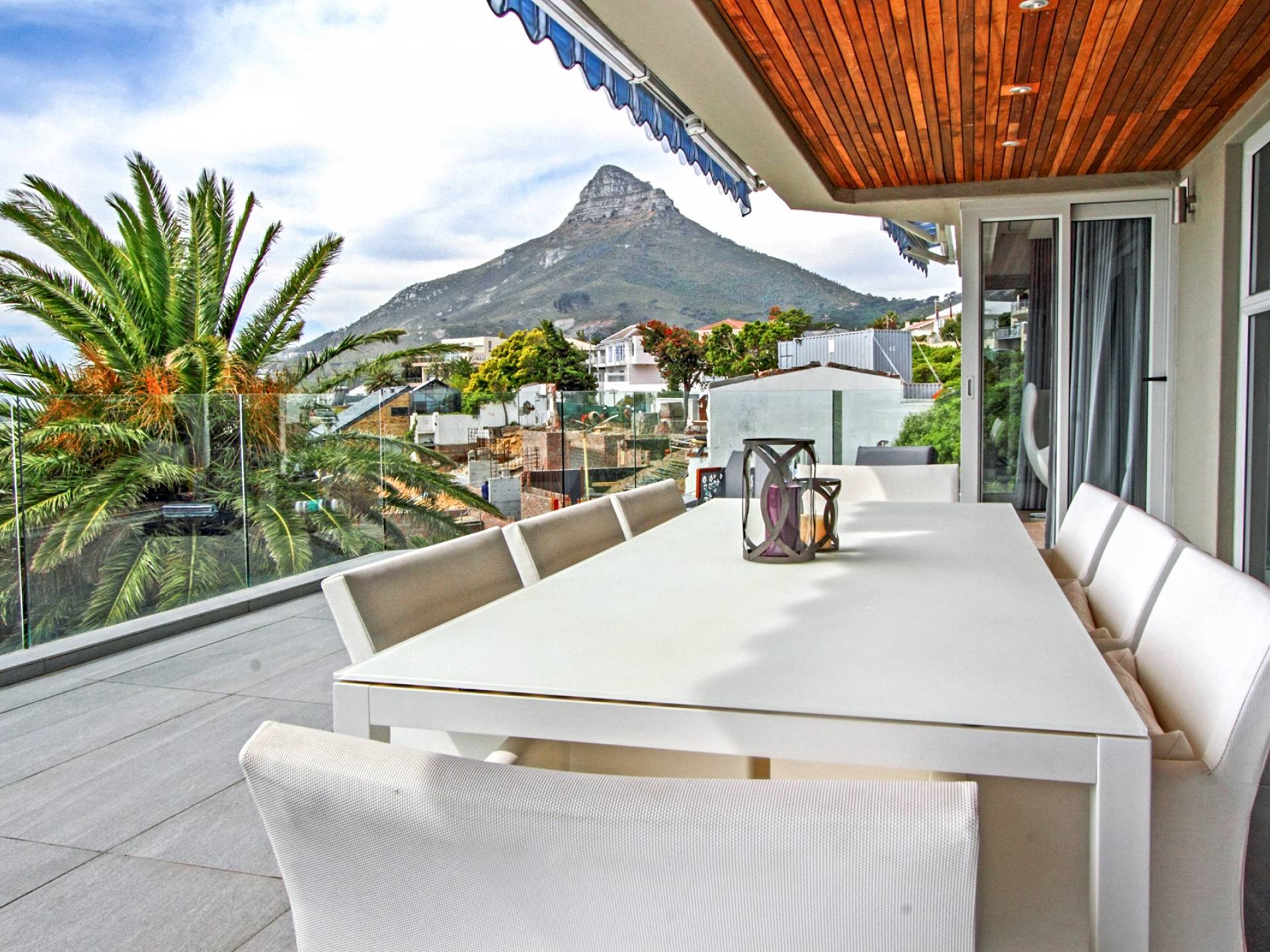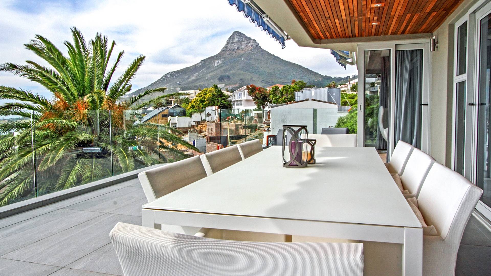 Alle Zimmer öffnen sich auf eine große, geflieste Terrasse mit herrlicher Aussicht. Eine schicke Lounge im Freien, ein Gasgrill und ein Esstisch für acht Personen sind ideal für unterhaltsame Sommerabende, Sonnenliegen sind perfekt zum Entspannen und Genießen der Aussicht. Ein gemütlicher, geschützter Innenhof neben der Küche beherbergt einen glitzernden Swimmingpool. Die Wohnung ist mit einem Alarm vollständig gesichert und bietet Parkplätze abseits der Straße in Form eines privaten Parkplatzes sowie drei Besucherbuchten. Eine kurze Fahrt bringt Sie zu den wunderschönen Stränden von Camps Bay und Clifton sowie zum Tafelberg und ins Stadtzentrum.