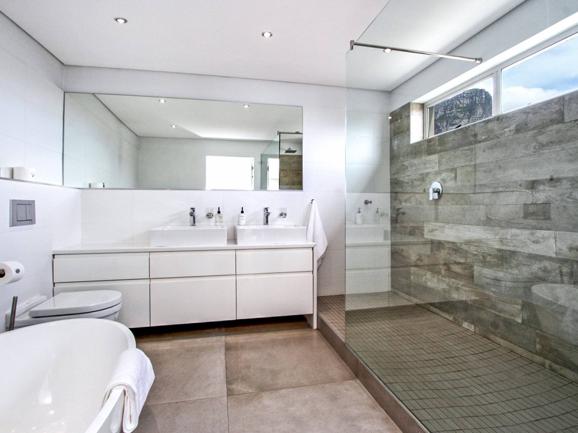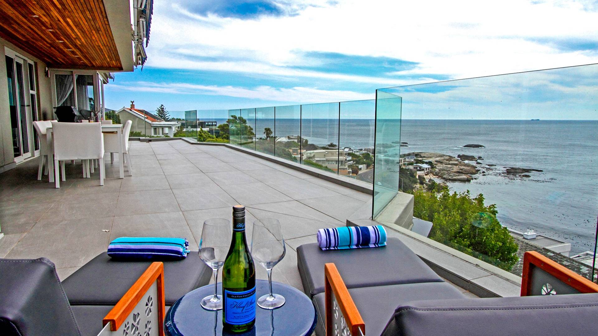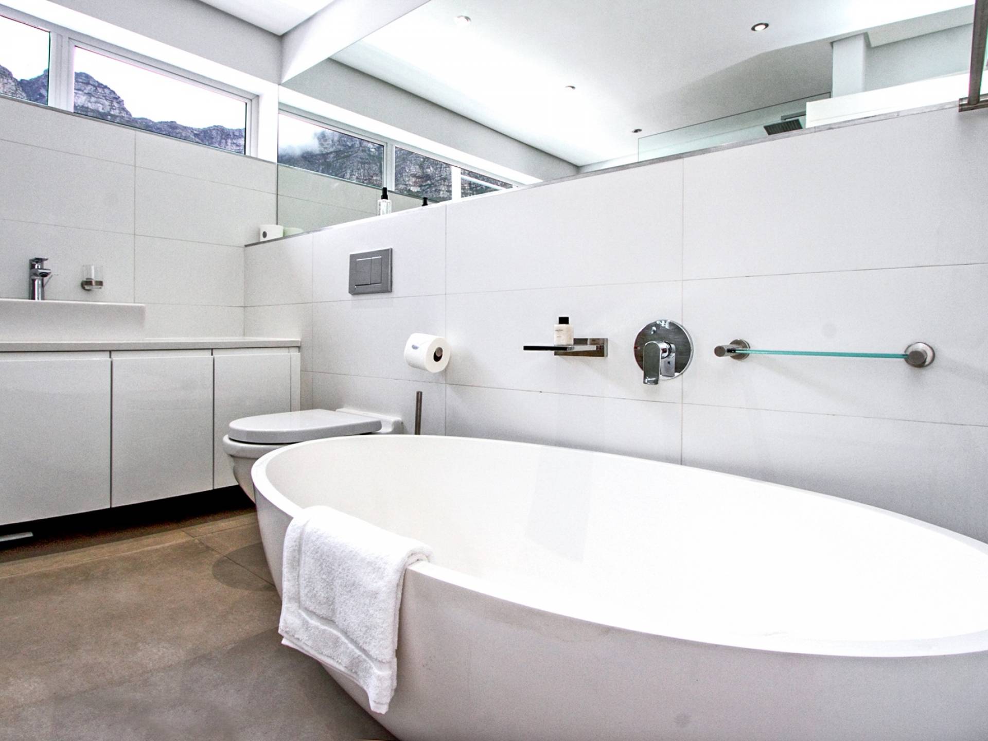 Alle Zimmer öffnen sich auf eine große, geflieste Terrasse mit herrlicher Aussicht. Eine schicke Lounge im Freien, ein Gasgrill und ein Esstisch für acht Personen sind ideal für unterhaltsame Sommerabende, Sonnenliegen sind perfekt zum Entspannen und Genießen der Aussicht. Ein gemütlicher, geschützter Innenhof neben der Küche beherbergt einen glitzernden Swimmingpool. Die Wohnung ist mit einem Alarm vollständig gesichert und bietet Parkplätze abseits der Straße in Form eines privaten Parkplatzes sowie drei Besucherbuchten. Eine kurze Fahrt bringt Sie zu den wunderschönen Stränden von Camps Bay und Clifton sowie zum Tafelberg und ins Stadtzentrum.
