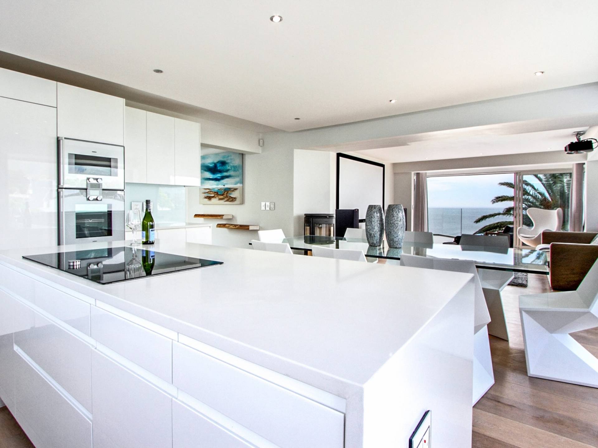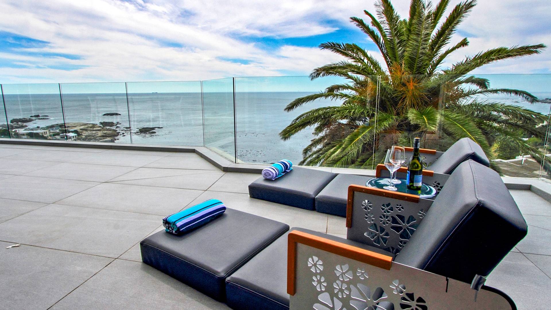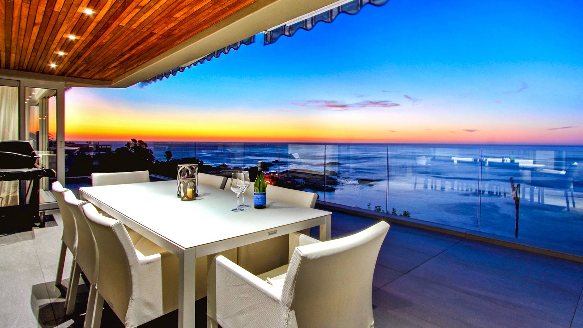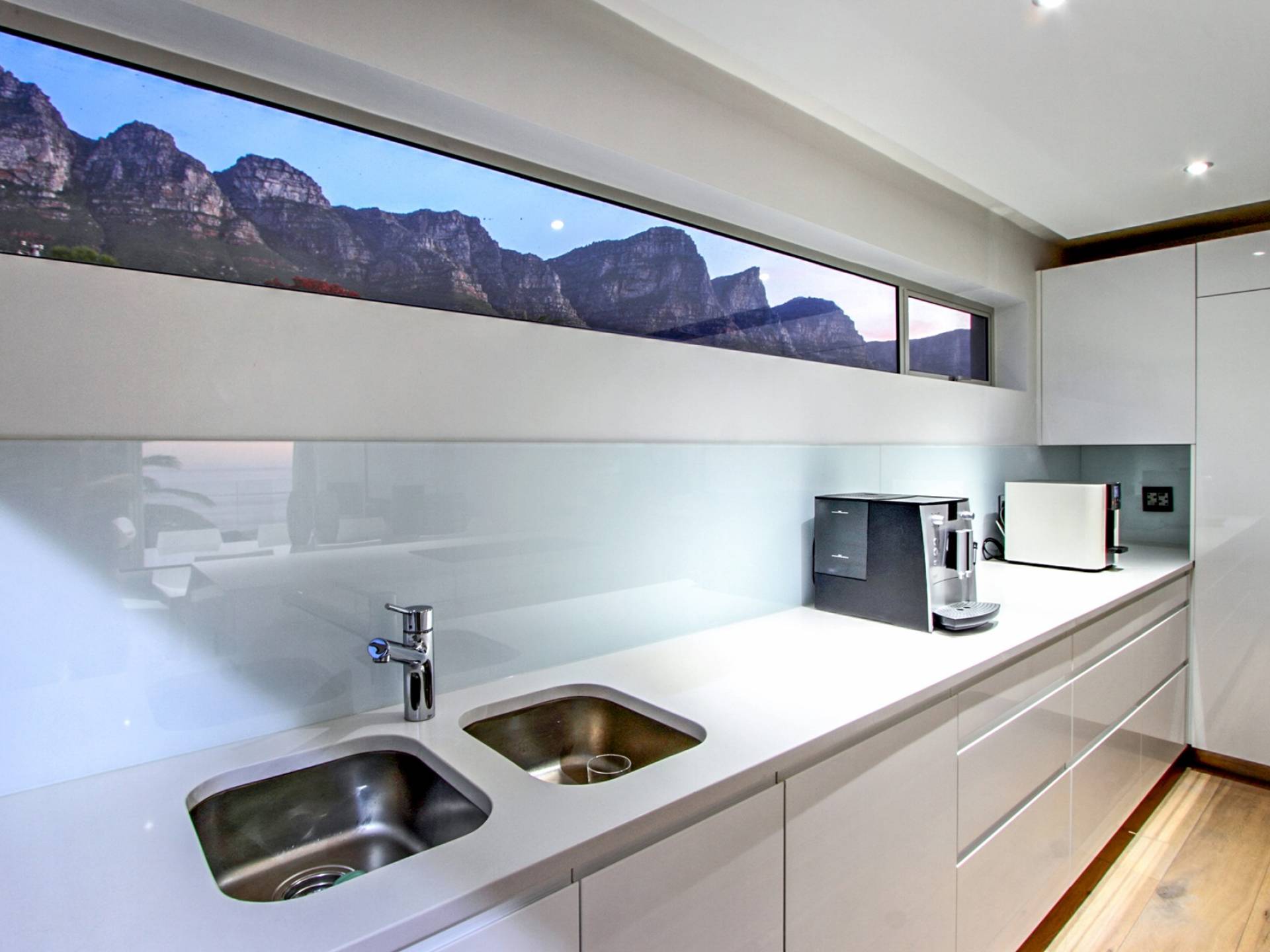 Alle Zimmer öffnen sich auf eine große, geflieste Terrasse mit herrlicher Aussicht. Eine schicke Lounge im Freien, ein Gasgrill und ein Esstisch für acht Personen sind ideal für unterhaltsame Sommerabende, Sonnenliegen sind perfekt zum Entspannen und Genießen der Aussicht. Ein gemütlicher, geschützter Innenhof neben der Küche beherbergt einen glitzernden Swimmingpool. Die Wohnung ist mit einem Alarm vollständig gesichert und bietet Parkplätze abseits der Straße in Form eines privaten Parkplatzes sowie drei Besucherbuchten. Eine kurze Fahrt bringt Sie zu den wunderschönen Stränden von Camps Bay und Clifton sowie zum Tafelberg und ins Stadtzentrum.