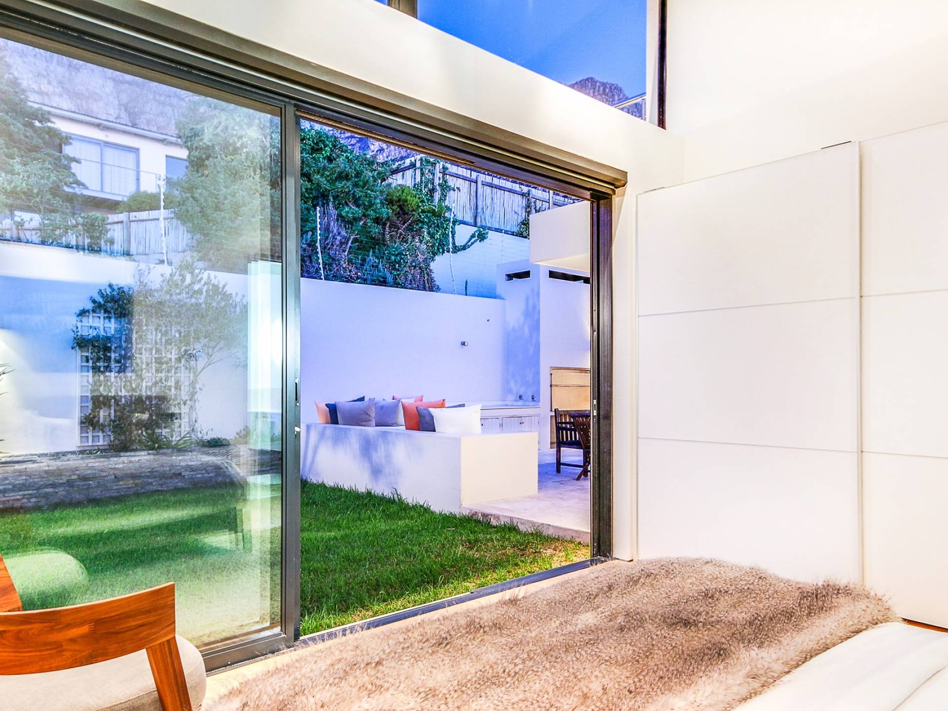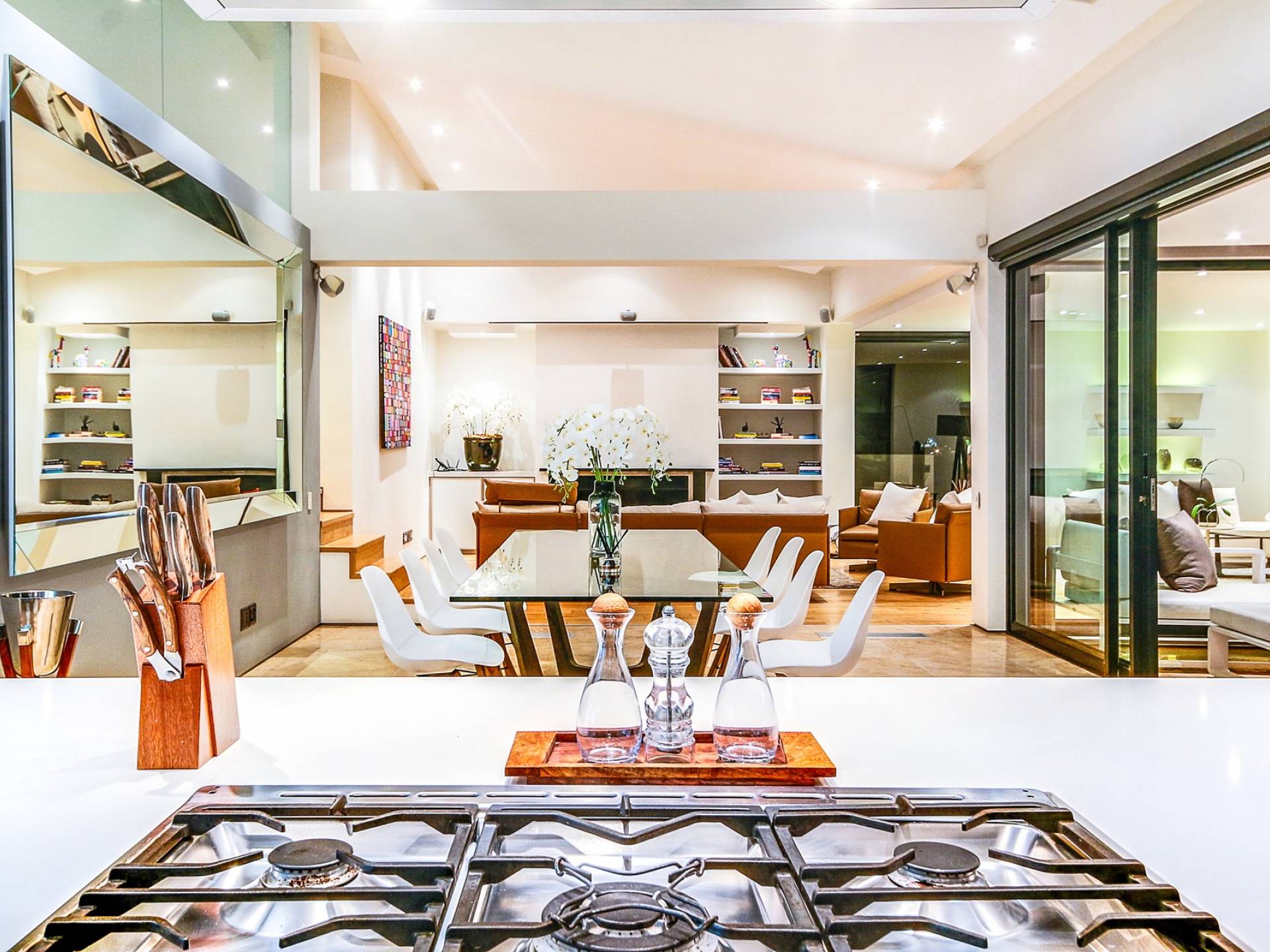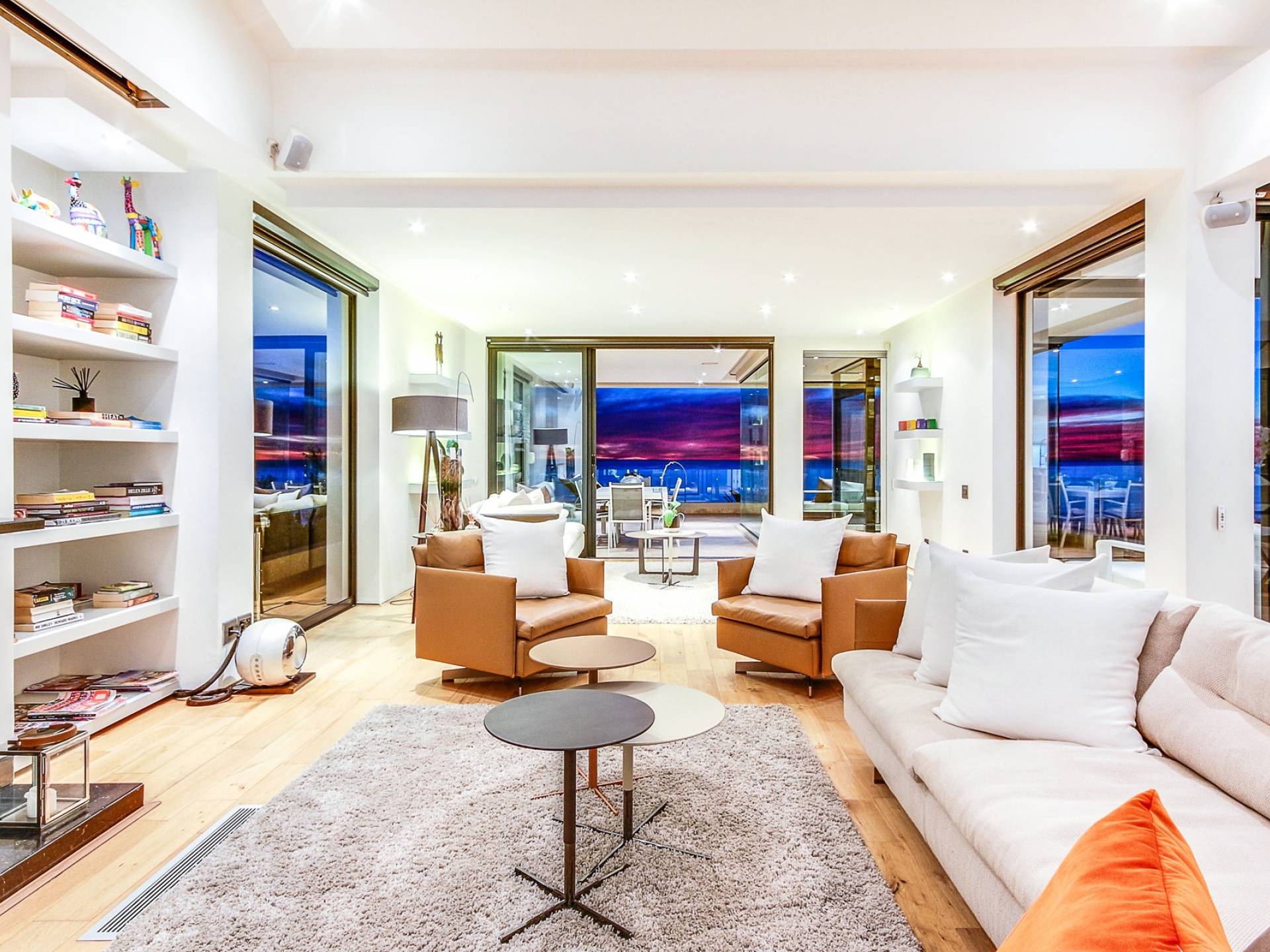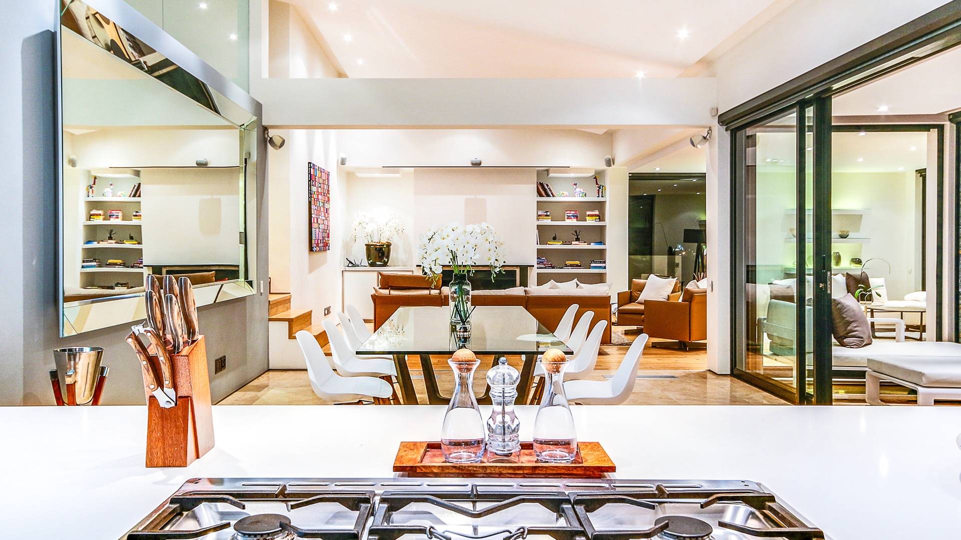 Dieses moderne Anwesen befindet sich an der Spitze von Camps Bay und bietet einen großartigen Blick auf das Meer und die Berge, egal in welchem Bereich des Hauses Sie sich befinden. Im Inneren sind die Zimmer hell und geräumig.
