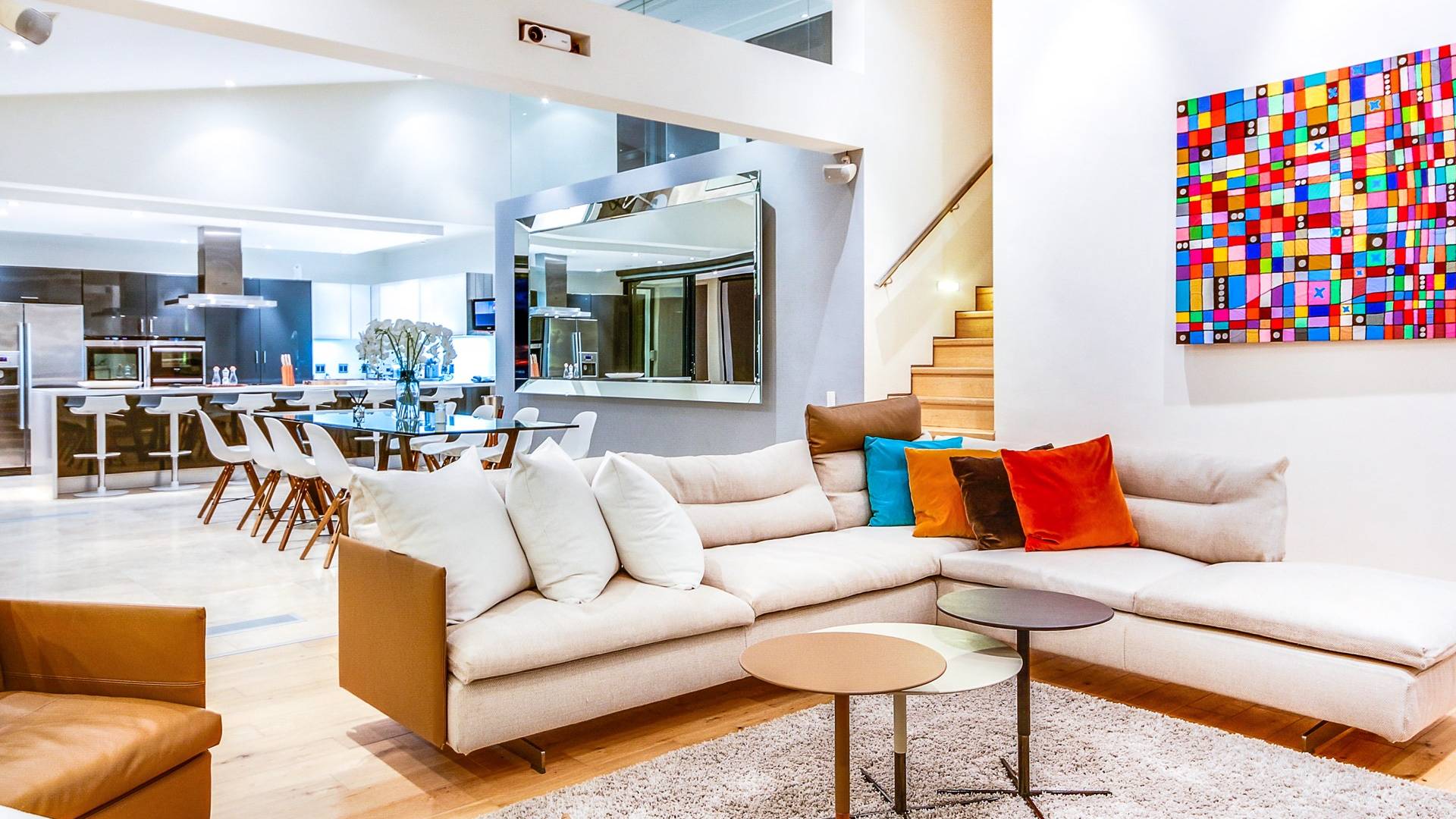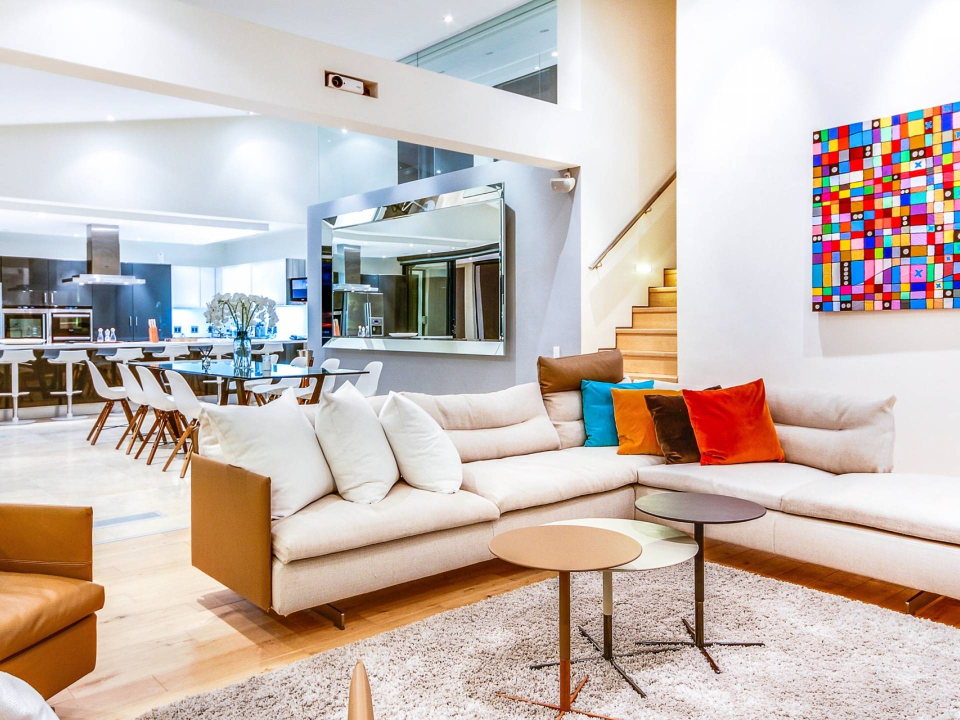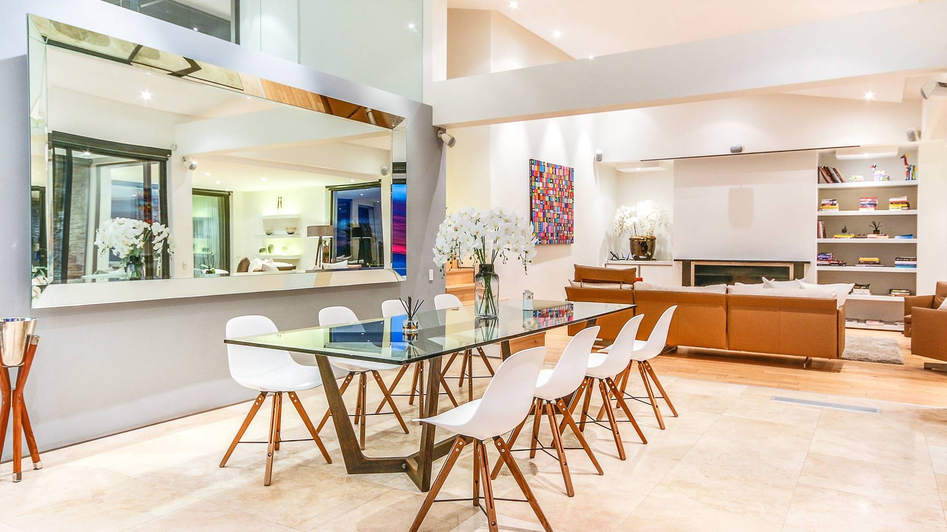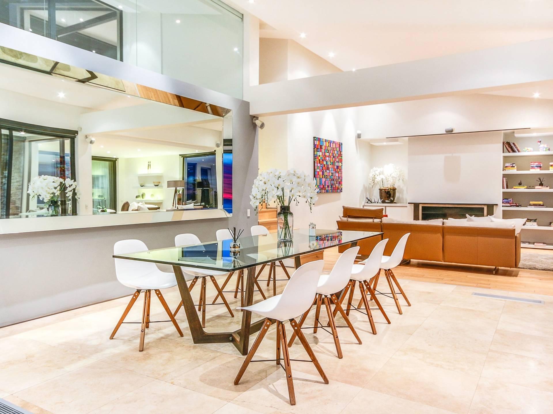 Dieses moderne Anwesen befindet sich an der Spitze von Camps Bay und bietet einen großartigen Blick auf das Meer und die Berge, egal in welchem Bereich des Hauses Sie sich befinden. Im Inneren sind die Zimmer hell und geräumig.