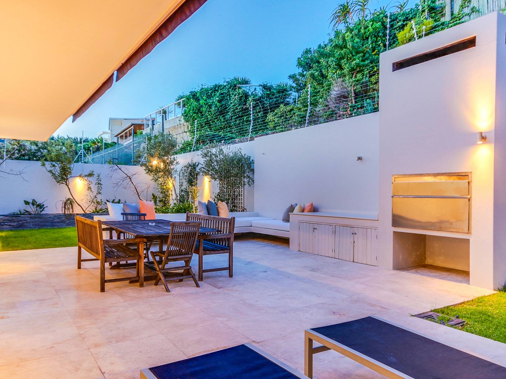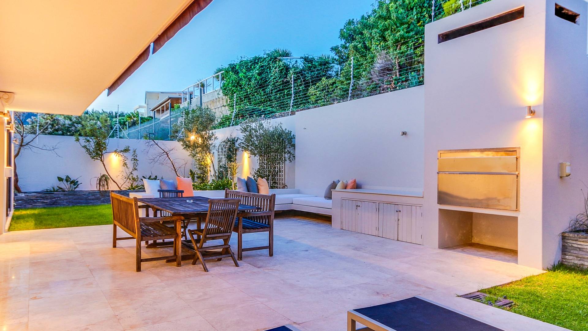 Der offene Wohnbereich grenzt an die Küche, die über alle modernen Annehmlichkeiten und einen großen Essbereich verfügt, der viel Licht in den Raum lässt. Dieser Bereich öffnet sich zum Swimmingpool und Balkon mit Grill und Ess- und Lounge-Sitzgelegenheiten im Freien. Der entzückende Hinterhof hat zwei Rasenflächen, einen Grill und Sitzgelegenheiten. Alle Essbereiche bieten Platz für bis zu zwölf Personen. Zu Prima Views gehören auch ein Butler (Bright) und ein Dienstmädchen (Dinah), die beide in einem separaten Teil des Grundstücks mit eigenem Eingang wohnen.