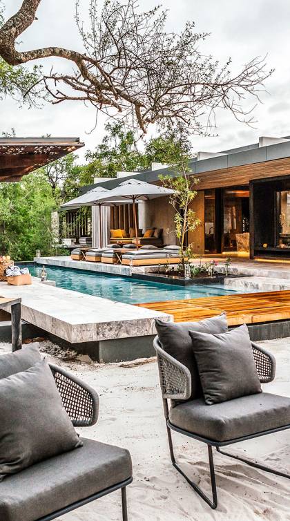Die fertige Lodge bietet den Gästen unübertroffene Möglichkeiten zur Wildbeobachtung in Kombination mit dem ultimativen architektonischen Design und verspricht außergewöhnlichen Safari-Luxus, Annehmlichkeiten und Dienstleistungen. Als verführerisches Rundum-Safari-Erlebnis werden alle Mahlzeiten von Ihrem privaten Koch zubereitet sowie sorgfältig ausgewählte Weine aus Ihrem eigenen Weinkeller, zweimal täglich Pirschfahrten und ein privater Spa-Therapeut sowie ein zentraler Fitnessbereich.