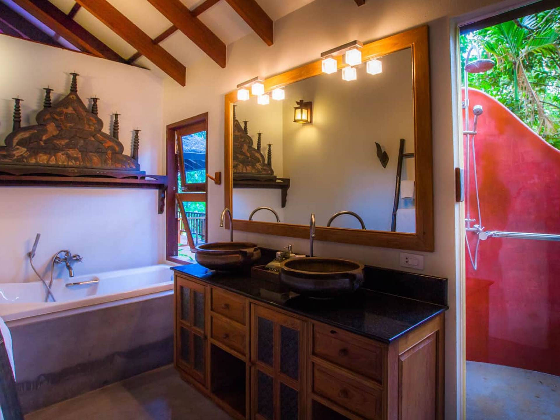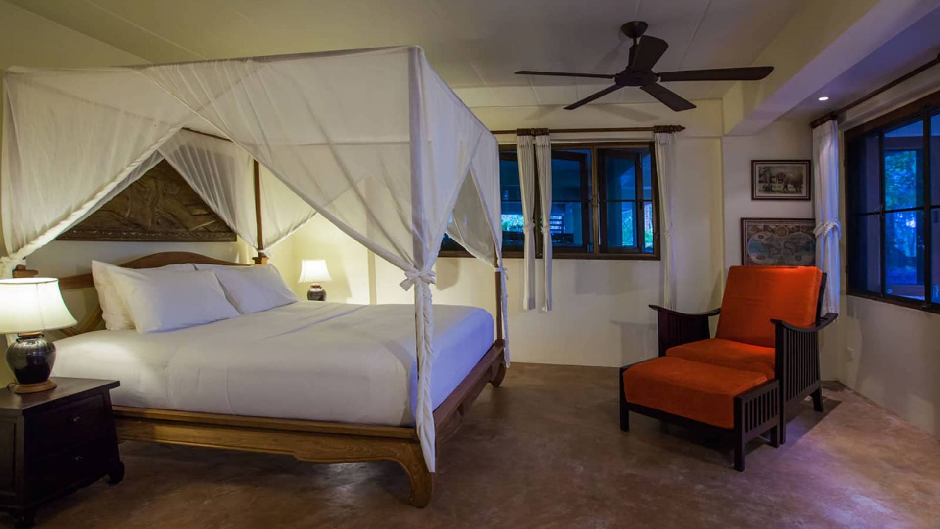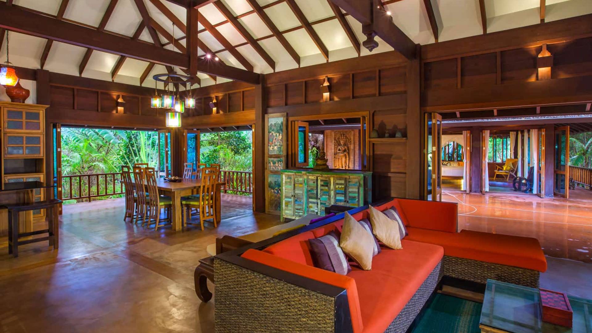 Baan Nai Faan hat einen großen Wohnbereich, der eine Lounge, eine offene Küche und einen aufwendigen Essbereich kombiniert, alles unter einem Dach – ein idealer Ort für Freunde oder Familie, um zusammenzukommen. Im Erdgeschoss befinden sich zwei Schlafzimmer mit Queensize-Betten. Das Hauptschlafzimmer ist ein Flügel für sich, mit seinem geräumigen Bad und einer Doppeldusche im Bali-Stil im Freien.