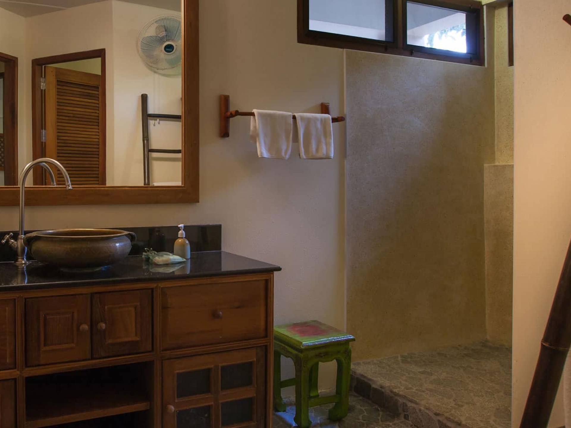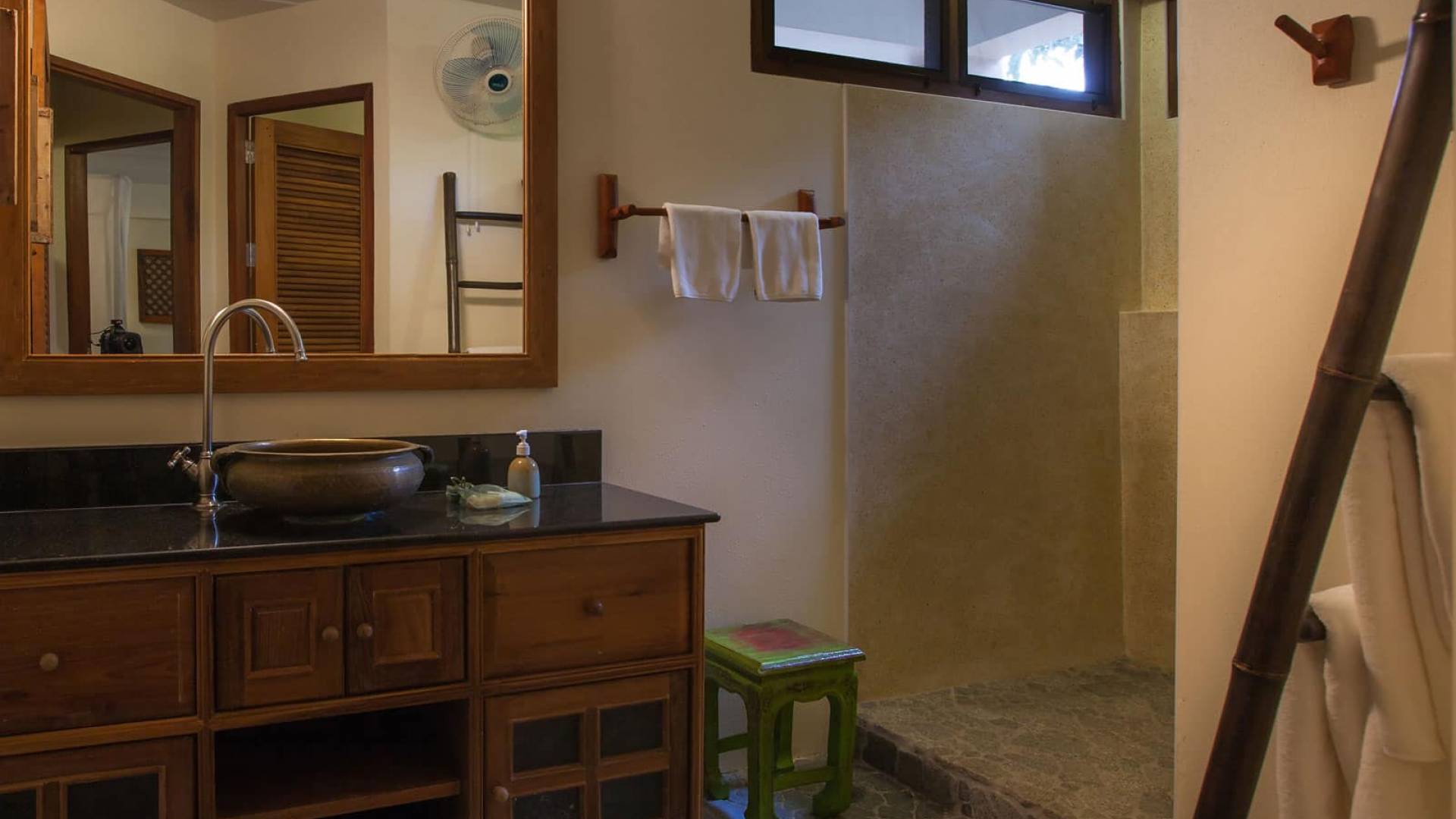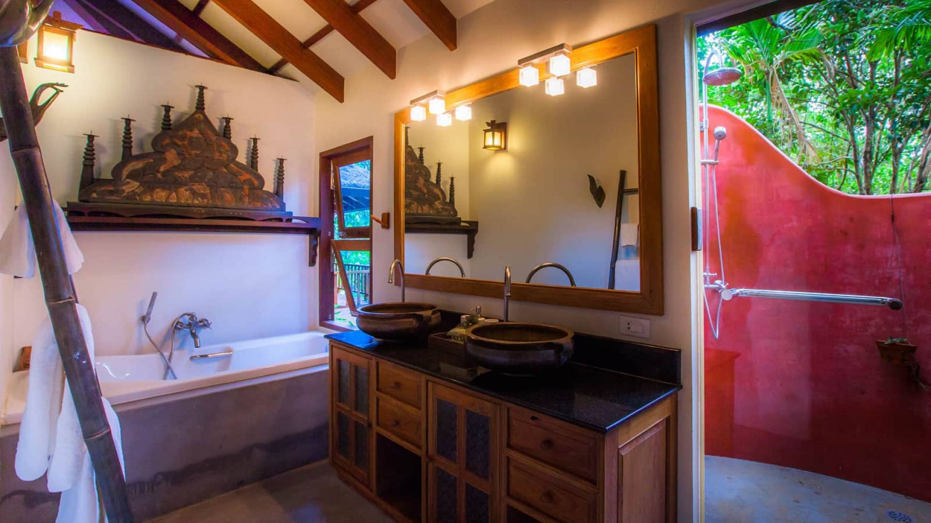 Baan Nai Faan hat einen großen Wohnbereich, der eine Lounge, eine offene Küche und einen aufwendigen Essbereich kombiniert, alles unter einem Dach – ein idealer Ort für Freunde oder Familie, um zusammenzukommen. Im Erdgeschoss befinden sich zwei Schlafzimmer mit Queensize-Betten. Das Hauptschlafzimmer ist ein Flügel für sich, mit seinem geräumigen Bad und einer Doppeldusche im Bali-Stil im Freien.